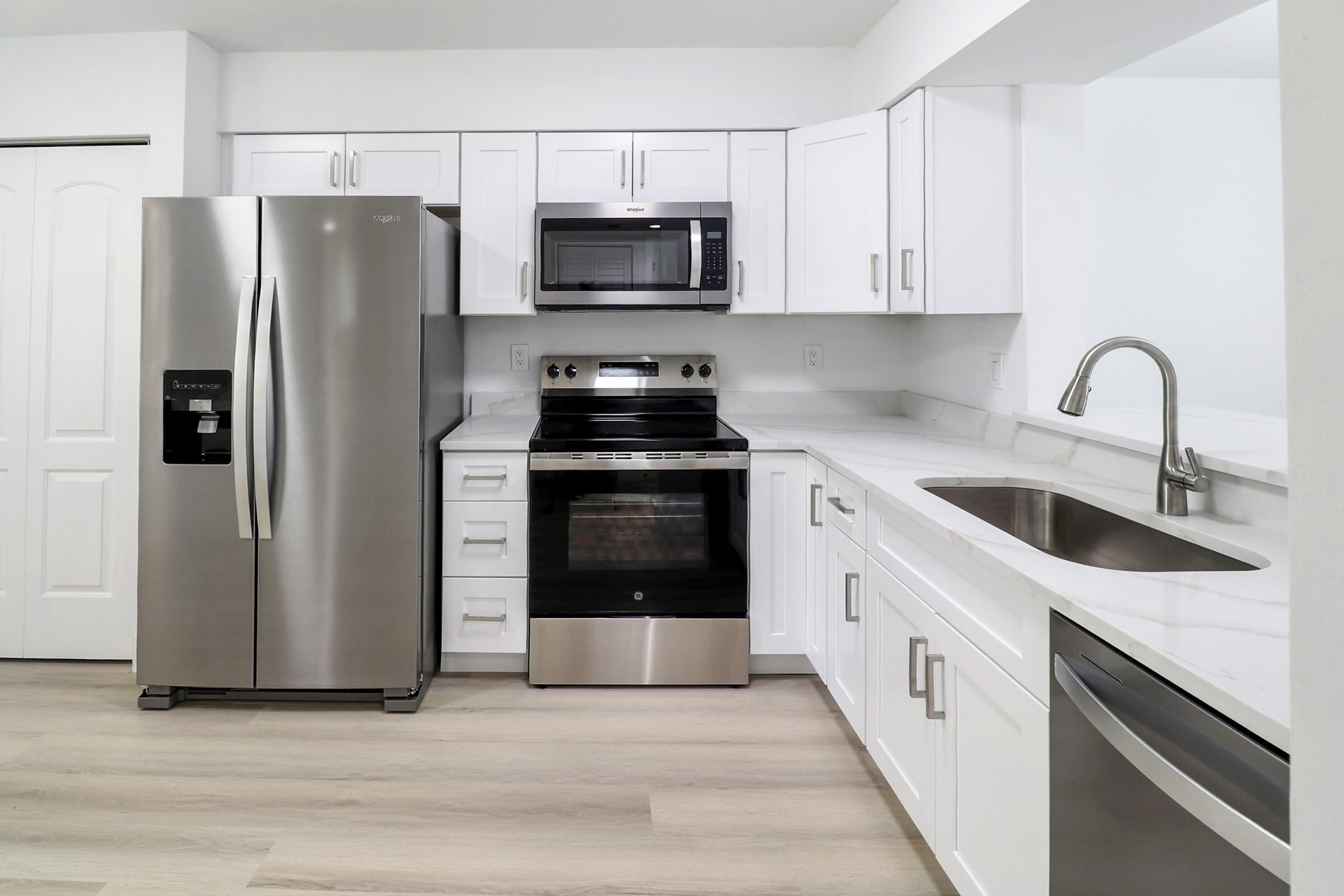- Electric Water Heater, Dryer, Disposal, Dishwasher, Electric Range, Microwave, Refrigerator, Water Heater, Washer