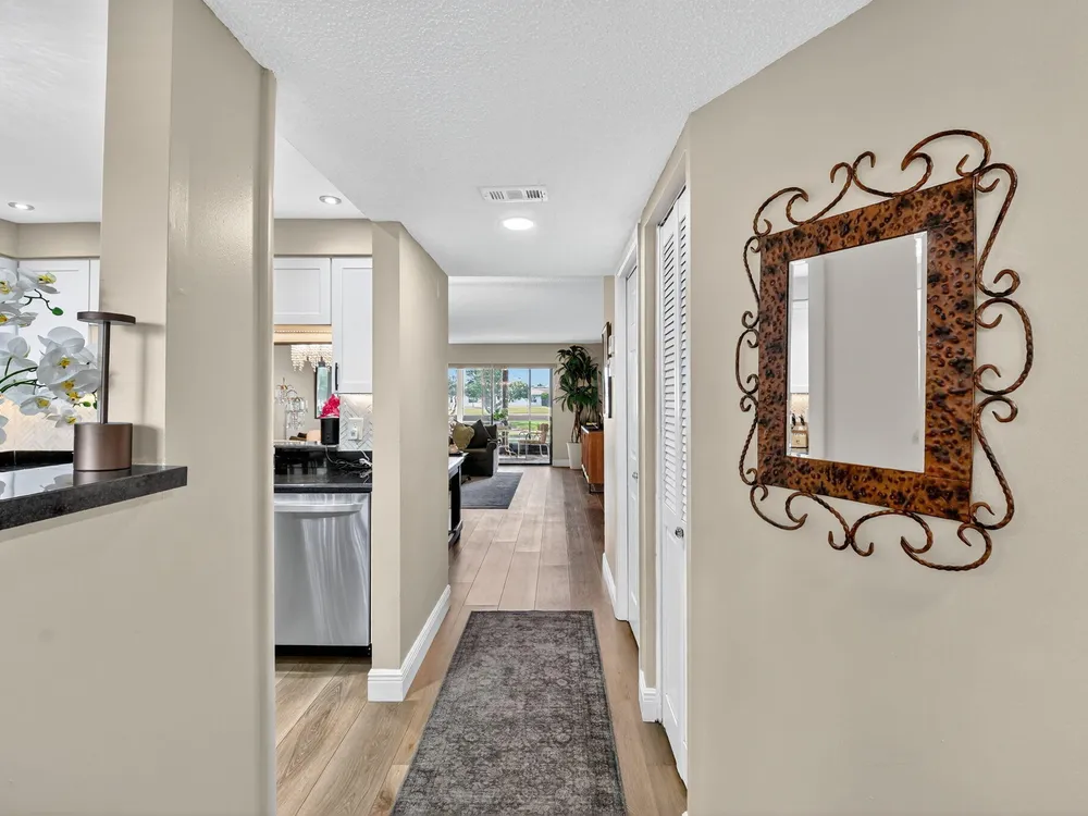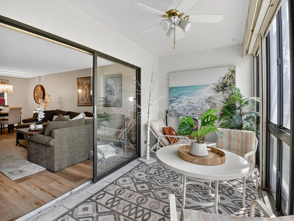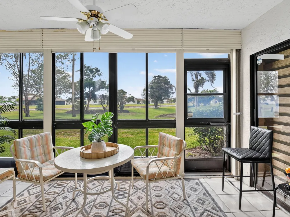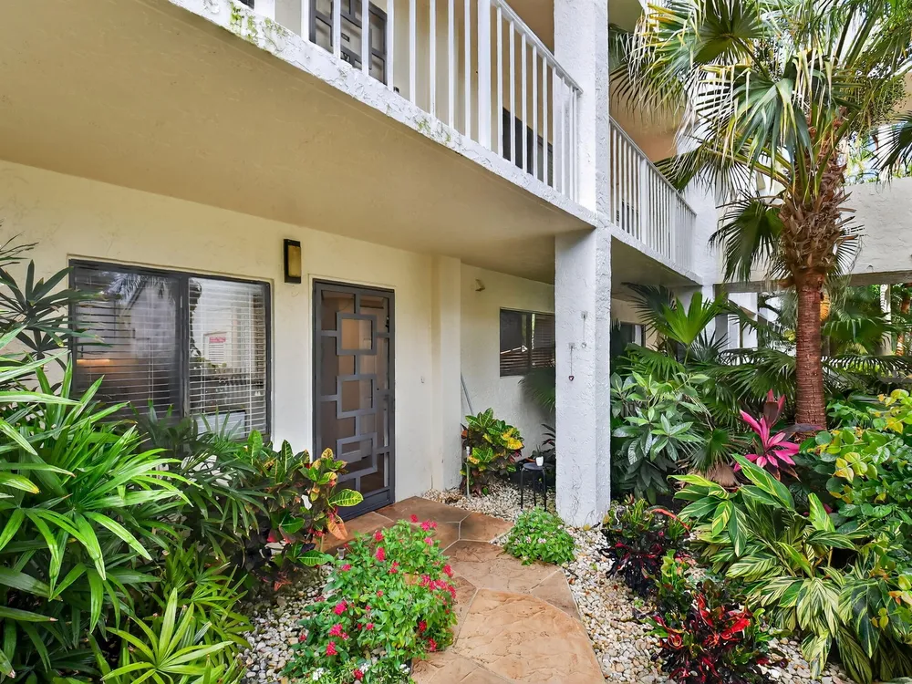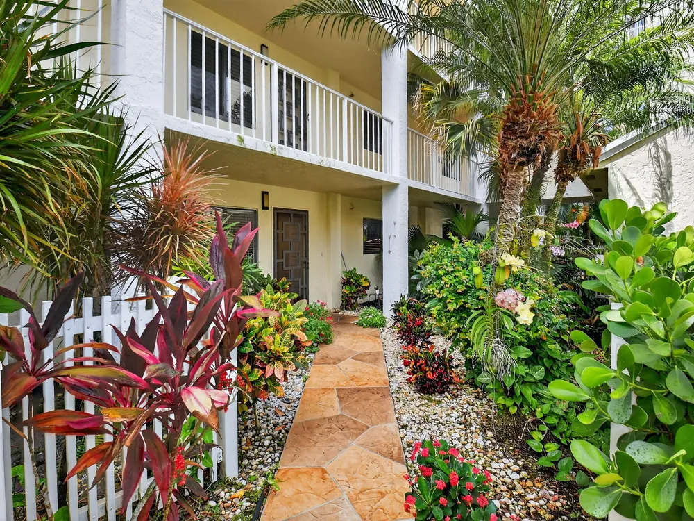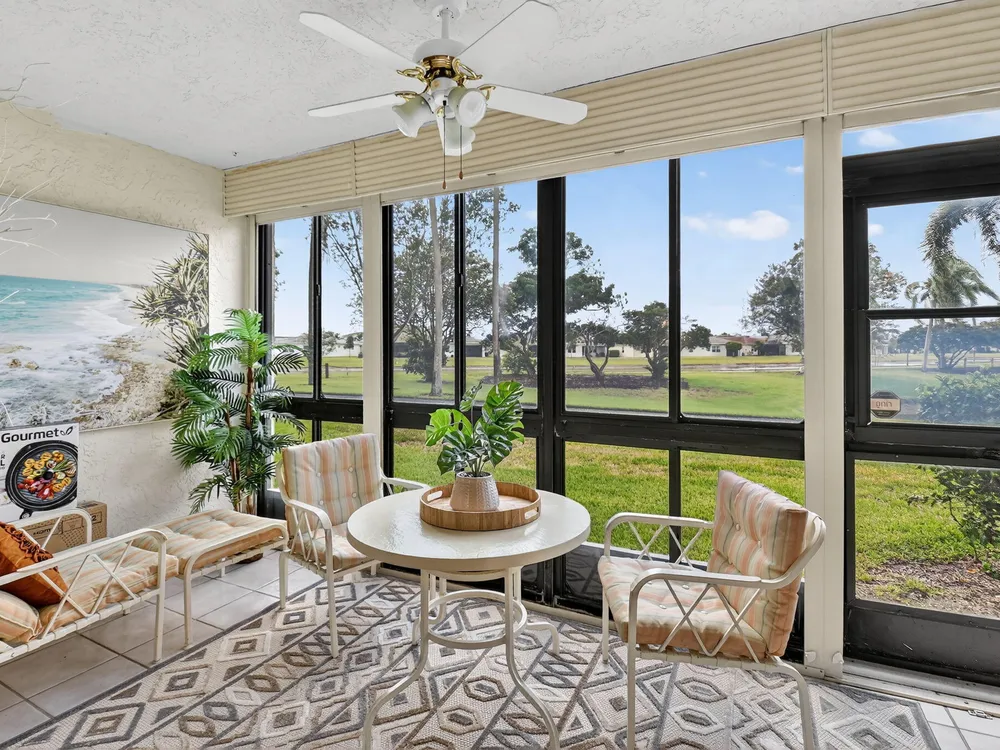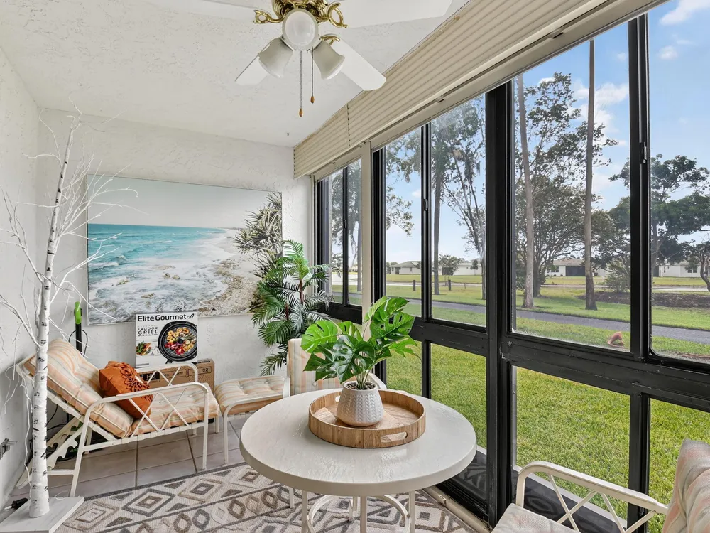 A lush, floral oasis welcomes you into your own private garden retreat. This charming ground-floor condo has a designated parking just steps from the front door. Inside, contemporary finishes create an inviting atmosphere throughout the unit.The sleek, open-concept kitchen has been elegantly updated with premium appliances, beautifully refaced cabinetry, a stylish backsplash, and granite countertops--perfect for cooking and entertaining. The spacious living and dining areas are bright and beautifully styled, offering a model-home feel.Enjoy additional living space in the enclosed Florida room, complete with serene views and direct access to a walking path that leads to the large primary suite. This tranquil bedroom features include a cozy sitting area, two custom walk-in closets