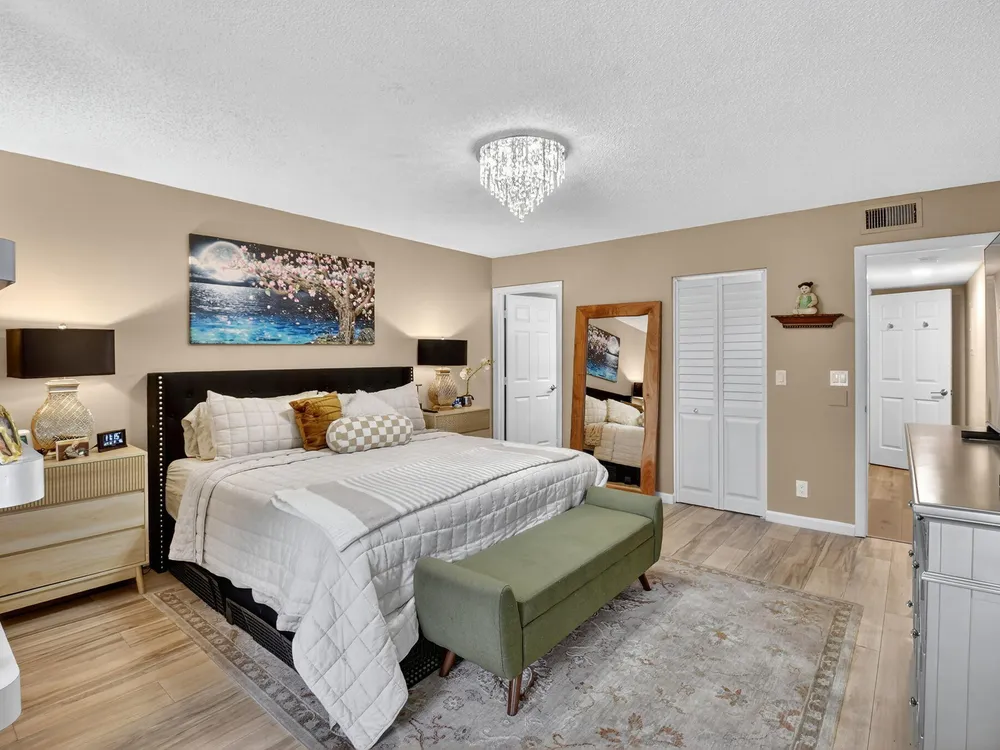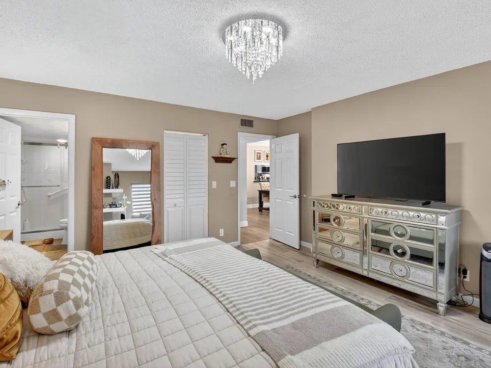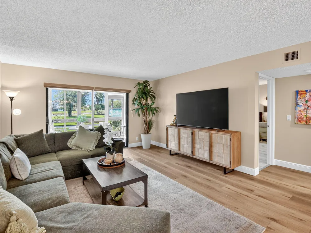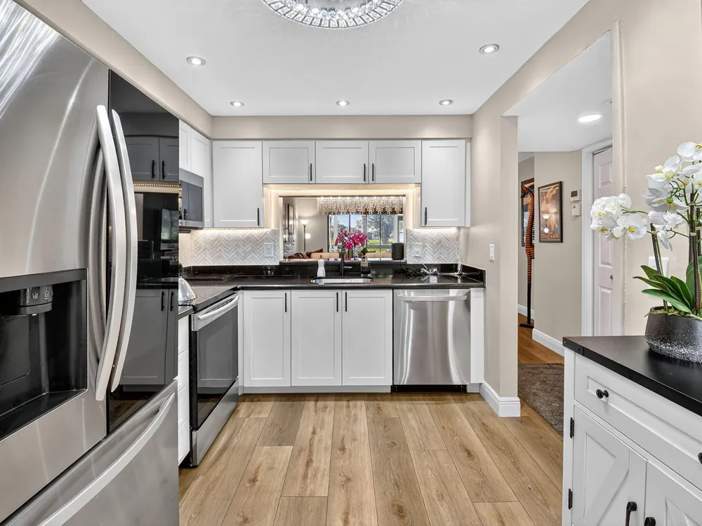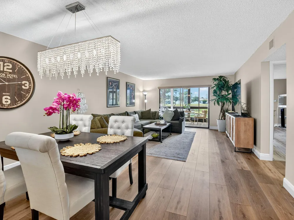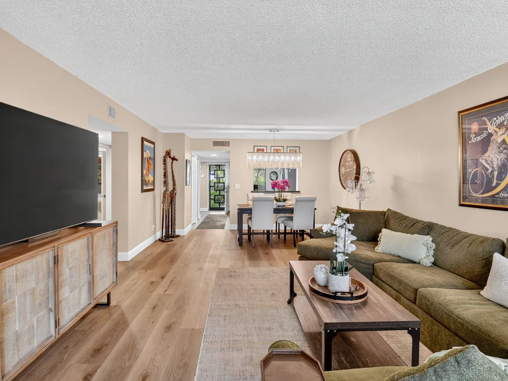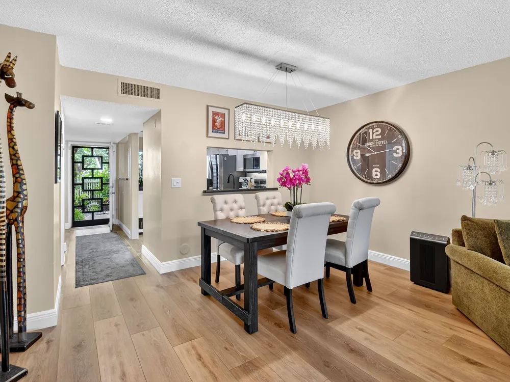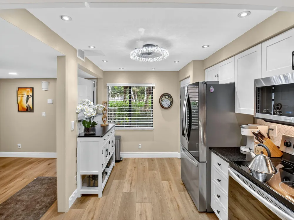 A lush, floral oasis welcomes you into your own private garden retreat. This charming ground-floor condo has a designated parking just steps from the front door. Inside, contemporary finishes create an inviting atmosphere throughout the unit.The sleek, open-concept kitchen has been elegantly updated with premium appliances, beautifully refaced cabinetry, a stylish backsplash, and granite countertops--perfect for cooking and entertaining. The spacious living and dining areas are bright and beautifully styled, offering a model-home feel.Enjoy additional living space in the enclosed Florida room, complete with serene views and direct access to a walking path that leads to the large primary suite. This tranquil bedroom features include a cozy sitting area, two custom walk-in closets