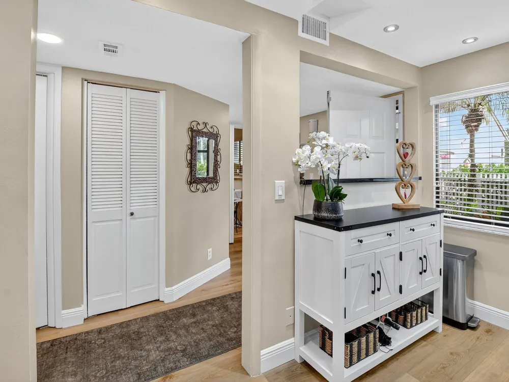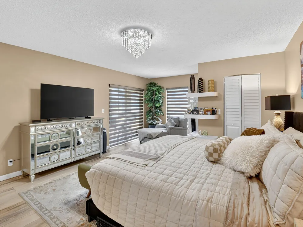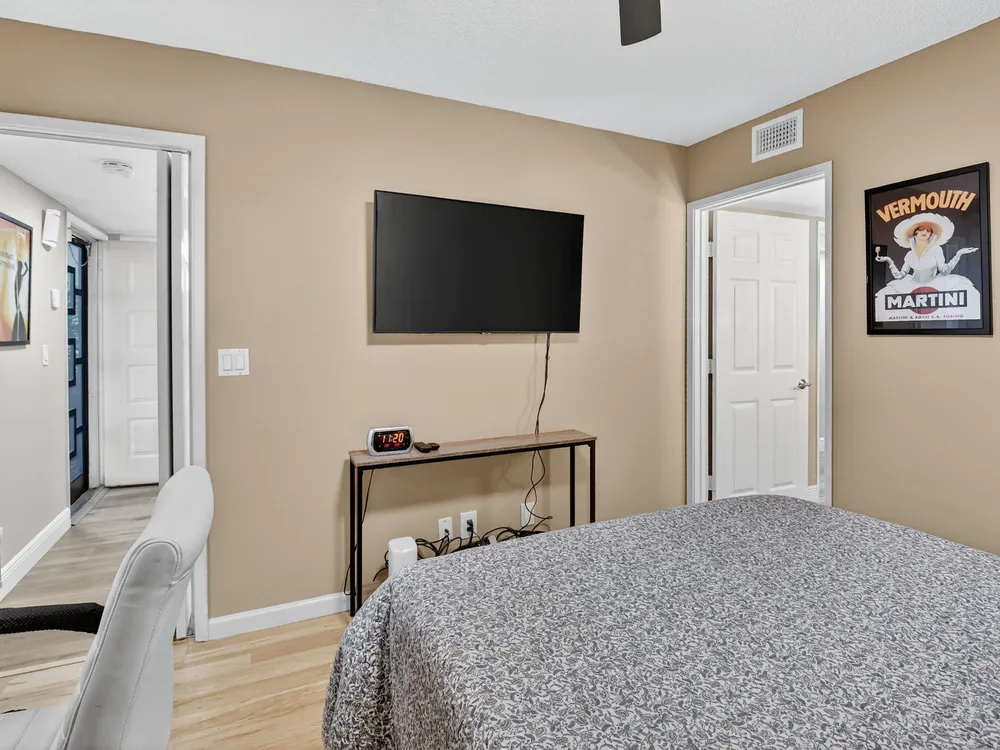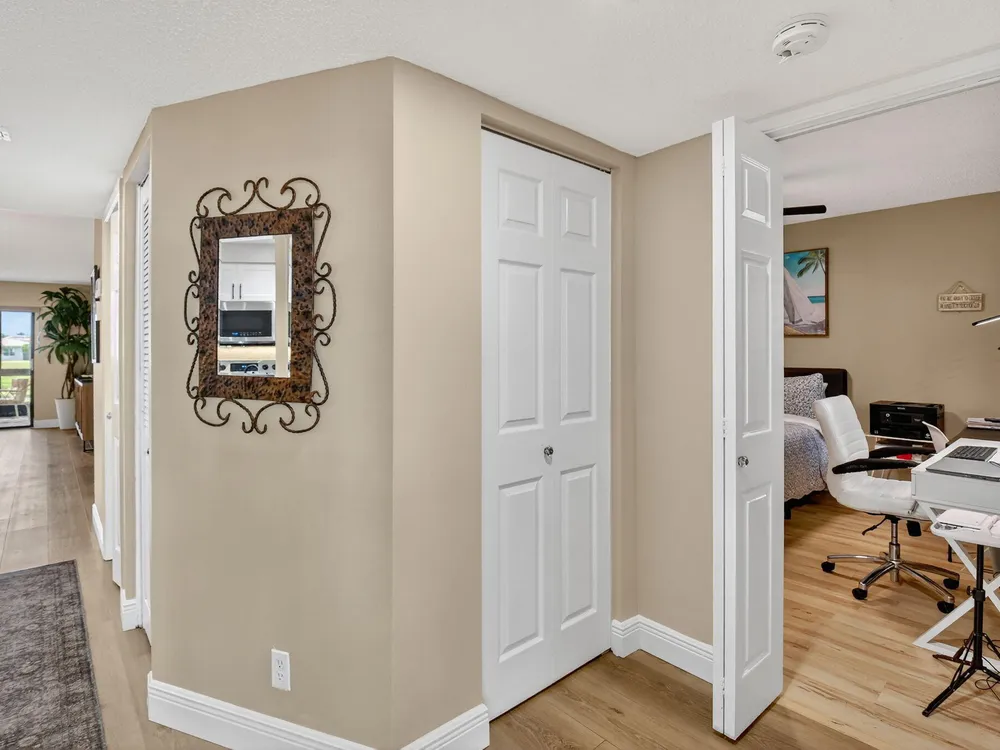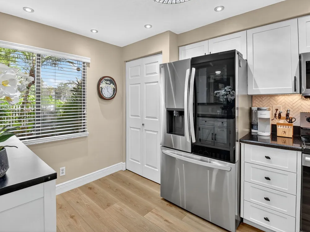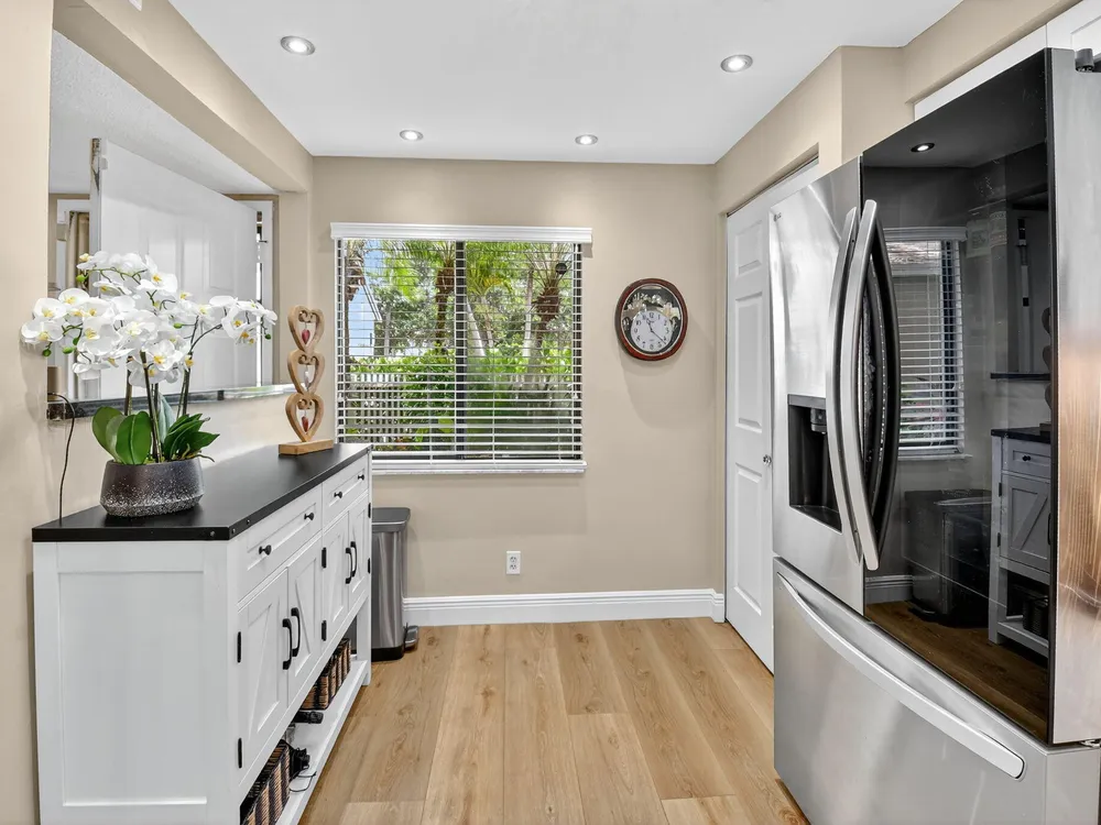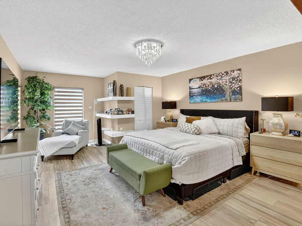 A lush, floral oasis welcomes you into your own private garden retreat. This charming ground-floor condo has a designated parking just steps from the front door. Inside, contemporary finishes create an inviting atmosphere throughout the unit.The sleek, open-concept kitchen has been elegantly updated with premium appliances, beautifully refaced cabinetry, a stylish backsplash, and granite countertops--perfect for cooking and entertaining. The spacious living and dining areas are bright and beautifully styled, offering a model-home feel.Enjoy additional living space in the enclosed Florida room, complete with serene views and direct access to a walking path that leads to the large primary suite. This tranquil bedroom features include a cozy sitting area, two custom walk-in closets