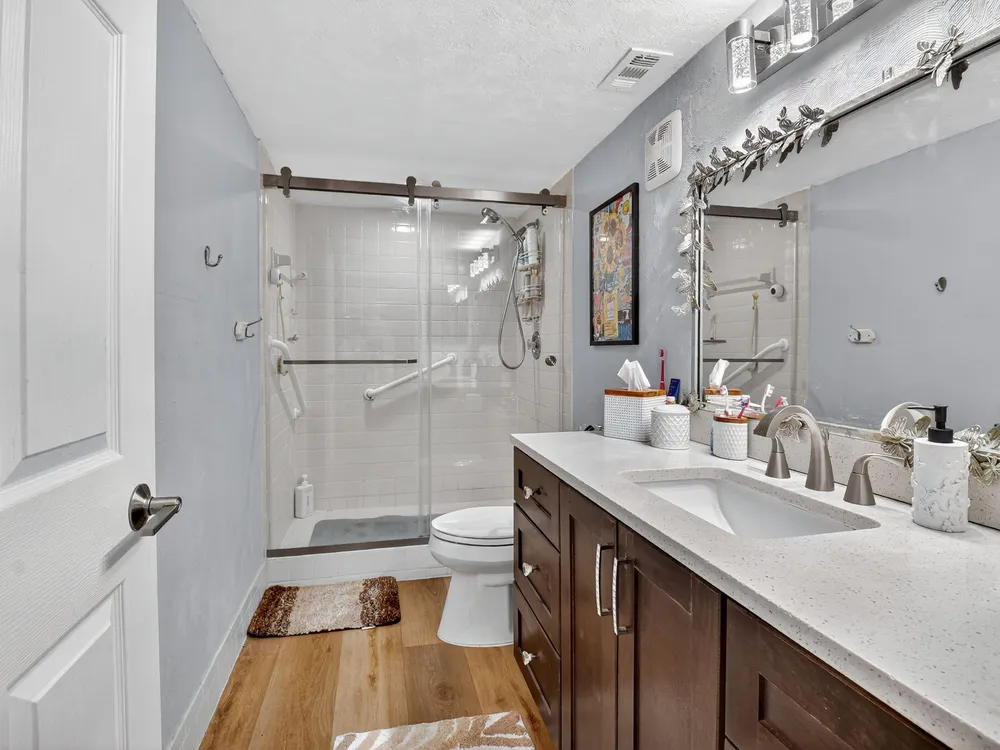 - Entry Level Living Area, Pantry, Split Bedrooms, Walk-In Closet(s), Living/Dining Room, Blinds, Primary Downstairs, Sitting Area In Primary Bedroom, Separate Shower