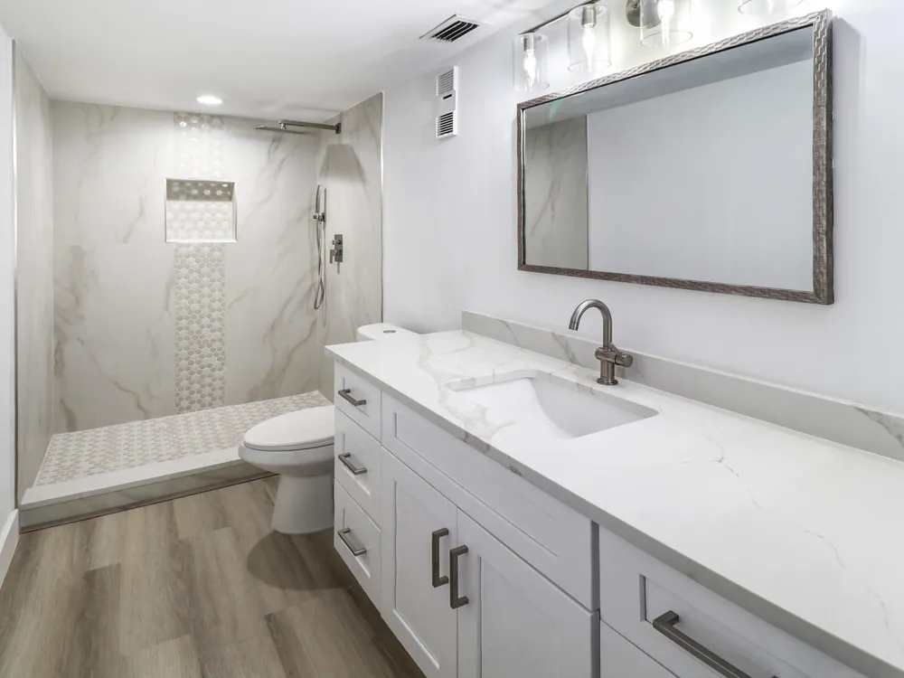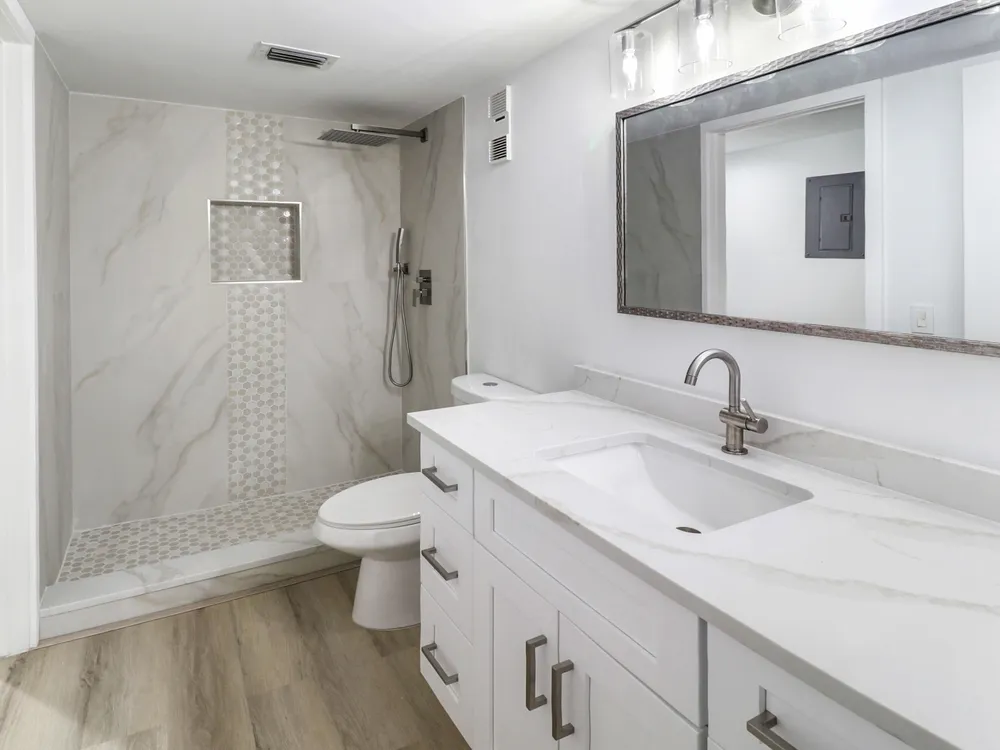 Gorgeous Remodeled First Floor Condo in Huntington Lakes. This Home Must Be Seen! The Stunning Kitchen Includes Quartz Counters, White Wood Cabinets and New Stainless Steel Appliances. All New Modern Flooring Throughout. Both Bathrooms Have Been Redone as Well. Relax on Your Enclosed Patio with Beautiful Water Views. All in an Incredible Amenity Rich Gated Active Adult Community with a Recently Redone Clubhouse with Activities to Fill Your Days!