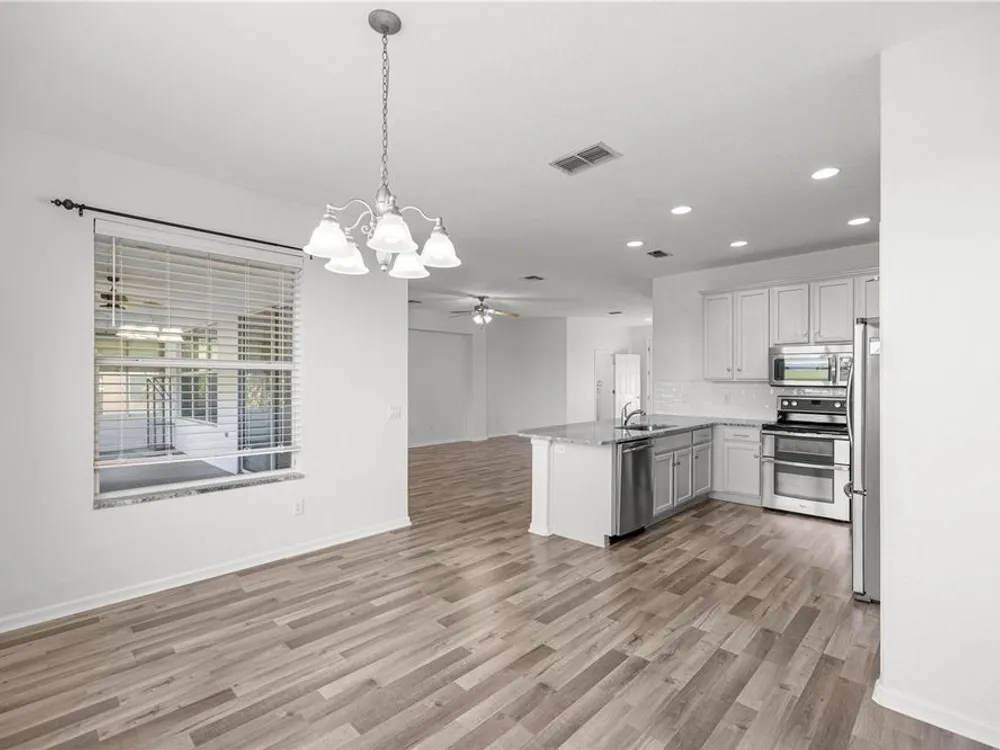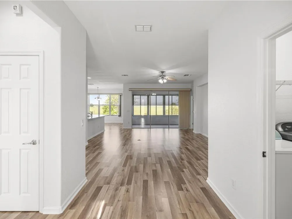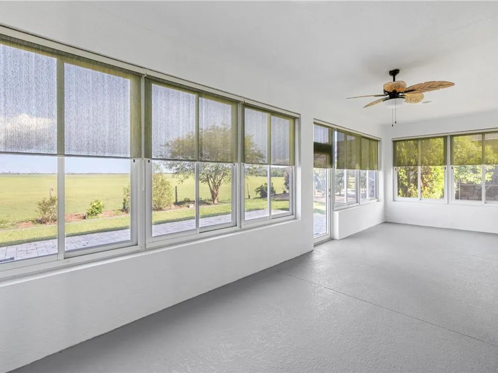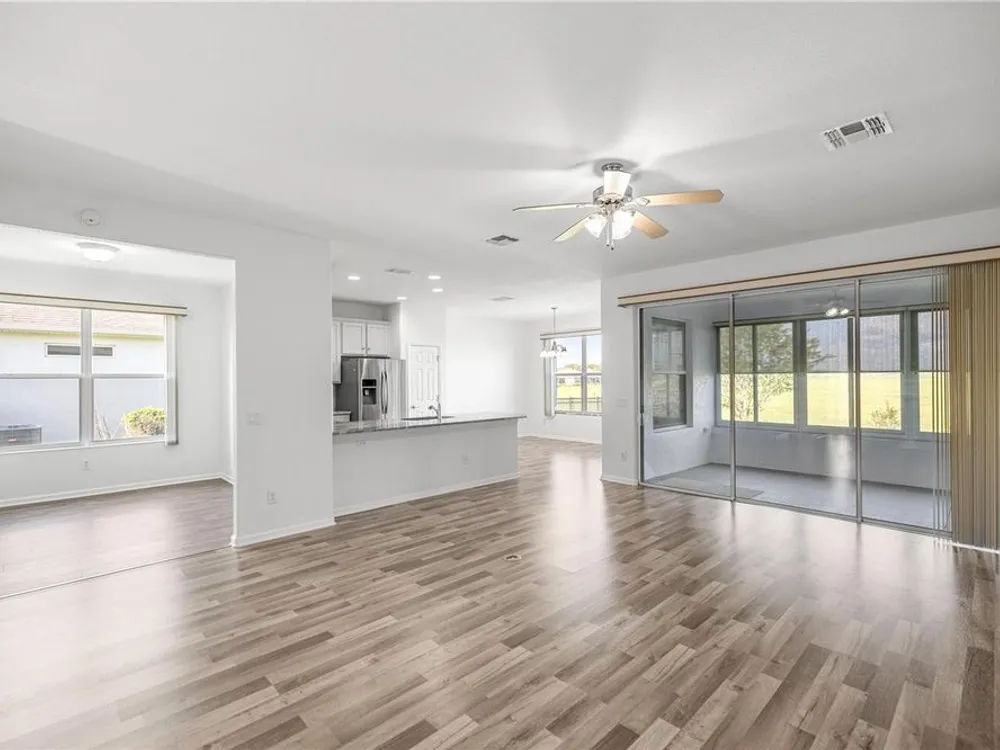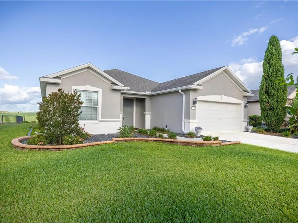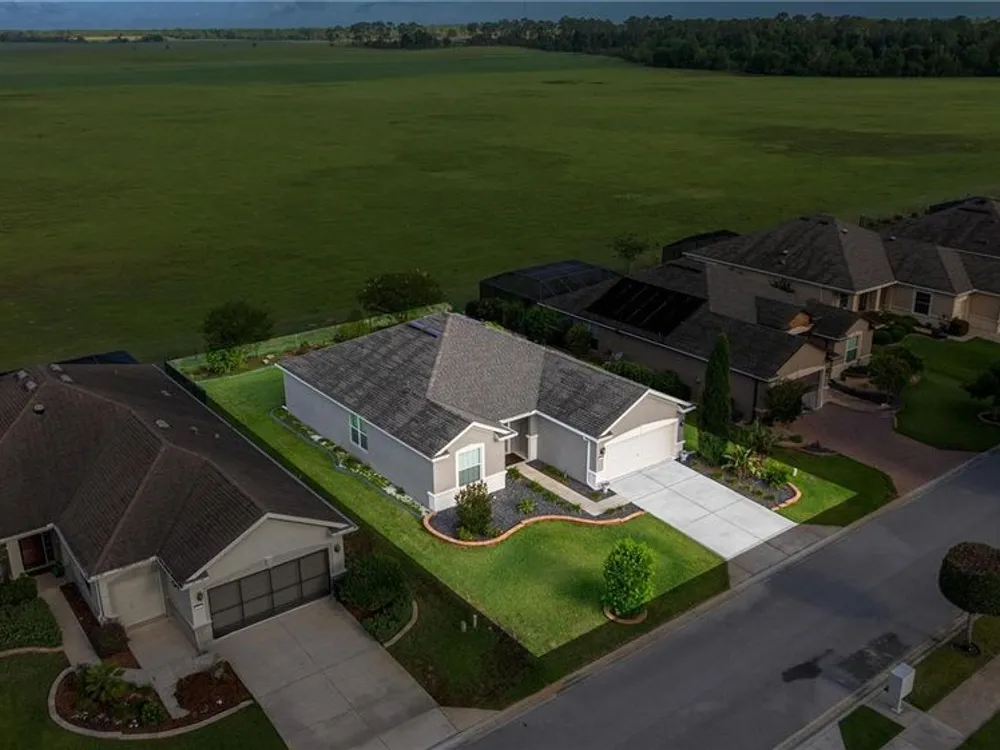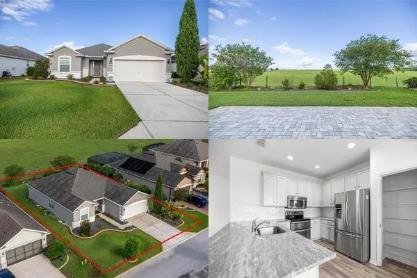 AMAZING resort-style living in this stunning 2-bedroom, 2-bath home with a spacious 2-car garage, perfectly situated on a premium lot in the vibrant 55+ golf cart community of Del Webb at Stone Creek. Offering exceptional privacy and breathtaking views of endless green space, this home is designed for both relaxation and entertaining with a Florida room, private paved patio, and a desirable west-facing backyard that delivers spectacular sunsets every evening. Inside, the split floor plan features an open-concept layout and a versatile flex room that can serve as a home office or potential third bedroom. The beautifully remodeled kitchen (2024) is a showstopper with granite countertops, white backsplash, stainless steel appliances, a charming farm-style sink, and abundant cabinetry, while additional conveniences include a new washer and dryer, whole-house water filtration system, and durable aluminum framing in the walls (not wood). Recent updates include a new roof (2022), exterior paint (2023), interior paint (2024), new flooring in bedrooms (2023), remodeled kitchen (2024), new shower door in the primary bath, new blinds in the primary, guest, and lanai, new curbing, new gutters on the back of the home, and Leaf Filter gutter guards on the front with a lifetime warranty. Residents of this amenity-rich community enjoy a 24-hour guard gate, scenic fishing ponds, and three recreation centers, including the new Stone Water Club offering beer and wine service, billiards, darts, and a golf simulator. Additional amenities include a lagoon-style pool, indoor lap pool, spas, saunas, a fully equipped fitness center, and endless activities such as pickleball, bocce, shuffleboard, tennis, and access to some of Florida’s premier public and top-rated golf courses. This home truly offers the best of the best—luxury, comfort, and the perfect lifestyle. Schedule your private showing today!