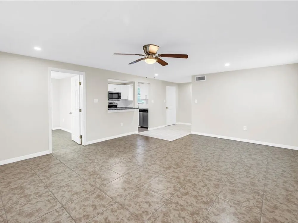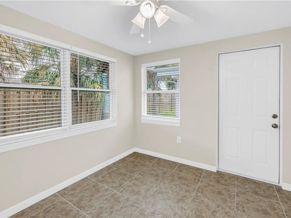 This move-in ready villa is full of charm and modern touches, with a complete interior renovation that includes new flooring, ceiling fans, lighting, window blinds, kitchen cabinets, appliances, bathroom fixtures, and shower. Located in the sought-after 55+ community of Venice Gardens, it offers a spacious open layout with a bright living and dining area that flows into a stylish kitchen featuring new stainless steel appliances, a pass-through window, and breakfast bar seating. The home also boasts new impact-resistant windows and door, plus a new tile roof, fascia, soffits, insulation, and gutters for long-lasting durability. A newer HVAC system, maintained every six months, ensures year-round comfort, and the property is now classified as an HO3 for added peace of mind. The primary bedroom has its own entrance to the full bathroom and offers generous closet space. Just off the living room, there’s a flexible bonus room that could work well as a small second bedroom, home office, or cozy den. Other highlights include an indoor laundry and storage room, a covered carport, and updated finishes throughout. Enjoy the peaceful setting of this quiet community where service animals are welcome, with an anticipated reduction in the HOA monthly fee from $600 to $300 by year’s end. Conveniently located just one mile from the Venice Gardens Civic Center pool and Jacaranda West Country Club, with shopping and dining close by at Jacaranda Plaza, this is a great opportunity for low-maintenance Florida living.
