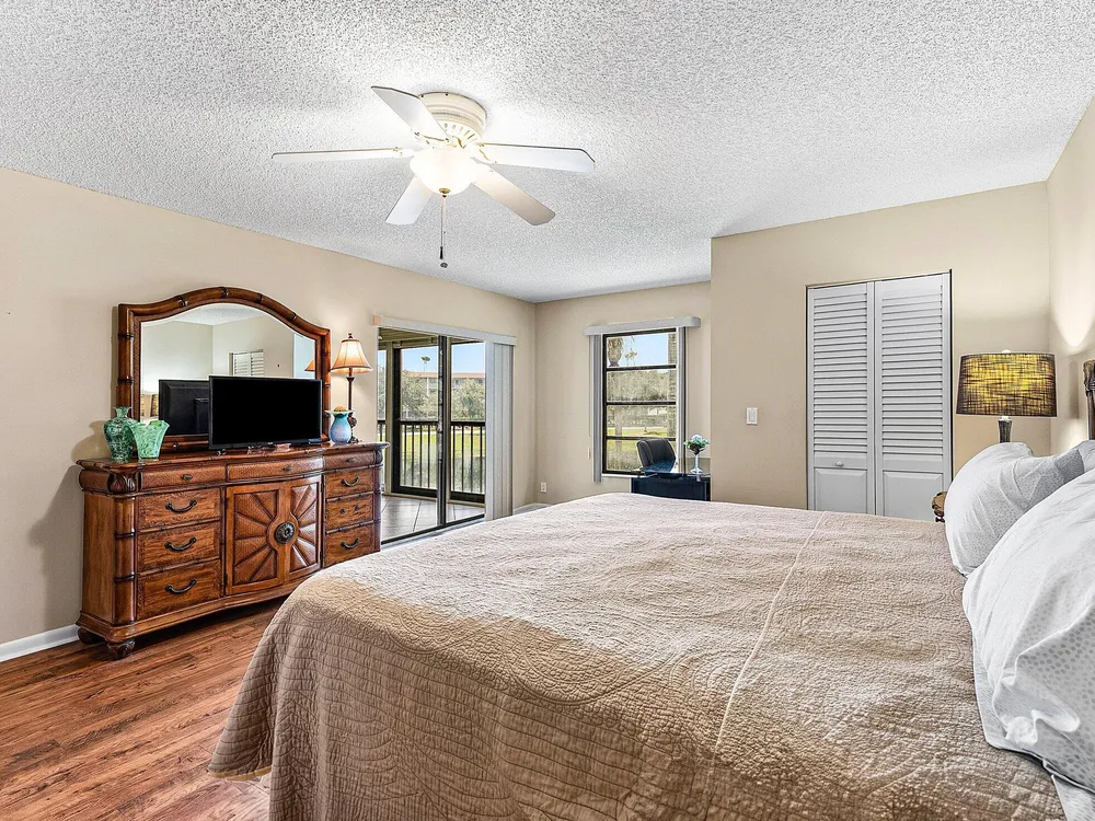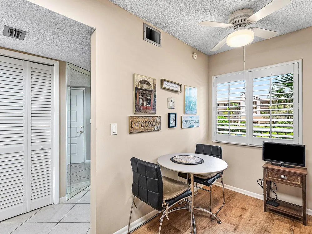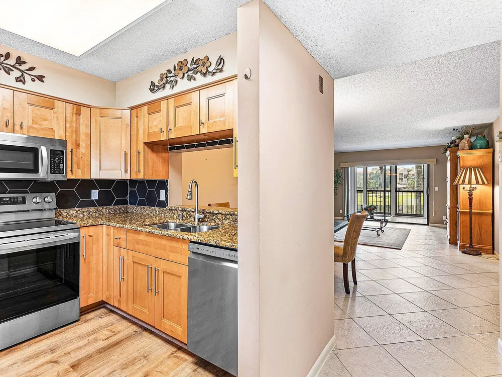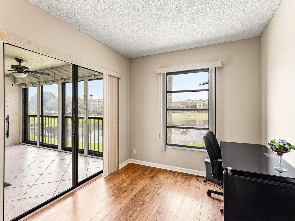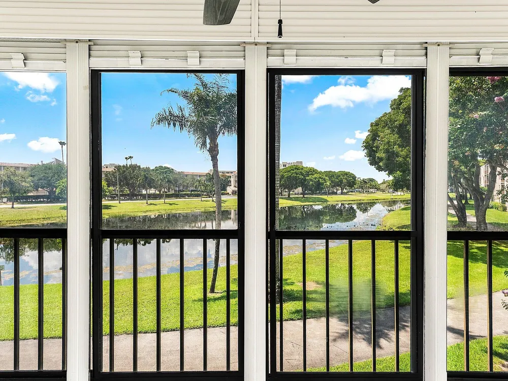 Welcome to one of the most beautiful balcony views in Huntington Lakes! This spacious and open move in ready condo features a functional two bedroom layout, with in-unit laundry, low HOA and a private balcony view that might make you want to sleep outside. The master bedroom features a convenient flex. Which is perfect for remote and at home office space. Impact windows have been ordered and will be replaced soon. It does not stop there. Head down on a sunny day to the resort-style living newly renovated Clubhouse offering a 610-seat theater, banquet hall, fitness/aerobics rooms, indoor pool, billiards, 9 pickleball courts, 4 Har- Tru tennis courts, and endless clubs and activities. Gated community with double elevators. Open, airy, and perfect for relaxing after a long day!