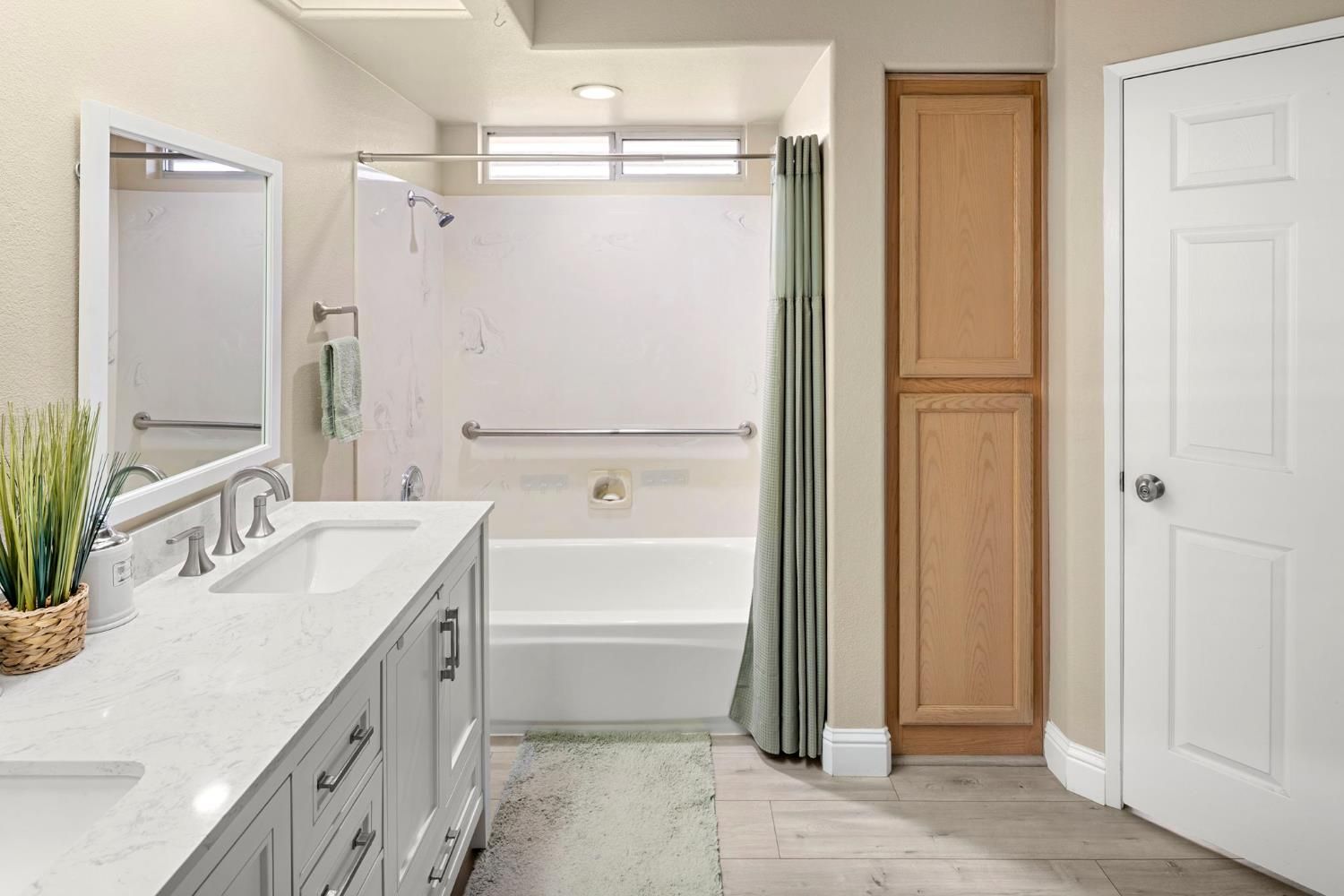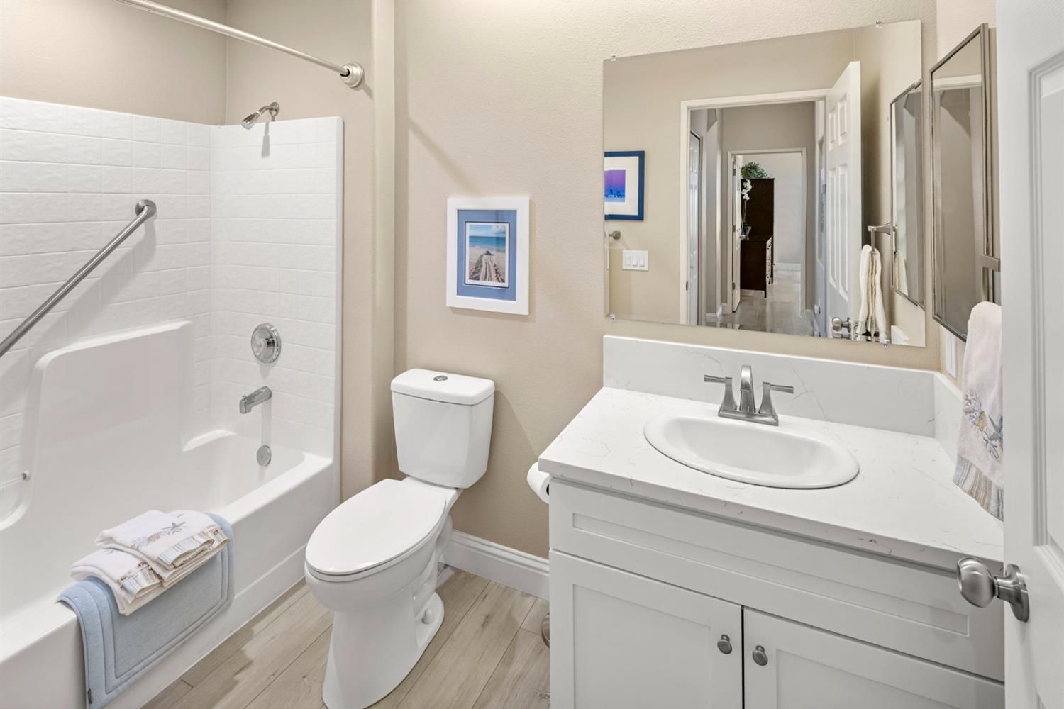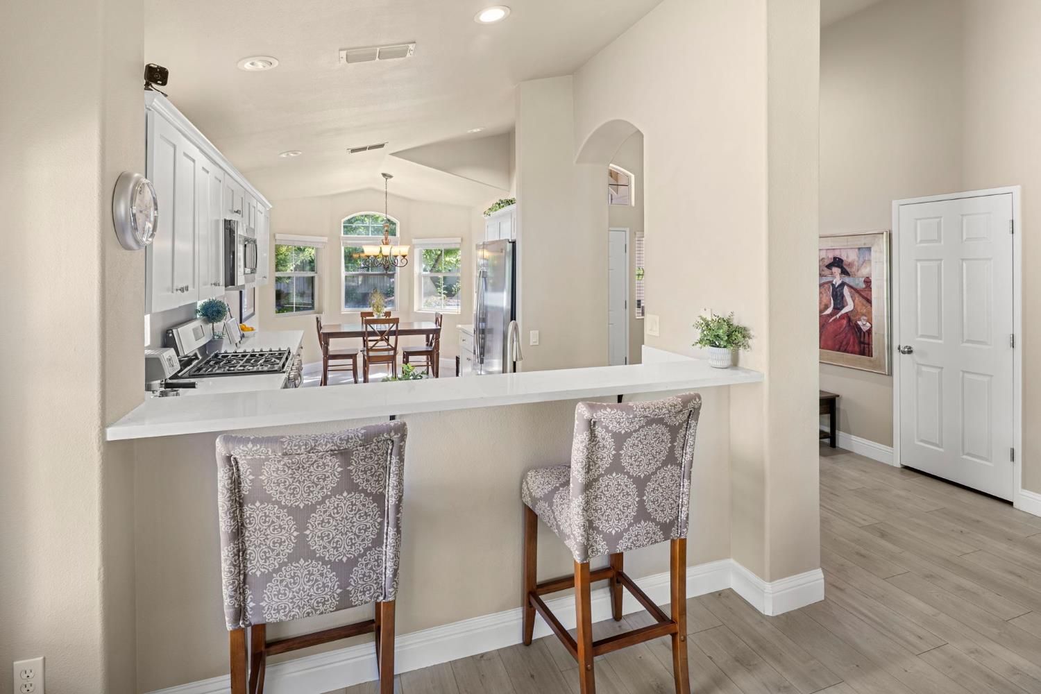 New price on this beautifully remodeled Rosetree model with open space, scenic park views! The kitchen features white cabinets, quartz counter tops, high-end stainless-steel appliances and LED lighting. Both bathrooms have been updated and gorgeous laminate floors flow throughout making this home extra special. Enjoy a covered patio and fully fenced north facing backyard with views of School House Park and nature. The bonuses in this home are endless with closets and a garage equipped with top notch organizers, HVAC 2020, brand new slider, a cozy fireplace and raised garden beds. Come and enjoy Sun City Roseville's Active 55+ community with the Timbers restaurant & bar, fitness center, pools, golf, tennis, pickleball, bocce, walking trails and so many activity clubs! No Mello Roos, low HOA and Roseville Electric.