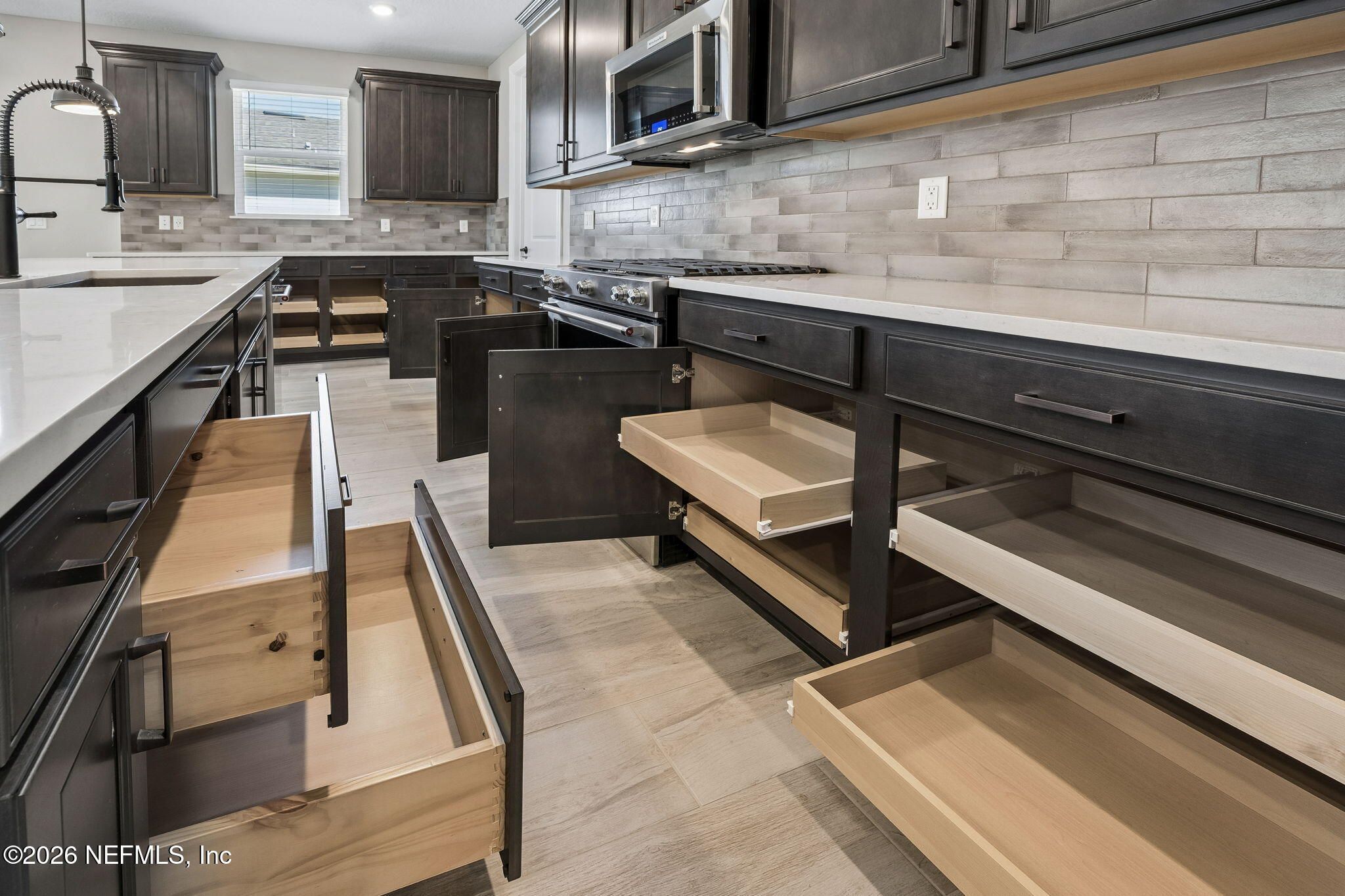 - Dishwasher, Disposal, Gas Cooktop, Microwave, Plumbed For Ice Maker, Refrigerator, Tankless Water Heater
