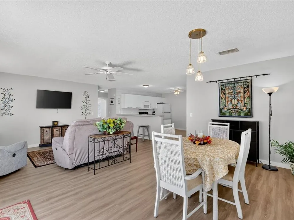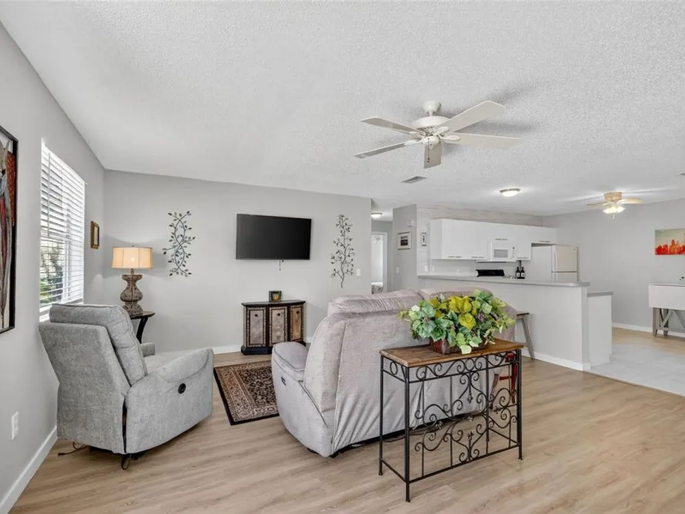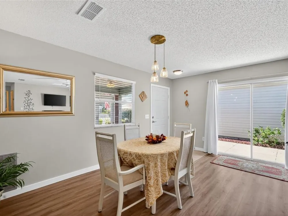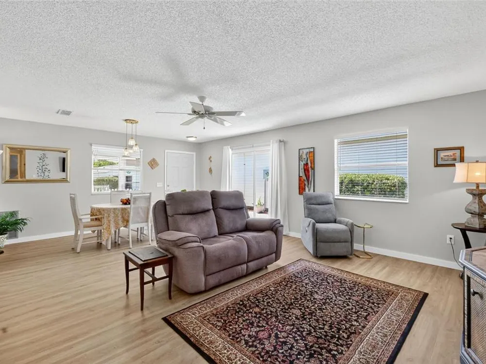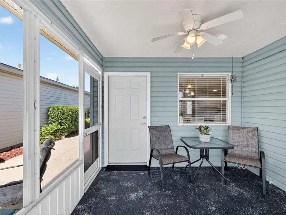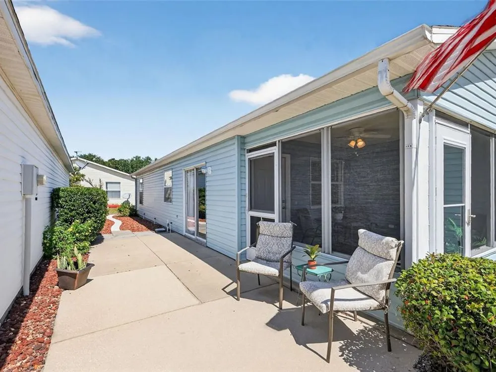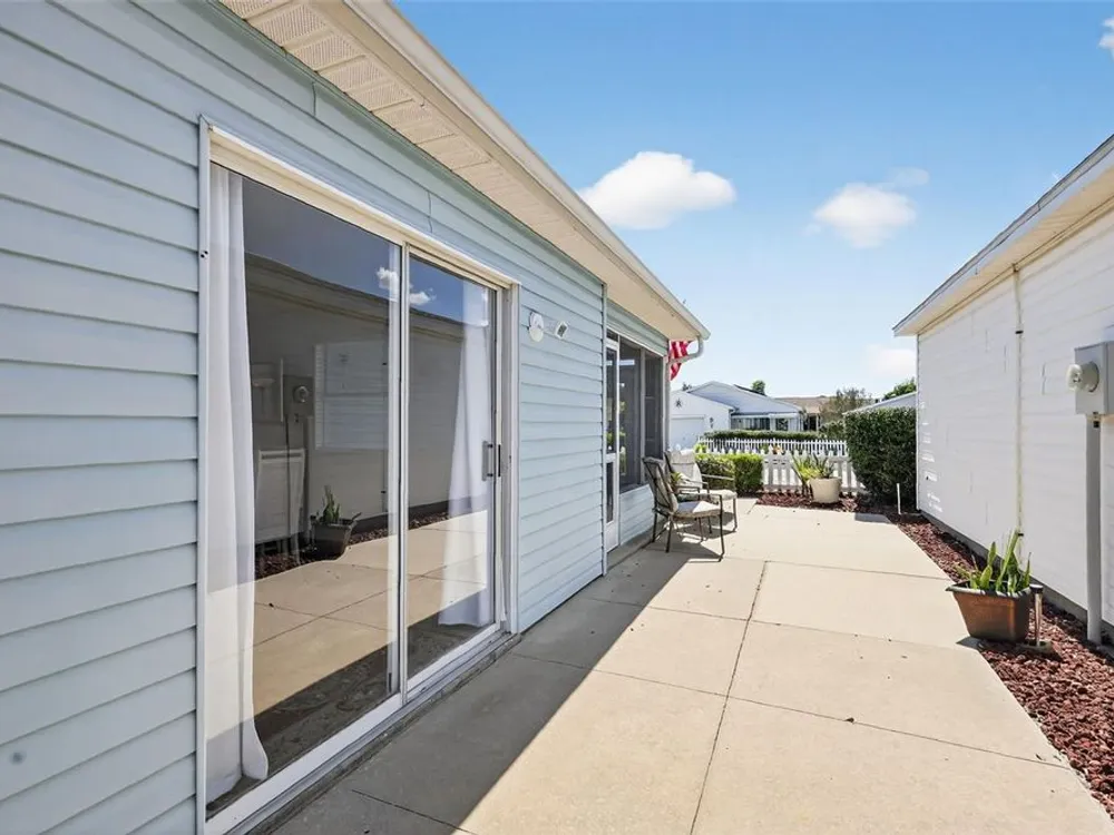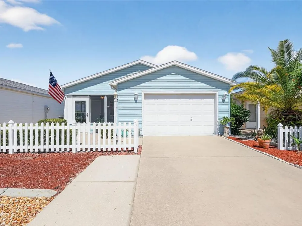 METICULOUSLY-MAINTAINED, TURNKEY 2/2 Colony Patio Villa featuring LOW-MAINTENANCE, stoned front, side, and rear yards. IDEALLY LOCATED just minutes to both Lake Sumter Landing and Spanish Springs in the Valdez Villas in the charming village of De La Vista! MOVE RIGHT IN! This AMAZING home INCLUDES EVERYTHING YOU NEED— Just bring your toothbrush! BOND PAID! A white picket fence and STONED landscaping beds with CURBED edging welcome you into the screened lanai boasting a painted floor. This wonderful room is the perfect spot for ENTERTAINING friends and family or simply RELAXING with your morning coffee, evening cocktail, or a good book! Step through the front door into the OPEN CONCEPT floor plan of the living, dining, and kitchen. This SPACIOUS main living area features GORGEOUS LUXURY VINYL PLANK FLOORING. Sliding glass doors off of the dining room open to an OUTSIDE PATIO AREA - ideal for ENJOYING the beautiful Florida weather! Back inside, the AMAZING kitchen boasts a TILE floor, WHITE cabinetry, PANTRY closet, breakfast bar, and EAT-IN DINETTE area. The primary bedroom features LVP flooring and a GENEROUS WALK-IN closet. It’s en-suite bathroom is well-appointed with WHITE cabinetry, WALK-IN shower, and a LINEN closet. Bedroom two features LVP flooring and a built-in closet. The second bathroom offers WHITE cabinetry, tub and shower combination, and a hallway LINEN closet. Completing the package is an 18’ x 22’ one and half car garage featuring PAINTED floors, LAUNDRY AREA with WHITE cabinetry, UTIITY SINK, ceiling fan, shelving, attic access with stairs, and plenty of space for a car and a golf car! DON’T MISS YOUR OPPORTUNITY to make this AMAZING TURNKEY home your own! The Village of De La Vista is just minutes to both Lake Sumter Landing and Spanish Springs; close to Tierra Del Sol, Hacienda Championship Golf Club, and Glenview Country Clubs and Championship Golf Course; Multiple other Executive Golf Courses within a short golf cart ride, La Hacienda Regional Recreation Center, recreation centers, pools, pickle ball, shopping, restaurants, and the Villages Regional Hospital. PLEASE WATCH OUR WALKTHROUGH VIDEO of this WONDERFUL, TURNKEY VILLA in a FANTASTIC LOCATION and call today to schedule your Private Showing or Virtual Tour!