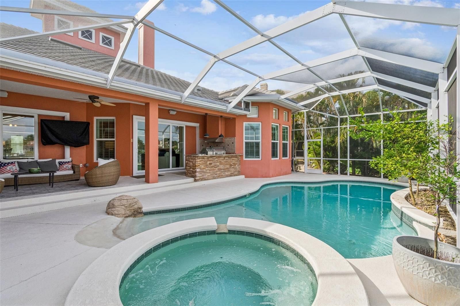 Breathtaking views, direct access to the Gulf, resort-style amenities! All of this and more await you at 729 Manns Harbor Dr. Located in Mirabay, Apollo Beach's premier Luxury Waterfront Community, this Key West style home does not disappoint. Split bedroom open floorplan featuring 12-foot ceilings, 8-foot doors, Plantation shutters, fireplace, tray ceilings, and water views from almost every window. This is no ordinary split floorplan, the Northeast Wing is an in-law suite that is perfect for multi-generational living, with its own bedroom, living room/den, and full bathroom. The primary suite features a spacious bedroom, his and hers closets, double vanities, tub, separate shower, and more great views of the lagoon. The huge kitchen overlooks the family room and boasts stainless steel appliances, GE commercial refrigerator, gas stove, wall oven, granite countertops, and 42-inch cabinets - making this the focal point of the entire home. The butler's pantry comes equipped with a wine fridge, Miele coffee maker, and wet sink. Interior laundry room with cabinetry and deep utility sink. Surround sound stereo system. High efficiency Carrier HVAC units, security system, hurricane-impact double-paned windows and doors throughout. The outside of the home is just as impressive as the inside! Private dock with a remote controlled 20,000 pound boat lift, Solar/Gas heated saltwater pool and spa, and outdoor kitchen with Big Green Egg. Mirabay residents have exclusive access to the clubhouse, resort-style pools with waterslide, fitness center, basketball courts, pickle ball courts, and complimentary kayaks. This is truly Luxury Florida Living at its finest!