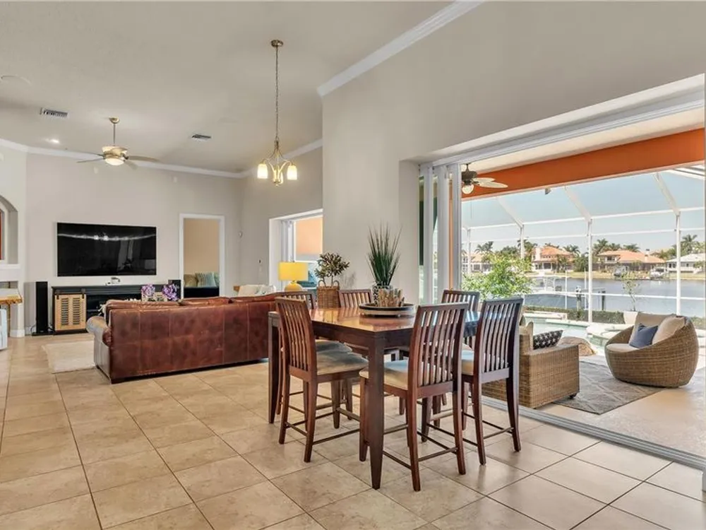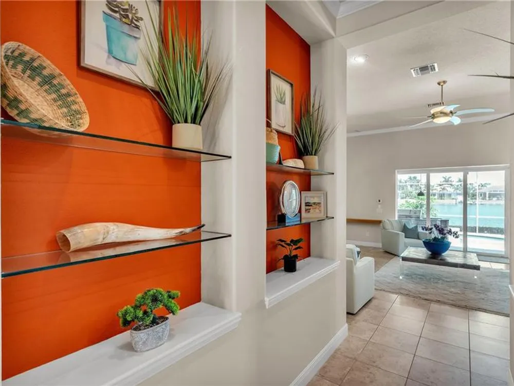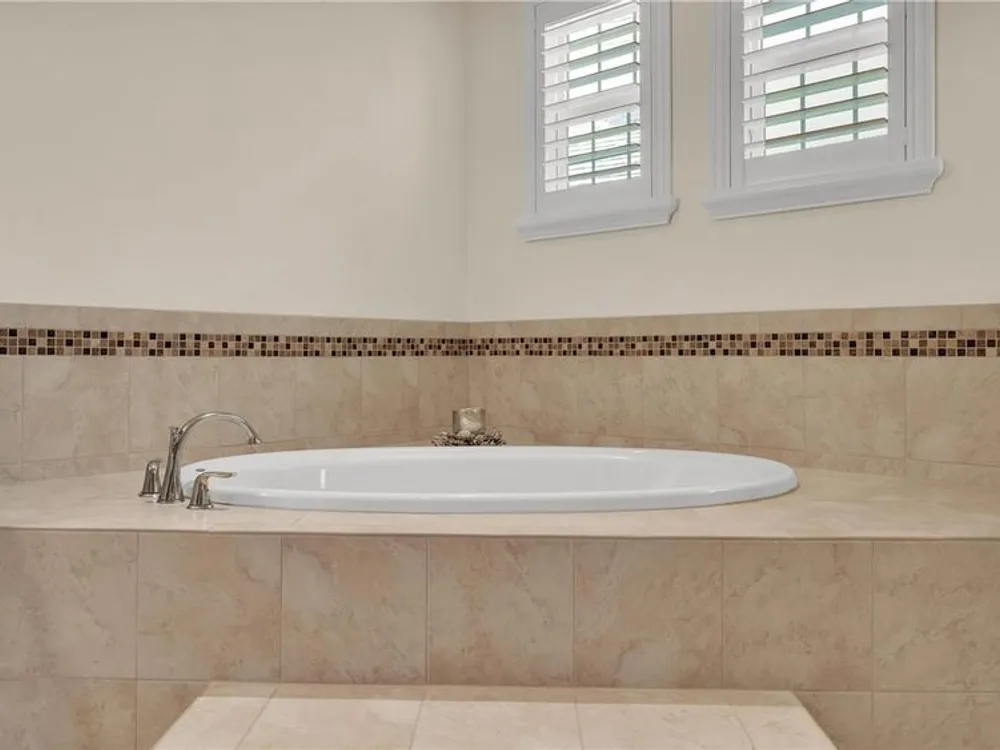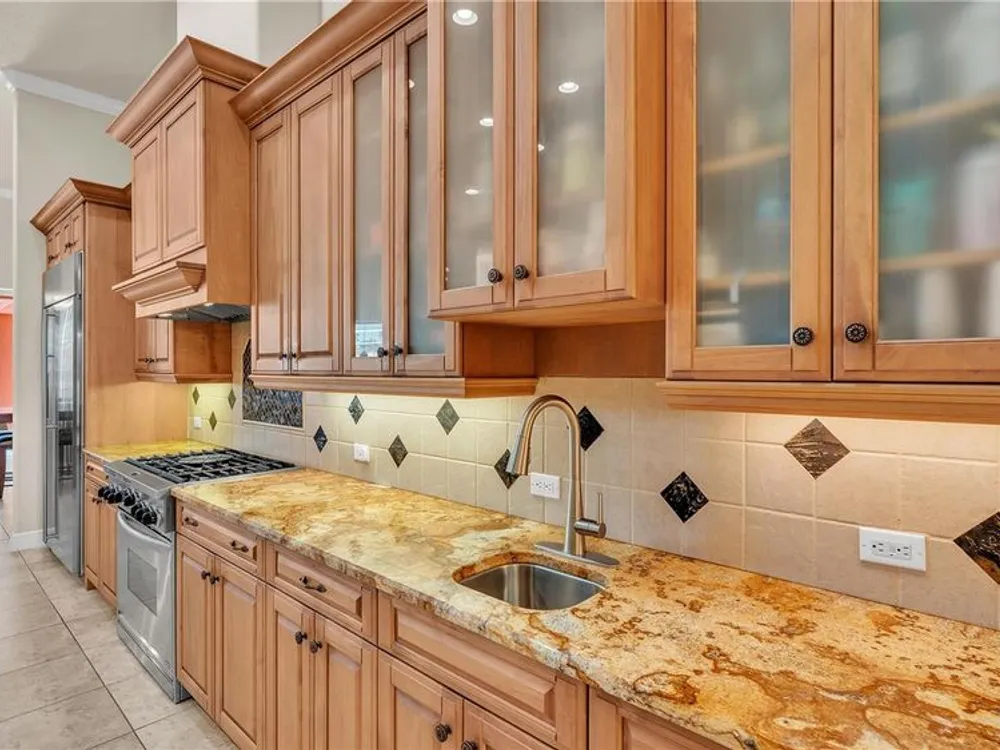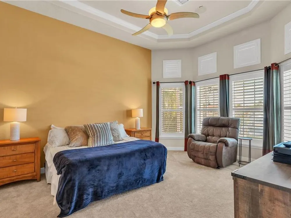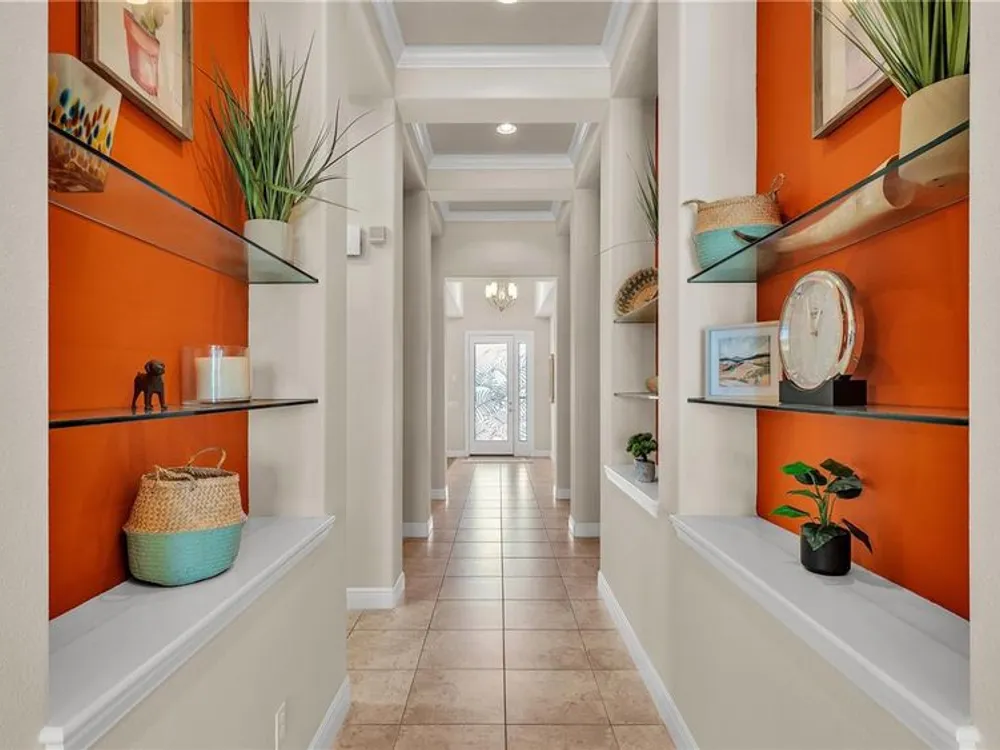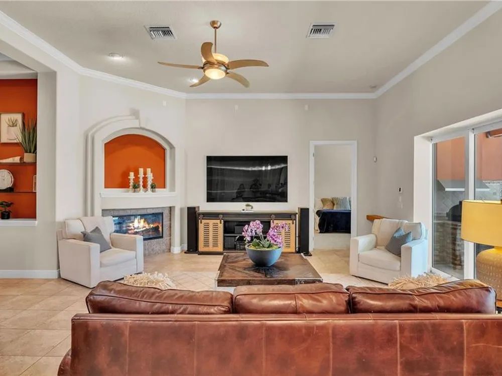 - Built-in Features, Ceiling Fan(s), Coffered Ceiling(s), Crown Molding, Dry Bar, Eat-in Kitchen, High Ceilings, Open Floorplan, In-Wall Pest Control, Main Level Primary, Split Bedrooms, Stone Counters, Thermostat, Tray Ceiling(s), Walk-In Closet(s), Window Treatments