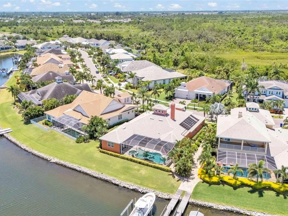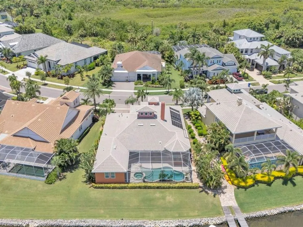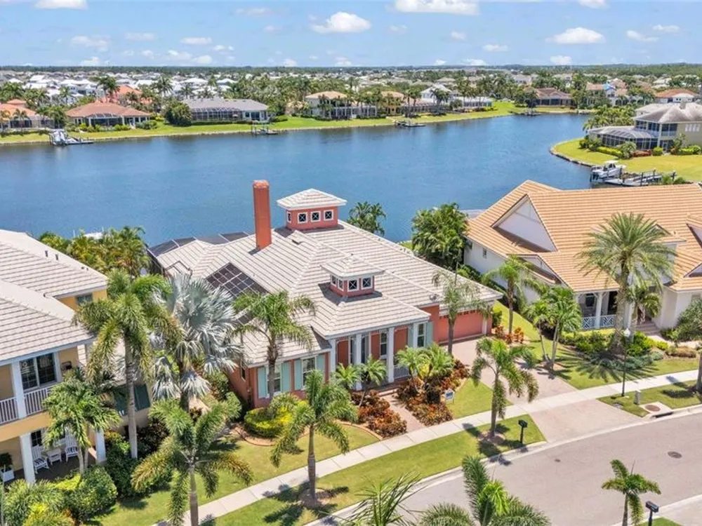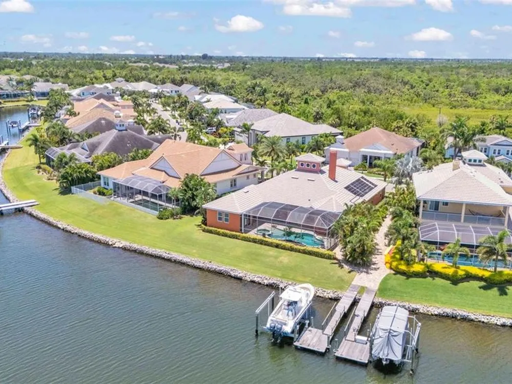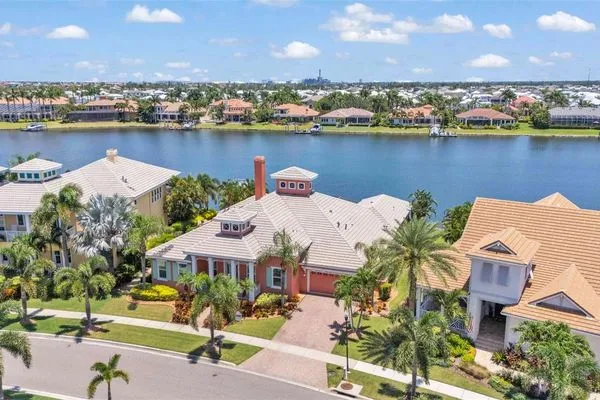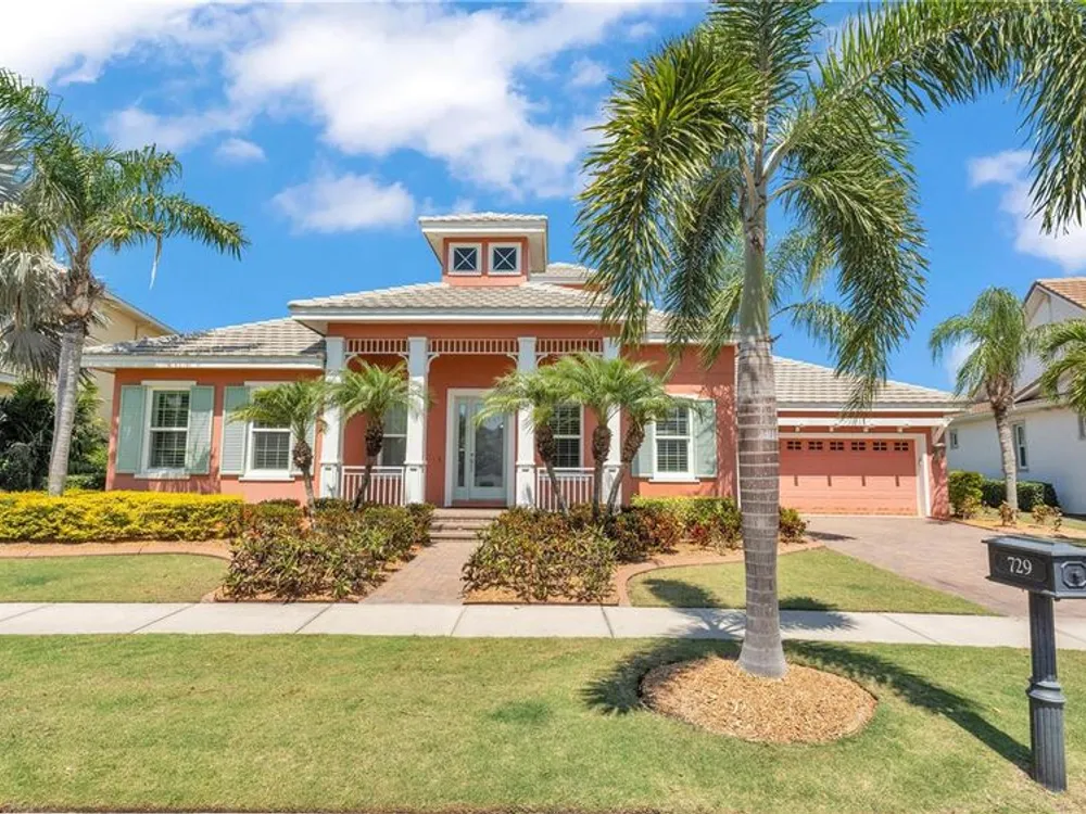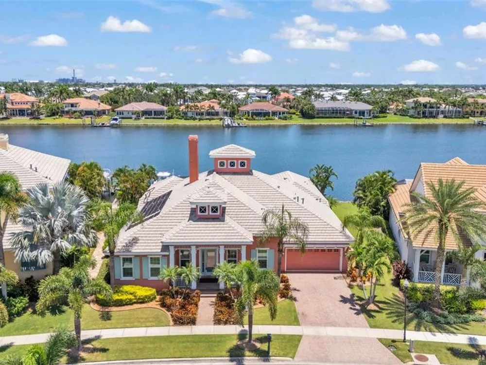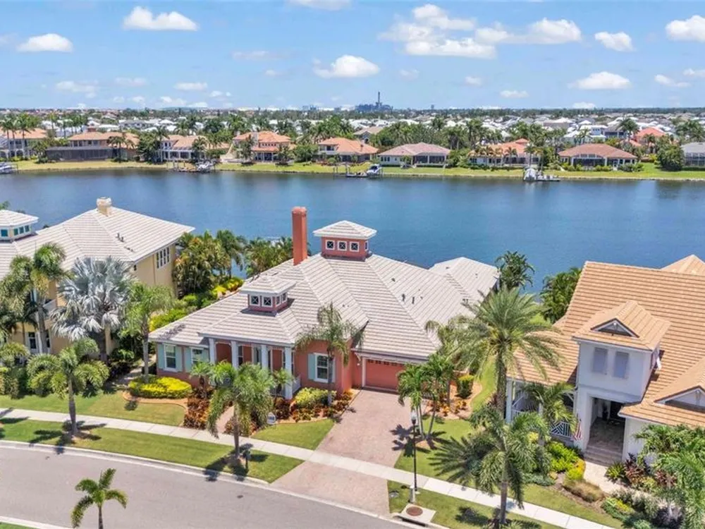 Luxury Waterfront Living in the Heart of Apollo Beach. Step into refined elegance and coastal sophistication with this stunning, Luxury Key West Style Hannah Bartoletta home. 729 Manns Harbor is located in the Exclusive Mirabay community. A Boaters paradise, with your own PRIVATE DOCK featuring a 20,000 POUND LIFT W/REMOTE awaits to provide Direct Gulf Access! Designed with discerning buyers in mind, this residence combines timeless design with high-end finishes, allowing full natural light overlooking the lagoon! From the moment you enter, you’re greeted by twelve-foot ceilings and an expansive, open floor plan, enhanced by tray ceilings that add architectural interest and comfortable living. Split bedroom floorplan, upgraded baseboards, eight-foot doors, and plantation shutters give a seamless blend of style and functionality. The large kitchen features stainless steel appliances, GE Commercial Refrigerator, Gas Stove, Wall oven, granite countertops, 42-inch cabinets with glass, and an oversized breakfast bar—perfect for casual dining or entertaining. The adjacent butler’s pantry is fully equipped with a Miele coffee maker, wine refrigerator, and wet sink. Gather with guests in the great room complete with a fireplace and sliders that opens to a private outdoor kitchen and gas/solar-heated pool. The owner’s suite boasts serene lagoon views, dual walk-in closets, soaking tub and separate shower as well as double vanities. The Guest suite with a private den provides the ultimate comfort and flexibility for multigenerational living, with spacious guest bedroom and bathroom; complete with sliders overlooking the pool and lagoon. Additional features include a full-sized laundry room with cabinetry and a deep utility sink, surround sound system, Newly Upgraded High Efficiency Carrier A/C units, security system, and hurricane impact double-paned windows and doors for energy efficiency and peace of mind. Enjoy the lifestyle in Mirabay, a premier coastal community offering residents exclusive access to a clubhouse, resort-style pools with waterslide, fitness center, and complimentary kayaks for exploring the scenic waterways. This home was HIGH AND DRY after both hurricanes in 2024! 3-car Tandem Garage. Sit back and enjoy Florida Waterfront Living in this meticulously kept home!