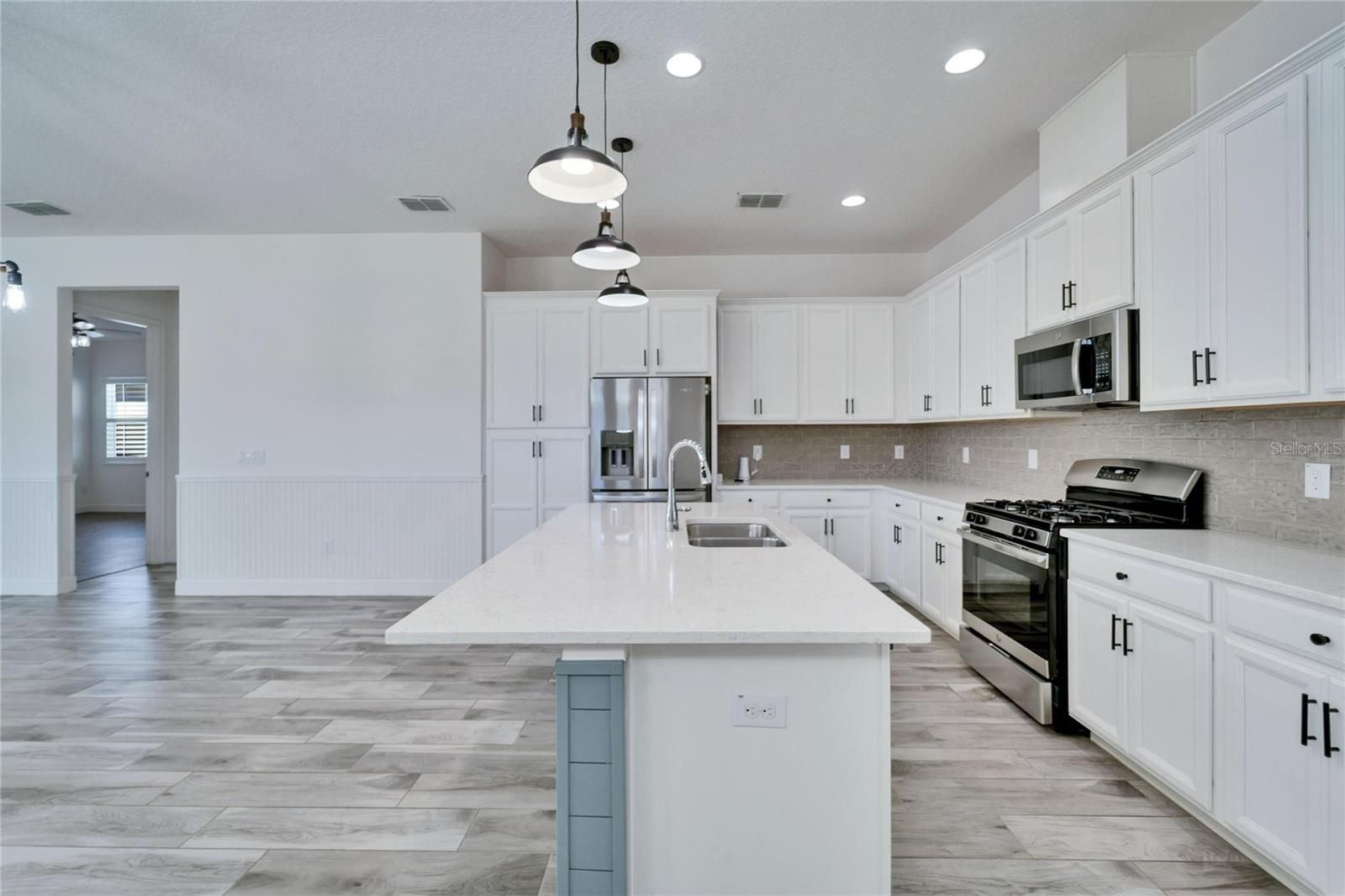 Welcome to 729 Winterside Dr, a beautifully designed modern home situated in a highly desirable community. Featuring a spacious open-concept layout, elegant finishes, and abundant natural light, this residence offers the perfect blend of comfort and style . Enjoy your new home with a dream kitchen equipped with stainless steel appliances, quartz countertops, an oversized island with bar seating, white shaker cabinets, stylish subway tile backsplash, and elegant pendant lighting. The open layout seamlessly connects the kitchen to the dining and living areas, making it perfect for entertaining. Gorgeous wood-look tile flooring throughout the main living spaces, complemented by high ceilings and recessed lighting for a bright and airy feel. Enjoy a master Suite Retreat with a generously sized primary suite featuring a spa-like ensuite bathroom with a double vanity, oversized walk-in shower, and a spacious walk-in closet with plenty of shelving. There are two additional well-appointed bedrooms with large closets, plantation shutters, and ceiling fans. The guest bath features dual sinks, elegant lighting, and a separate shower area. Enjoy dedicated Laundry Room: Equipped with modern washer & dryer, ample storage space, and built-in shelving. The home has an attached 2-Car Garage: A spacious two-car garage with a long driveway, offering plenty of parking and storage. This home is a true gem with move-in-ready appeal in a vibrant, sought-after neighborhood. Don't miss this opportunity to make 729 Winterside Dr your new home!