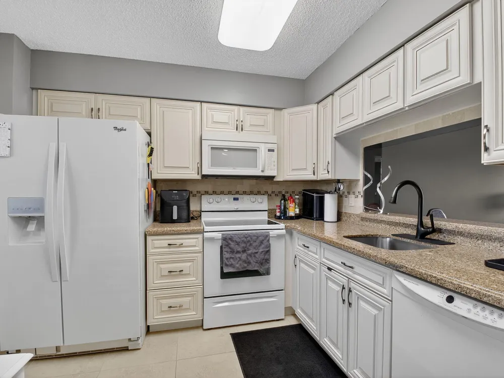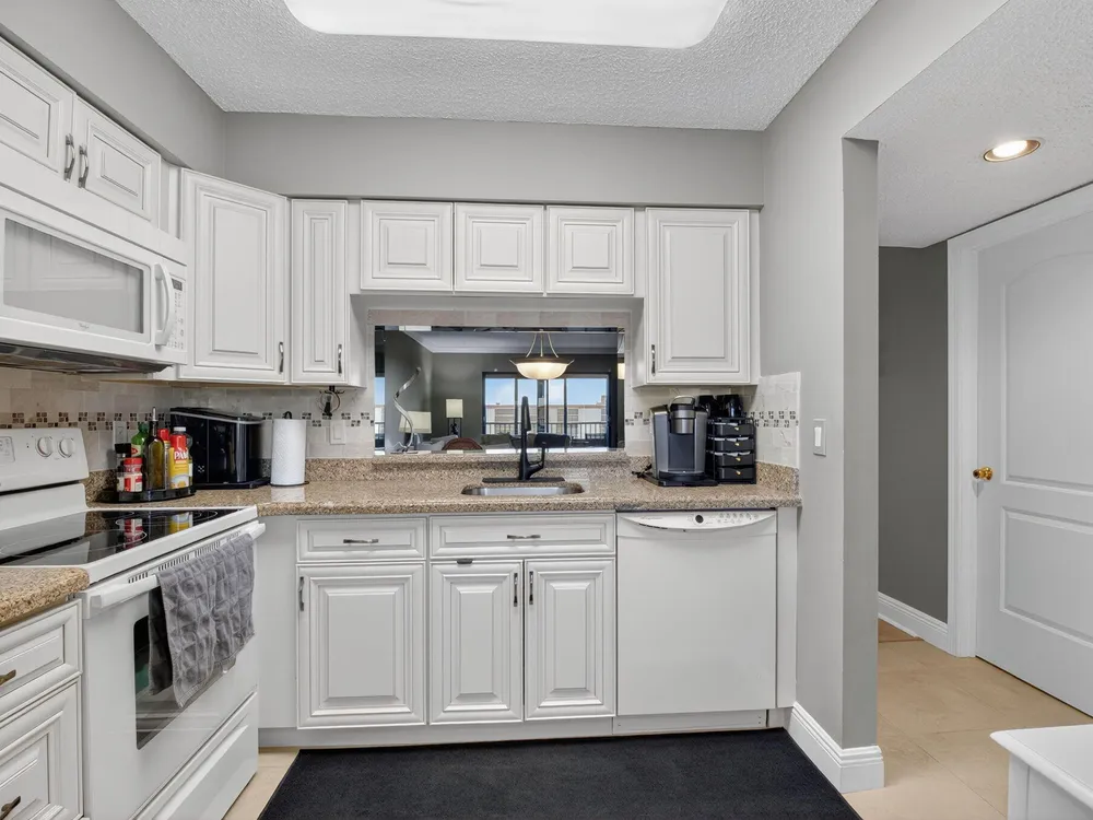 Beautiful Lakefront Penthouse Condo in Sought-After Huntingtion Lakes- 55+ Community. Welcome to this charming and well-maintained 2/2 condo nestled in a peaceful, gated neighborhood, this home offers the perfect blend of comfort, security, and active adult living. Enjoy Impact Windows throughout for added safety and energy efficiency, along with a brand-new A/C unit to keep you cool year-round. The home features a spacious layout with plenty of natural light and serene views. Kitchen boasts granite counters and custom cabinetry, Primary BR includes walk-in closets and spa-like bath with tile and designer looks. Step outside and take advantage of the multiple scenic walking paths, resort-style amenities including newly renovated clubhouse, Indoor pool, fitness center, and Social Events!
