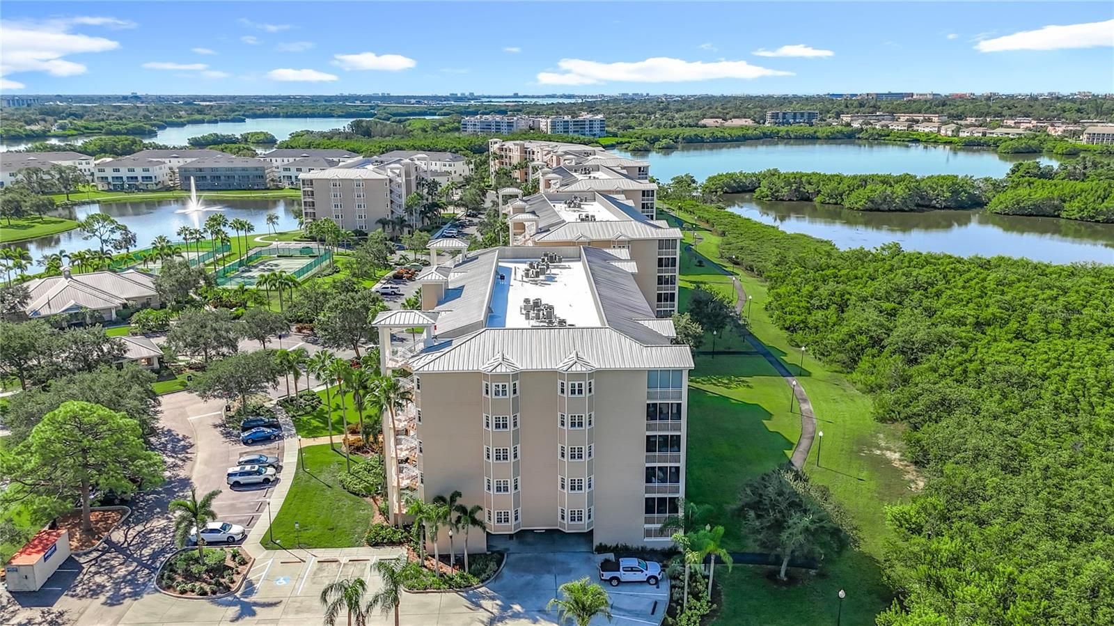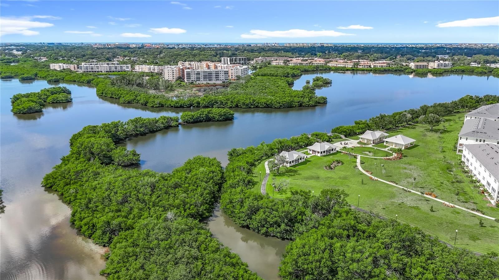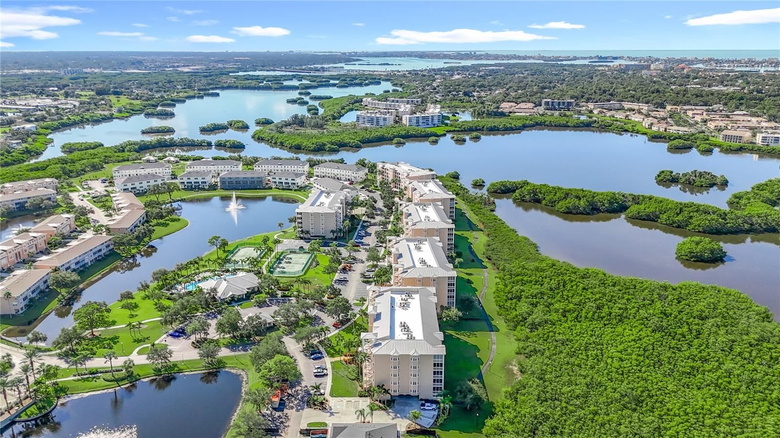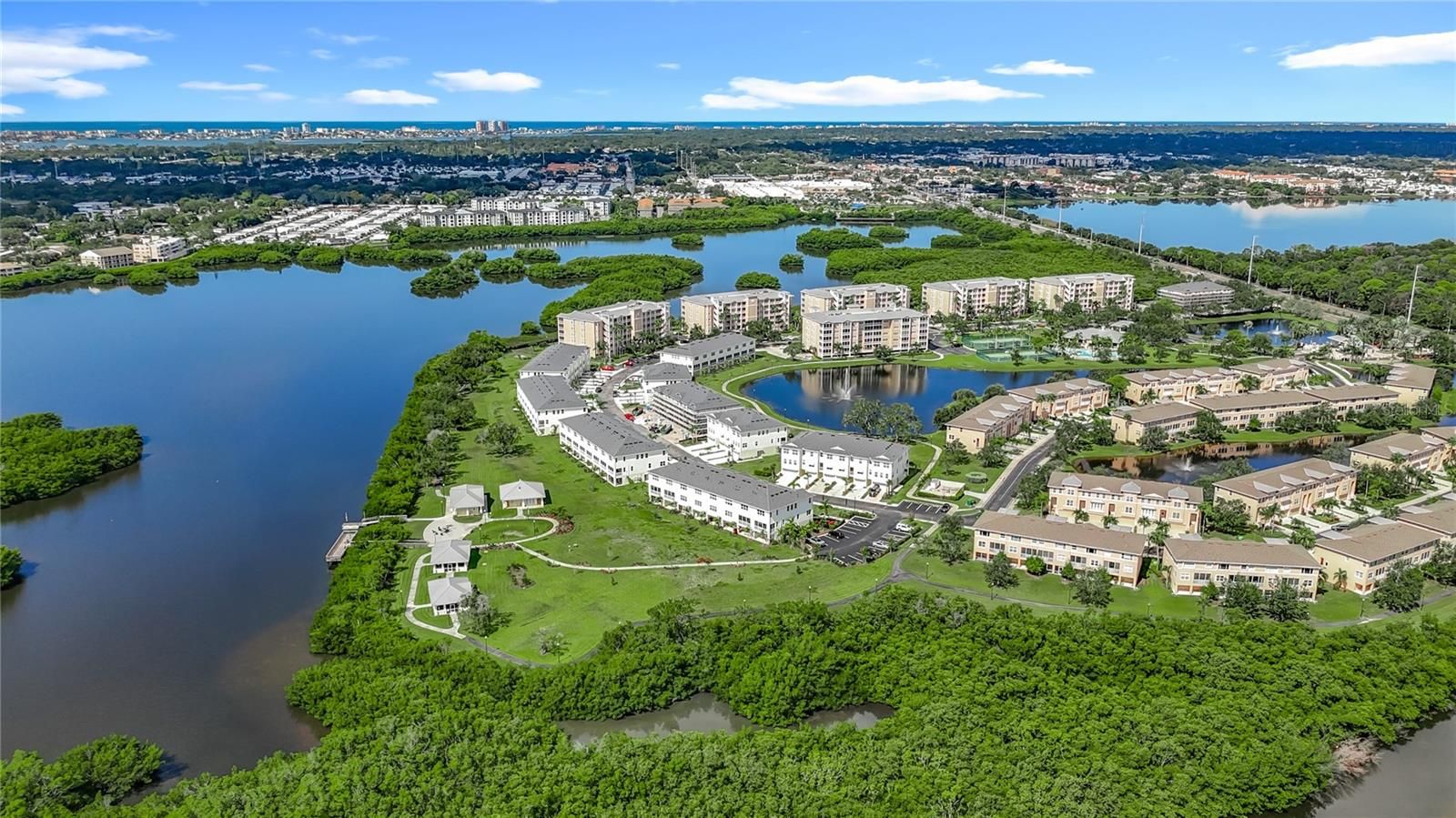 *RARELY AVAILABLE END UNIT* NEW PRICE. Welcome to Seminole Isle, an exclusive, resort-style gated community, conveniently situated just 7 minutes from the Gulf of Mexico's pristine beaches. This stunning 3-bedroom, 2-bathroom END unit spans 2100 sqft and boasts unparalleled views of the surrounding conservation area. Step inside to discover 9' ceilings, and a spacious open floor plan that's perfect for entertaining. The updated kitchen and breakfast area feature granite countertops and the solid wood cabinets provide tons of storage. An extra-long breakfast bar sits between the kitchen and great room with a beautiful brass foot rail to add charm and function. The view from your living room is spectacular. Oversized sliding doors lead to a West/North facing screened balcony overlooking the mangroves. Fabulous area to watch the sunsets and relax. Also, a great spot for your plants to thrive. The master bedroom is a sanctuary with dual walk-in closets, an oversized en-suite bathroom offering a Jacuzzi tub, walk-in shower, and dual sinks. Two generously sized guest rooms, one featuring an en-suite style shared bathroom giving extra privacy for family or guests. And the other with a view of the community center and water features. This unit has many upgrades including, hardwood flooring in the living areas and bedrooms, and tile in the kitchen and bathrooms. Some recent updates to major appliances include the HVAC, refrigerator & hot water tank. This exceptional property also includes an under-building parking space #B-06. Enjoy resort-style amenities such as a clubhouse, fitness center, heated pool, tennis and pickle ball courts, kayak launch and storage facilities, large fishing pier, picnic pavilions with fire pit, barbecue grills, and a scenic 1-mile walking path. Set in a pet-friendly community, Seminole Isle offers breathtaking water views of the Bayou and is adjacent to Seminole Park, known for its scenic trails, tennis and pickle ball courts, boat ramps, playgrounds, gazebos, and more. Conveniently located just 30 minutes from Tampa International Airport and 5 minutes from Seminole city mall, this location blends convenience with luxurious coastal living.