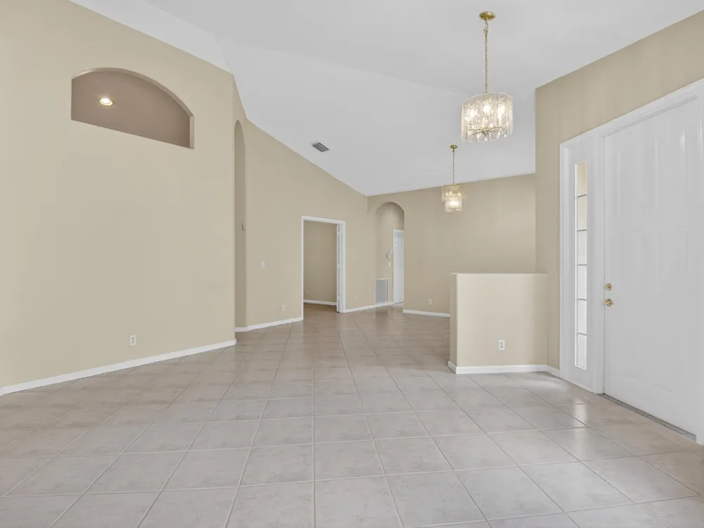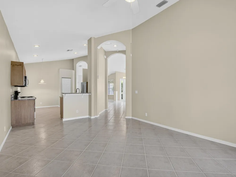 - Split Bedrooms, Entry Level Living Area, Kitchen Island, High Ceilings, Walk-In Closet(s), Entrance Foyer, Pantry, Family Room, Converted Bedroom, Home Office, Living/Dining Room, Breakfast Area, Separate Shower, Primary Downstairs, Dual Sinks, Washer/Dryer Hookup, Storm Shutters