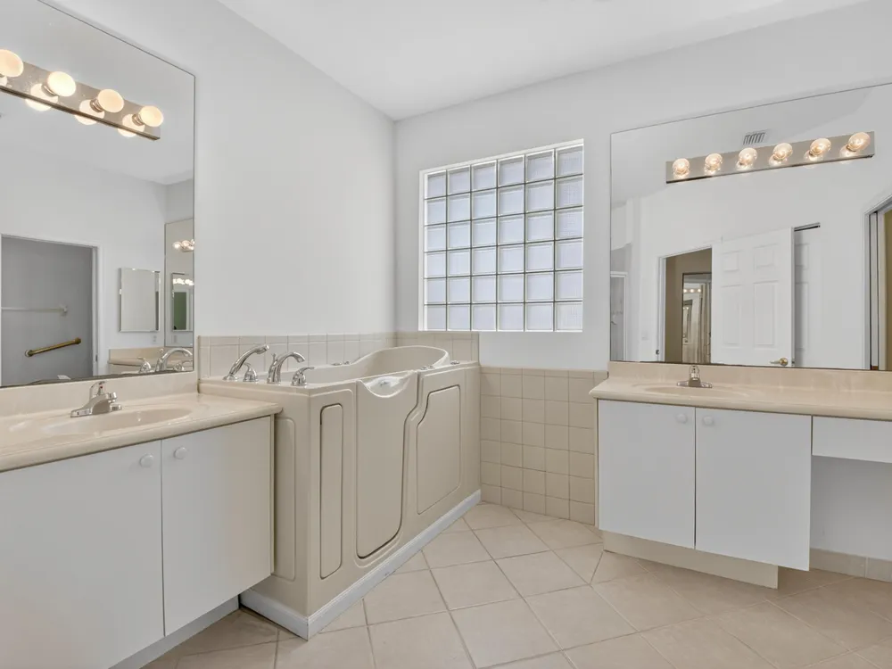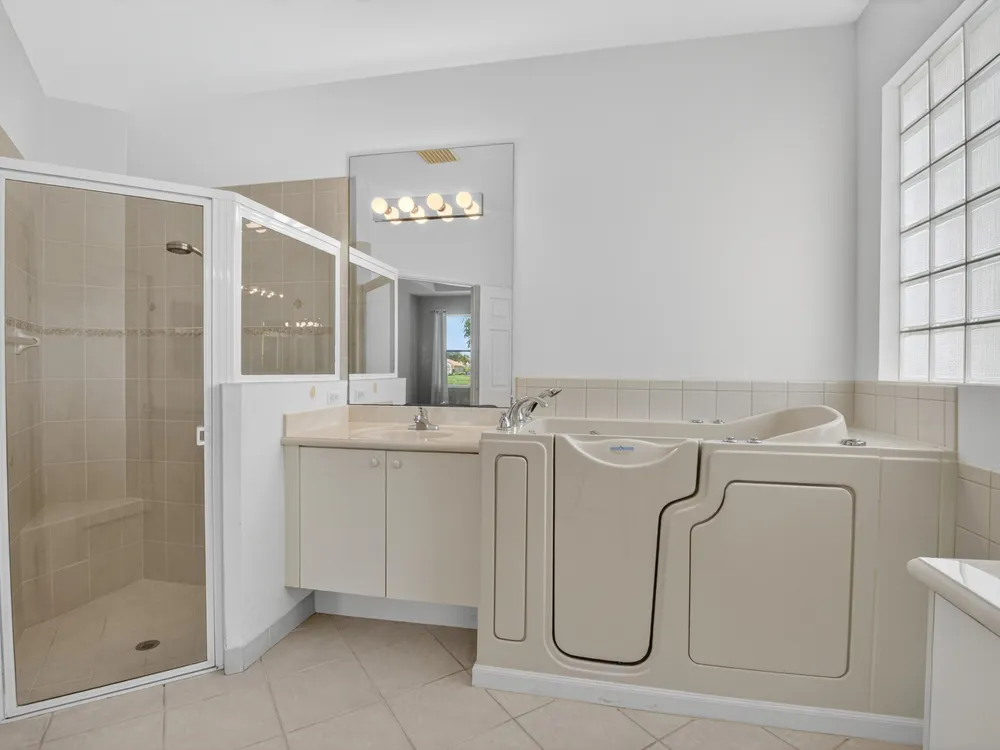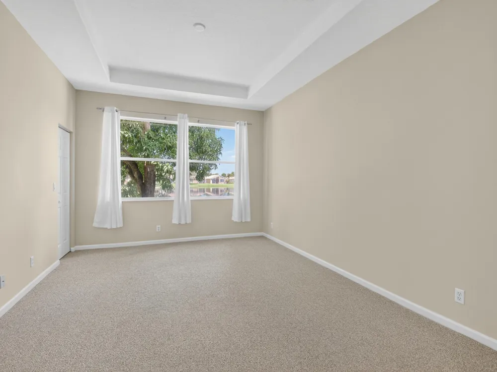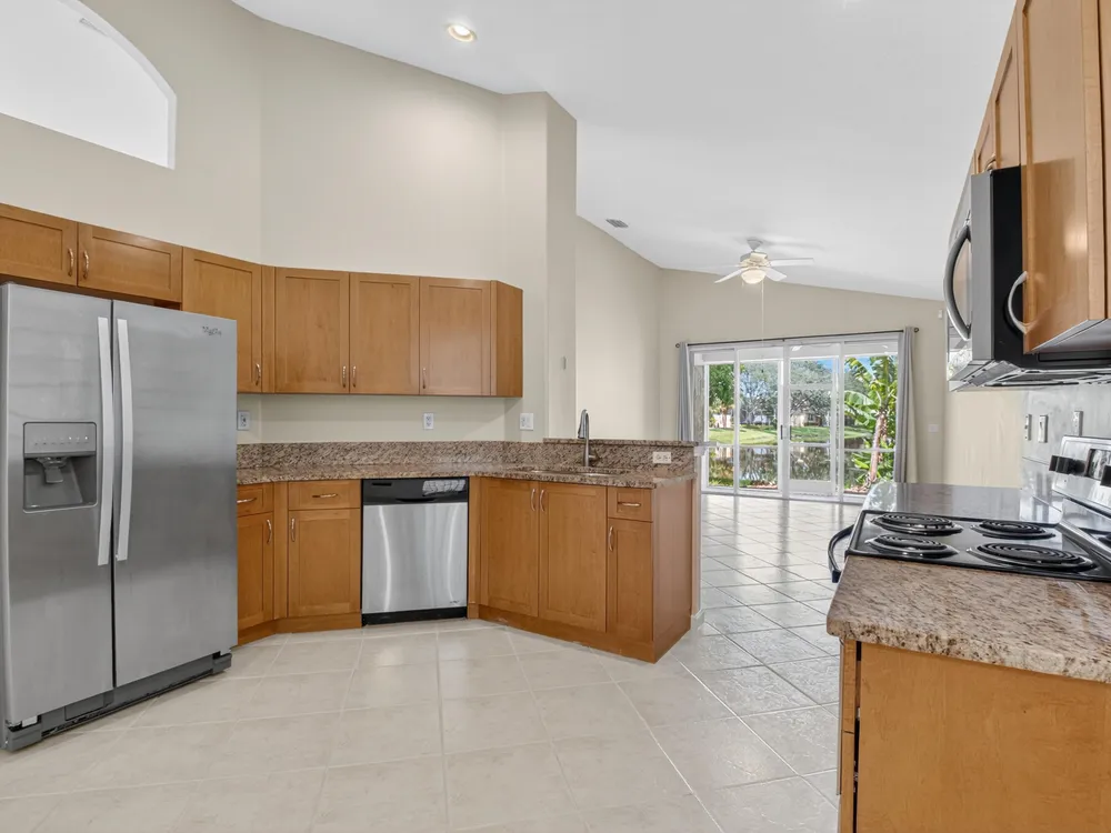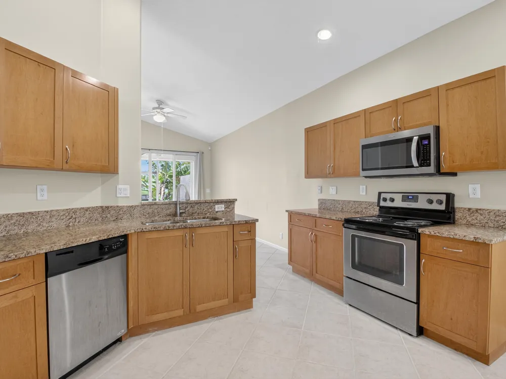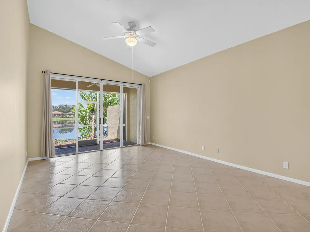 Enjoy peaceful water view from this beautifully maintained 2 bedroom 2 bath +plus den home in this sought after 55+ guard gated community of Vizcaya in sunny Delray Beach.This bright and airy residence features entertainment size living and dining room, updated kitchen with wood cabinets, granite countertops Large family room to play all your games or watch TV.. Spacious primary bedroom with ensuite bath . Screened lanai overlooking the tranquil water for rest and relaxation.This home offers easy access to updated clubhouse , fitness center, theater, card rooms, olympic size pool, tennis, pickleball, and bocce and full social calendar.Low HOA, Full time manager and social director make this the ideal community at a fabulous price.