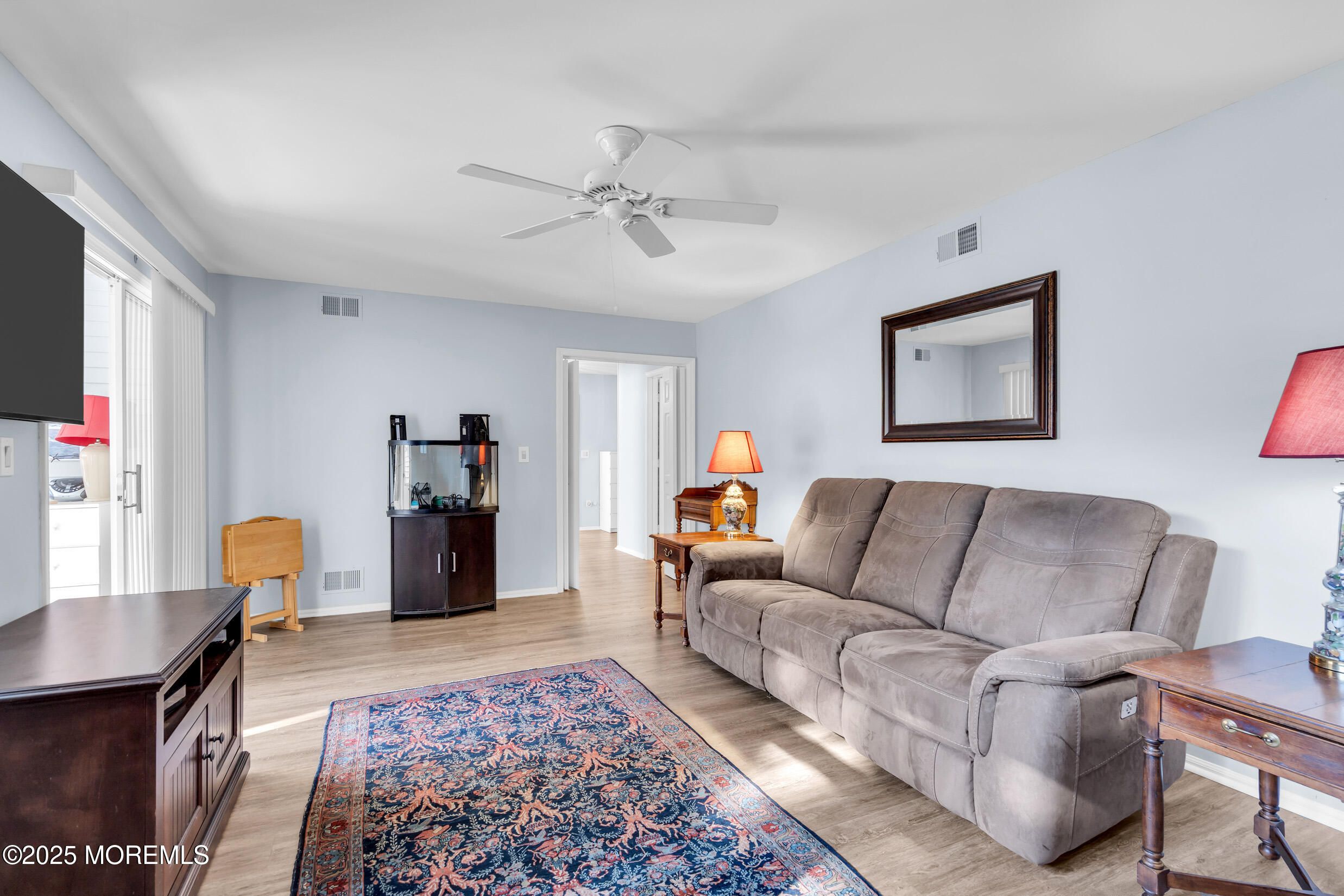 Discover this charming Burchfield model home, perfectly designed for comfortable living and entertaining. From the moment you step inside, you'll be captivated by the stunning new laminate flooring that flows seamlessly throughout the spacious over 1,800 square feet of living space. This inviting home features 2 bedrooms, a generous living area, a formal dining room, and an eat-in kitchen with a striking vaulted ceiling and skylights that flood the space with natural light. Enjoy relaxing in the versatile 4-season room or working from the cozy den. The one-car garage adds convenience and storage. The highlight of this home is the beautifully renovated primary bathroom, designed to impress even the most discerning buyers. Whether you're hosting guests or enjoying quiet evenings, this home offers the perfect blend of style and comfort. A must-see property that combines modern updates with timeless charmschedule your tour today!