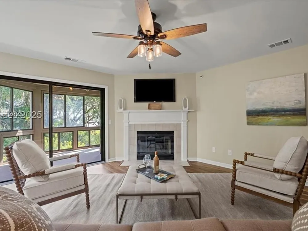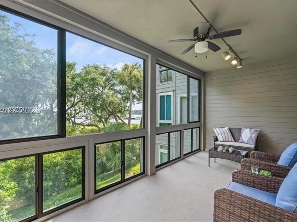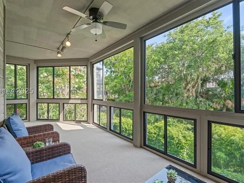Light-filled 3BR flat offering peaceful angled views of the Intracoastal through graceful oaks draped in Spanish moss. End unit lives larger w/ extra sunlight & a sense of privacy surrounded by nature. Spacious enclosed porch expands gathering space, perfect for morning coffee & Low Country sunsets! Stylishly updated;LVP floors, refreshed baths & fireplace, ss appliance etc. offering a light welcoming feel throughout. Mariners Point owners enjoy a private pool plus all the top-tier amenities of Hilton Head Plantation—golf, pickleball, tennis, leisure trails, marina, Pine Island Beach, 24/7 security & much more. 1,676 sq. ft. Don't miss out!