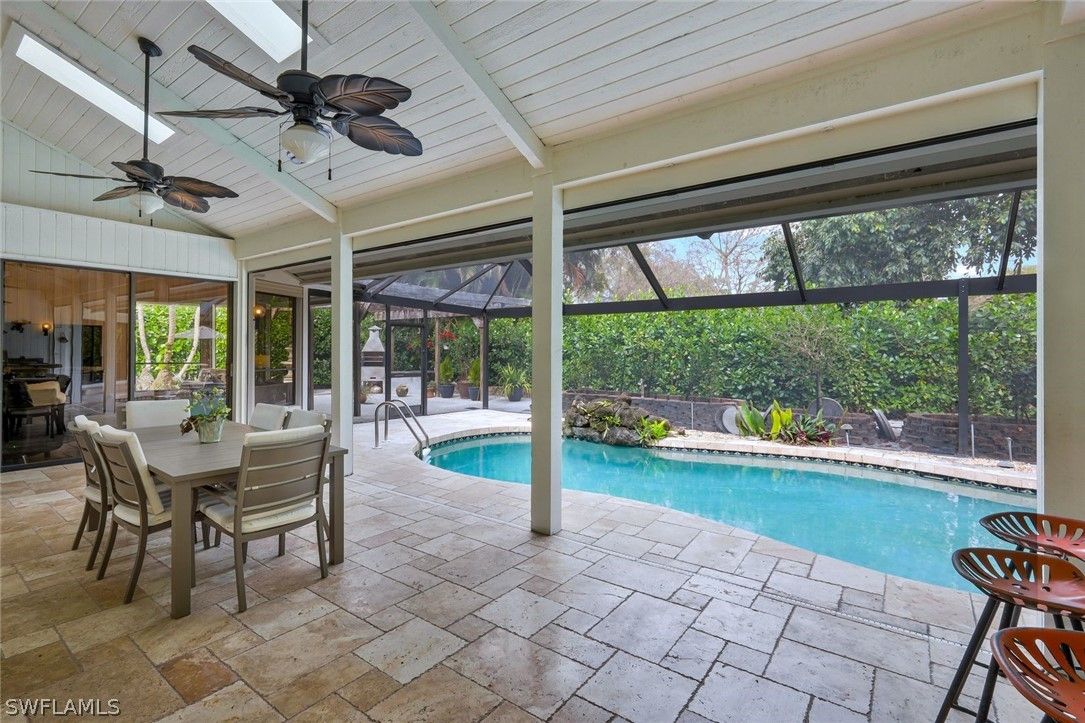 Perfectly positioned on a quiet cul-de-sac in the heart of Pelican Bay on a .36 acre lot, this one of a kind this iconic residence has been masterfully updated and offers the ideal blend of luxury, comfort, and location. Just moments from Artis-Naples, Southwest Florida’s premier performing arts center, Dramatic features the home features soaring ceilings and an impressive loft overlooking the main living area anchored by a cozy fireplace. The stunning updated kitchen showcases elegant Sea Pearl quartzite countertops, quality cabinetry, and generous prep space, while updated guest bathrooms add a fresh, modern feel throughout. Step outside to your private tropical retreat where a sparkling pool and spa are complemented by a fully equipped outdoor kitchen, expansive entertaining areas, and a beautiful pergola with a fire feature, creating the perfect setting for gatherings year-round. A large wet bar further enhances the home’s entertaining appeal. Additional highlights include hurricane protection throughout, abundant natural light, and a floor plan designed to maximize both privacy and functionality.Located in one of Naples’ most sought-after communities, residents of Pelican Bay enjoy private beach access, beachfront dining, tennis, fitness, and miles of scenic walking paths. This is a rare opportunity to own a move-in ready home in a truly second-to-none location. Pelican Bay golf course. Pelican Bay residents enjoy 18 tennis courts, 20 pickleball courts, a community center offering exercise classes, private fitness trainers Pelican Just minutes to Whole Foods, Trader Joes, Mercato, two movie theaters and shopping. Owners and guests enjoy complimentary kayaks, sea kayaks, canoes and paddle boards all part of the Pelican Bay package. Pelican Bay has its own Publix, Ace Hardware, CVS, charming restaurants and shops. Topping off these amenities are two private beach clubs offering two casual dining restaurants, beach attendants and morning exercise classes . World class entertainment awaits you at Artis-Naples, At Waterside Shops you will find fun dining and shopping at Saks Firth Ave, Apple Store, Tiffany, Hermes, and coming to Waterside Shops a new Restoration Hardware concept. See the video to get the full effect of the units unqiue qualities. BE SURE TO VIEW VIDEO ON THIS LISING!