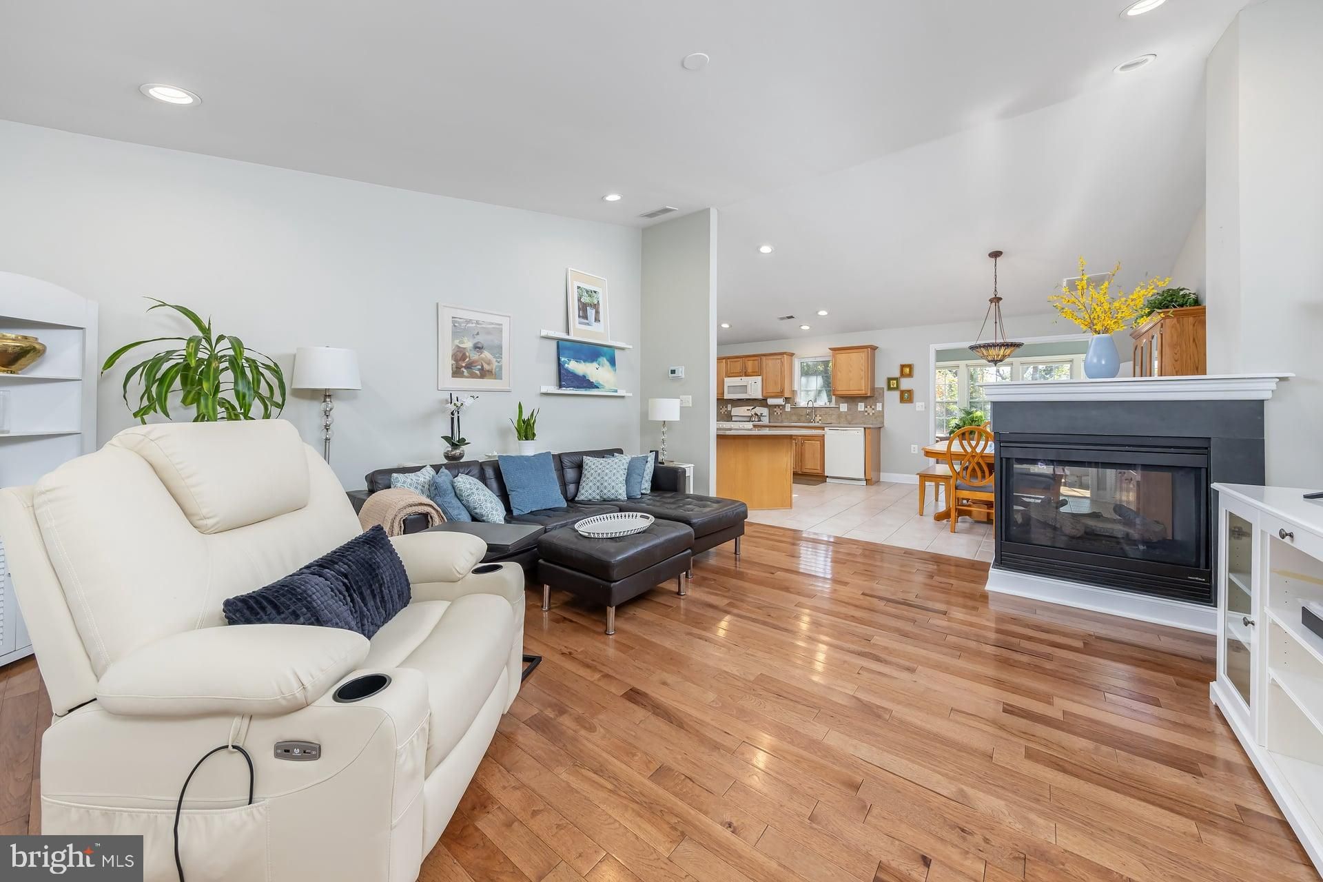 Welcome home to easy living in this beautifully maintained 55+ community where lawn care and snow removal are taken care of for you! This stunning home offers a perfect blend of comfort and style with neutral paints and flawless hardwood flooring flowing through most of the living spaces. At the heart of the home is a charming three-sided gas fireplace that creates a warm and inviting focal point between the living, dining, and kitchen areas. The open-concept kitchen is vaulted and filled with natural light, featuring recessed lighting, tile flooring, a breakfast bar, plenty of cabinetry, and a tasteful tile backsplash. The refrigerator is included, making this kitchen truly move-in ready. Just off the kitchen, the bright and cheerful sunroom is the ideal spot to relax or entertain, with a walk-out to your private patio. Convenience continues with a well-equipped laundry room offering cabinetry, a pantry closet, and included washer and dryer. The spacious primary bedroom boasts two closets, hardwood flooring, and a beautifully tiled en-suite bath. A comfortable guest bedroom with hardwood floors completes the interior. Additional features include a one-car garage and a 3-ft crawl space with a concrete floor—perfect for extra storage. The community’s fantastic location offers easy access to grocery stores, the post office, and all the charm of historic downtown Mullica Hill—known for its boutique shopping, cozy tea room, ice cream parlor, and welcoming small-town atmosphere. Enjoy an active senior lifestyle in Harrison Township, where comfort, community, and convenience come together perfectly. Just minutes to the award winning William Heritage Winery and the New Inspira Hospital.
