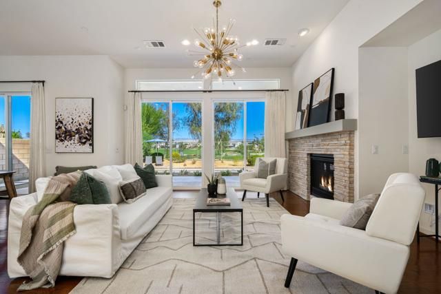 Palm Springs Paradise, Live the Palm Springs dream--sun-drenched days, desert whispers, mid-century cool--from your golf course retreat. Sunrise over the Pebble Tec pool, backyard greens and water features, zero road noise in quiet bliss. 2013 built in modern style. Approx. 1,940 sq ft, 3 beds/2.5 baths on over 7,400 sq ft lot. West entry glow, east patios for shaded lounging and golf course and mtn views. Single fireplace coziness. Virtually flawless and ready--seize your oasis. Tour today!