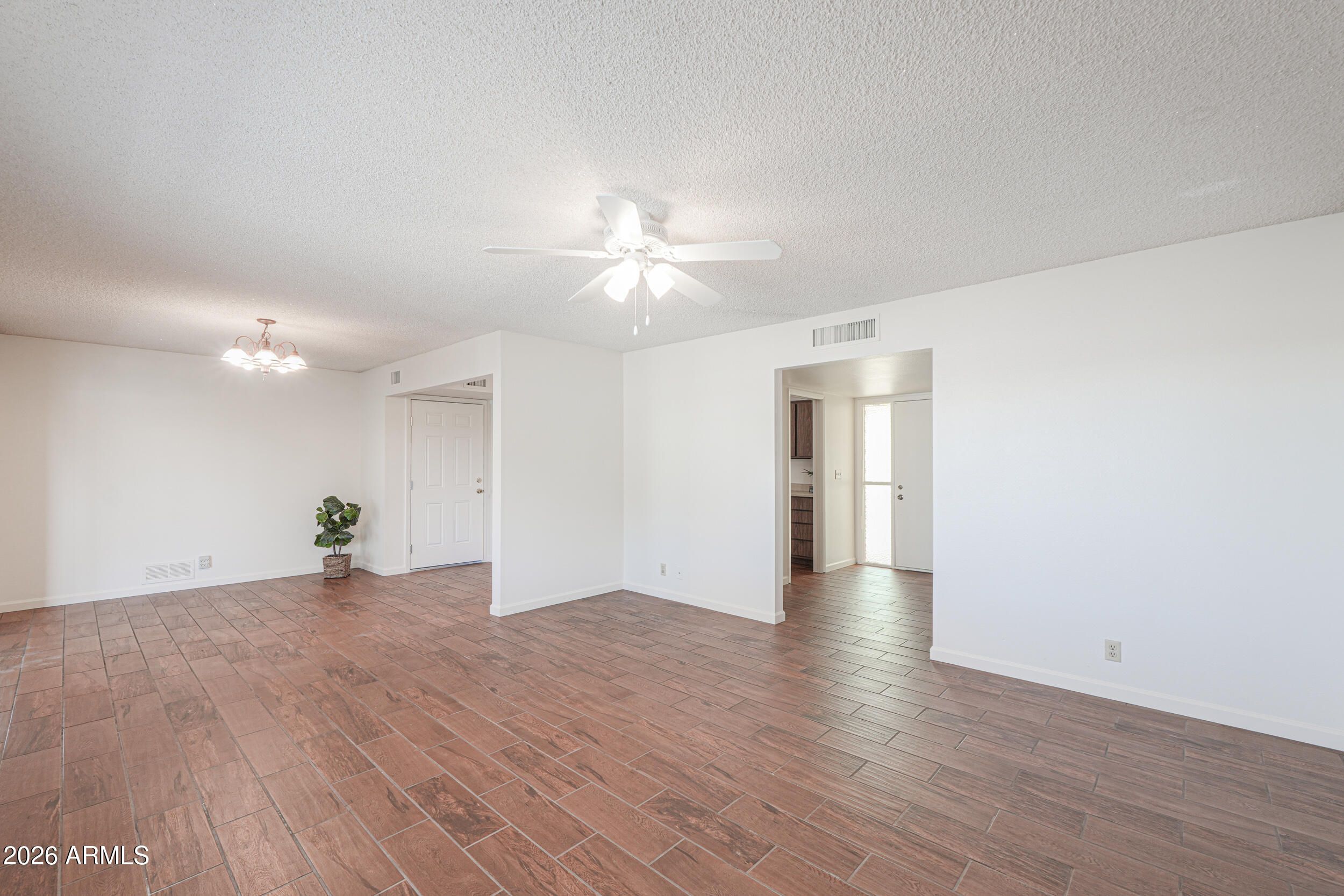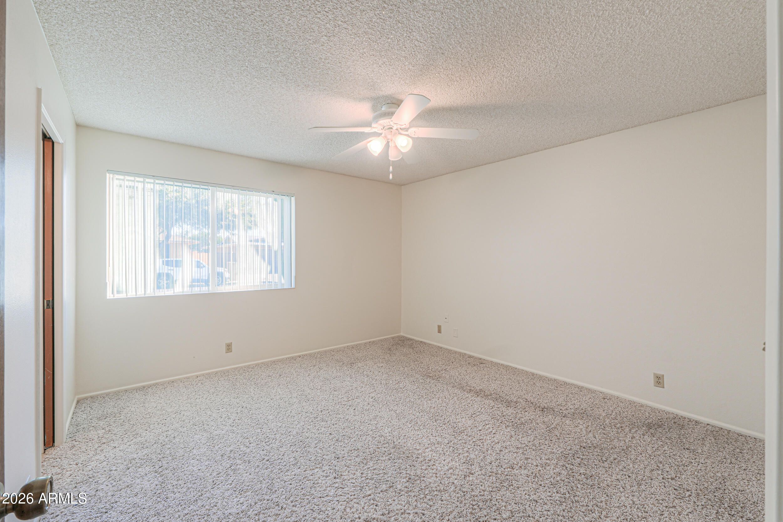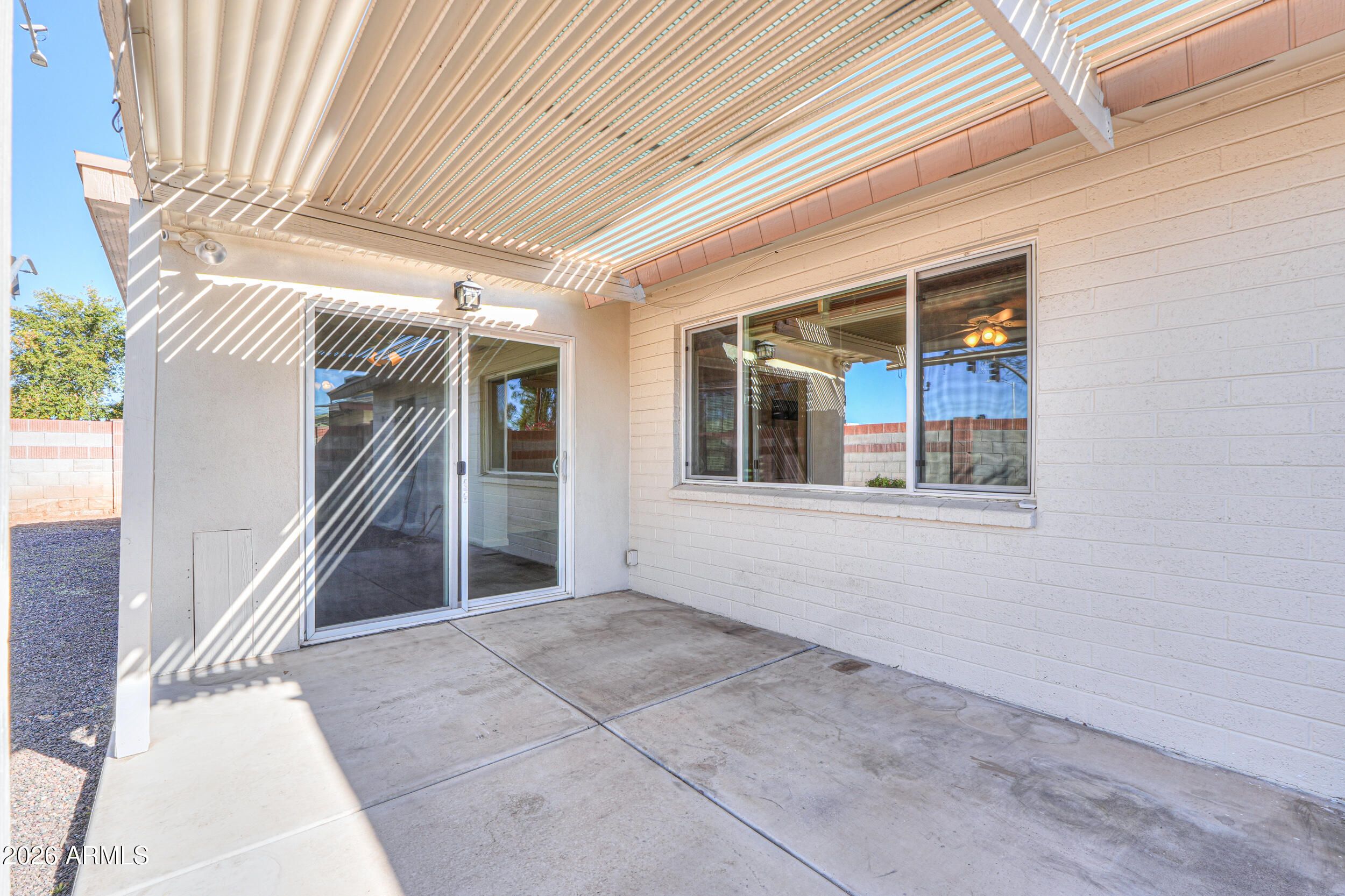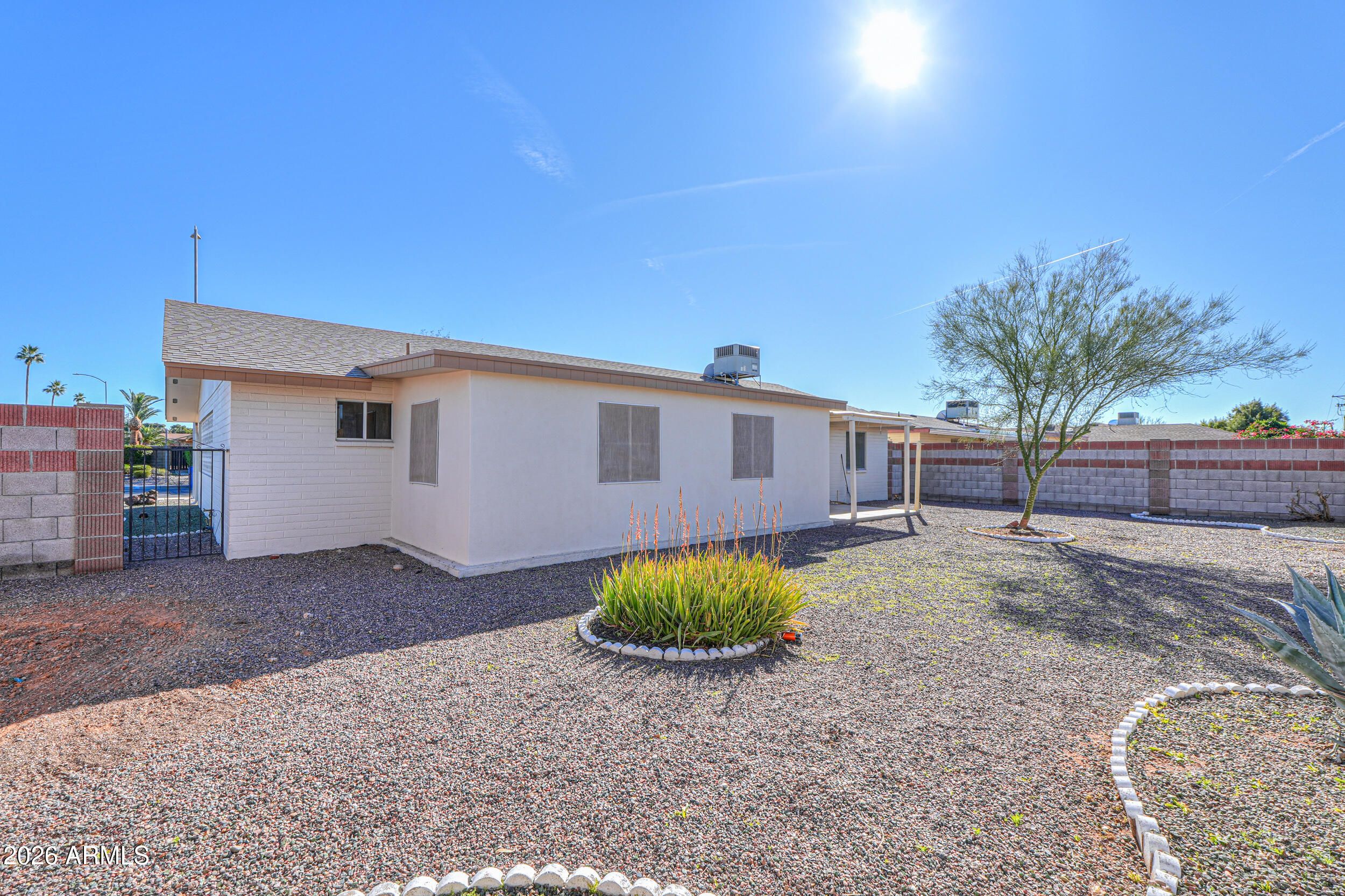 Welcome to this beautiful 2 bedroom, 2.5 bathroom home located in the desirable 55+ community of Sunland Village. Offering 1,620 square feet of comfortable living space. A brand-new roof was completed in 2024, along with exterior repainting, giving the home great curb appeal. Dual pane windows enhance energy efficiency, while the interior was freshly painted for a clean feel. The flooring has been redone with tile throughout the main living areas and plush carpet in both bedrooms. The enclosed Arizona Room includes added AC vents, and was redesigned to create an open, functional extension of the living space. Enjoy everything this home and community has to offer!