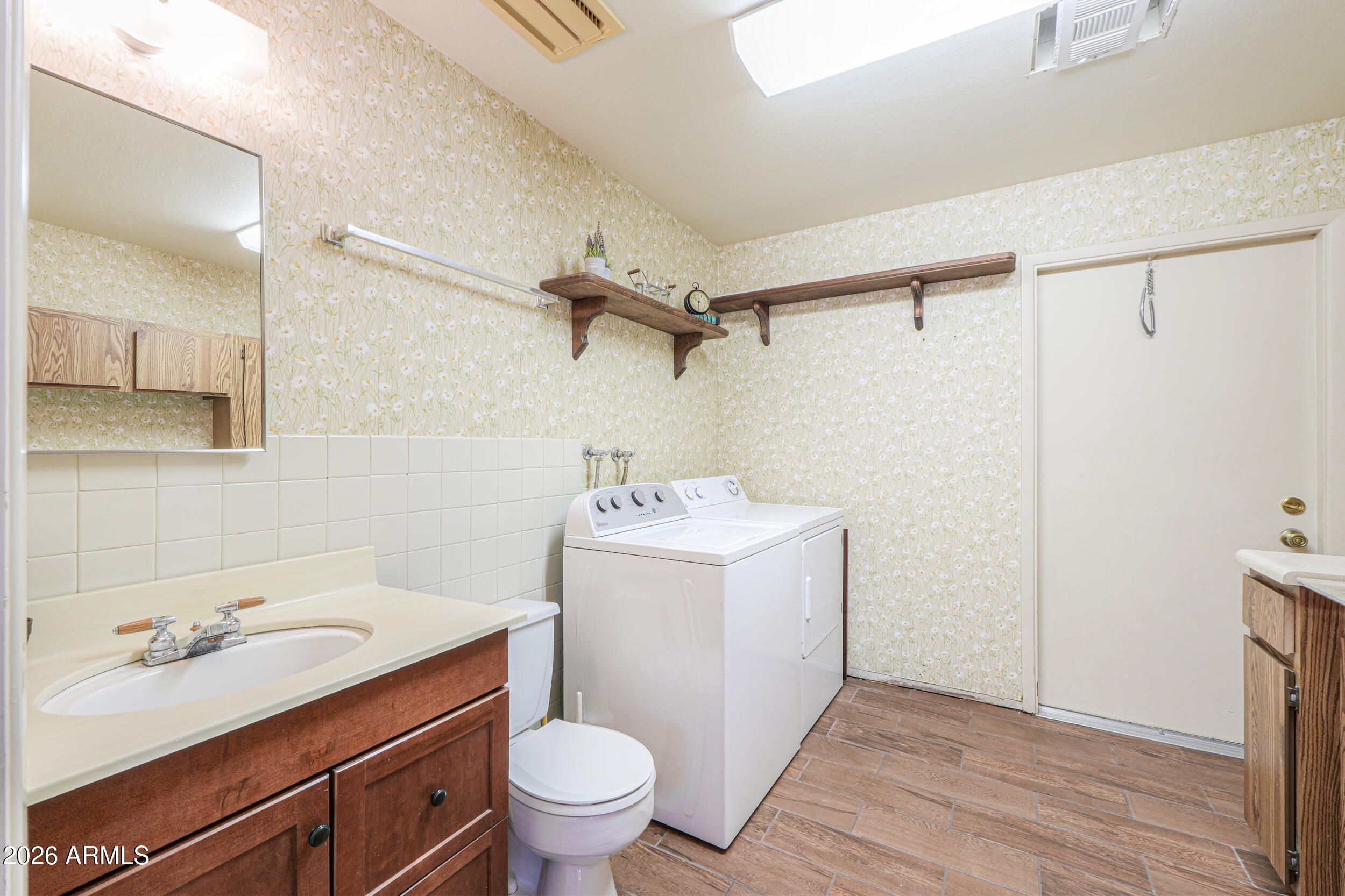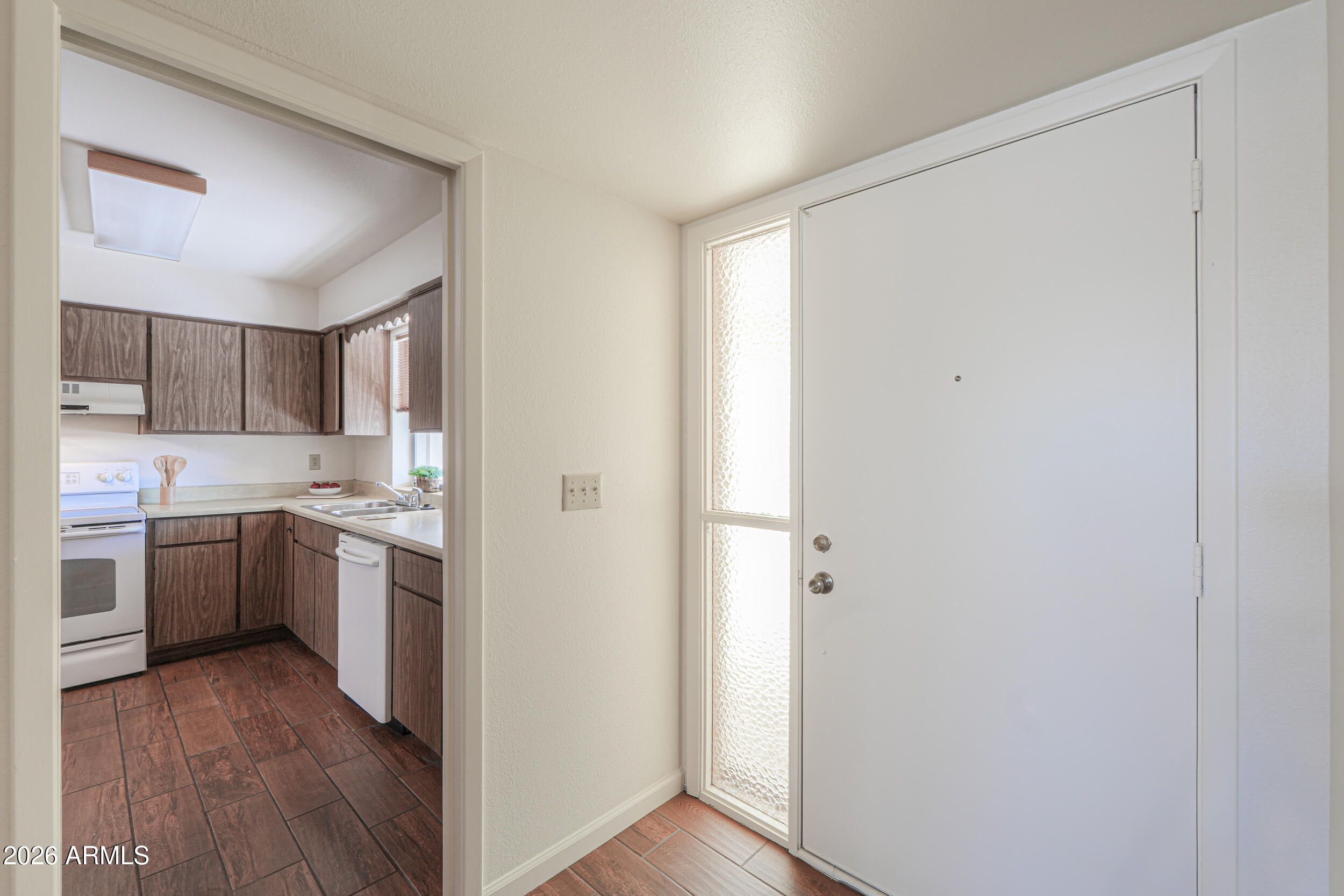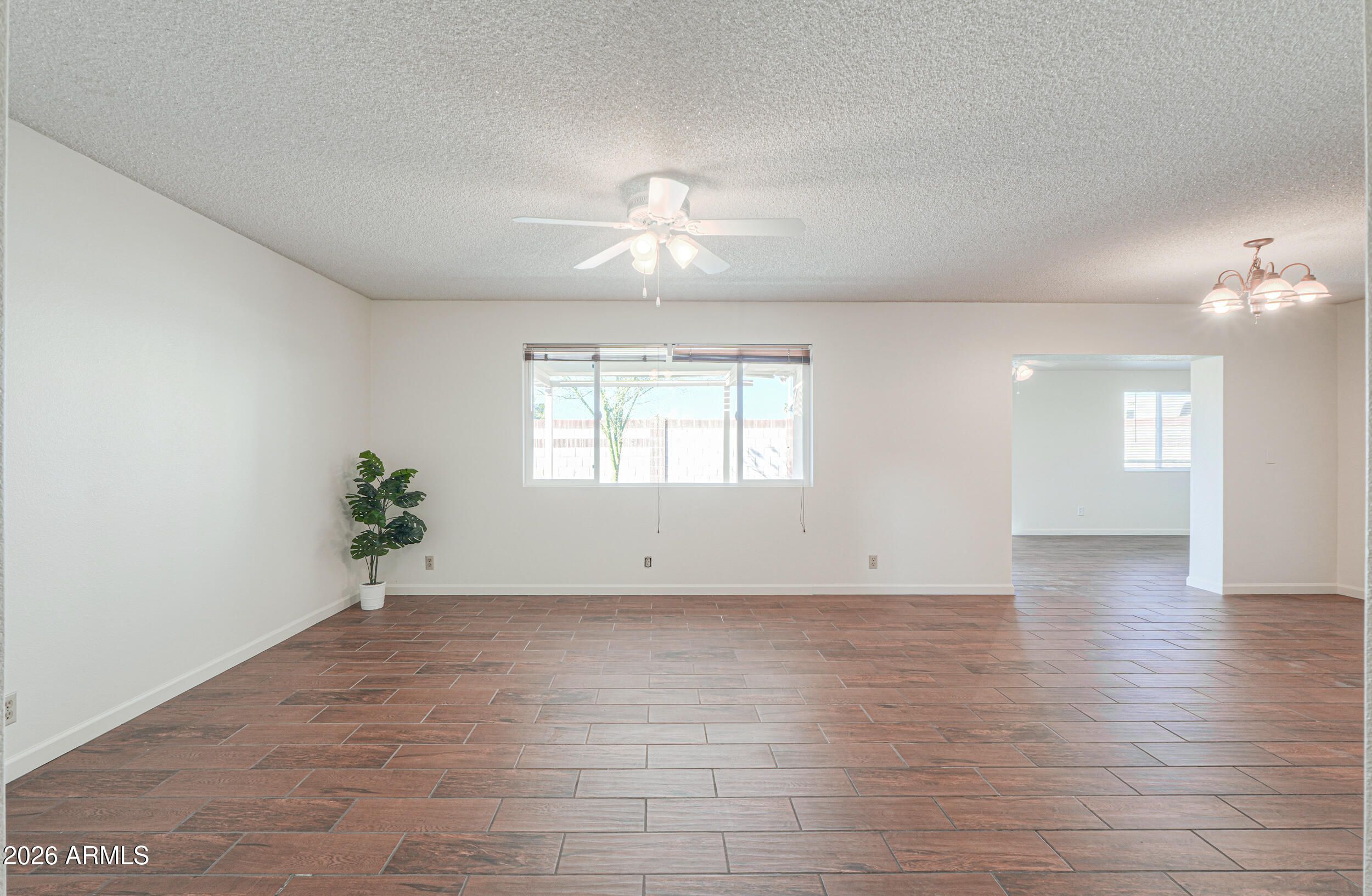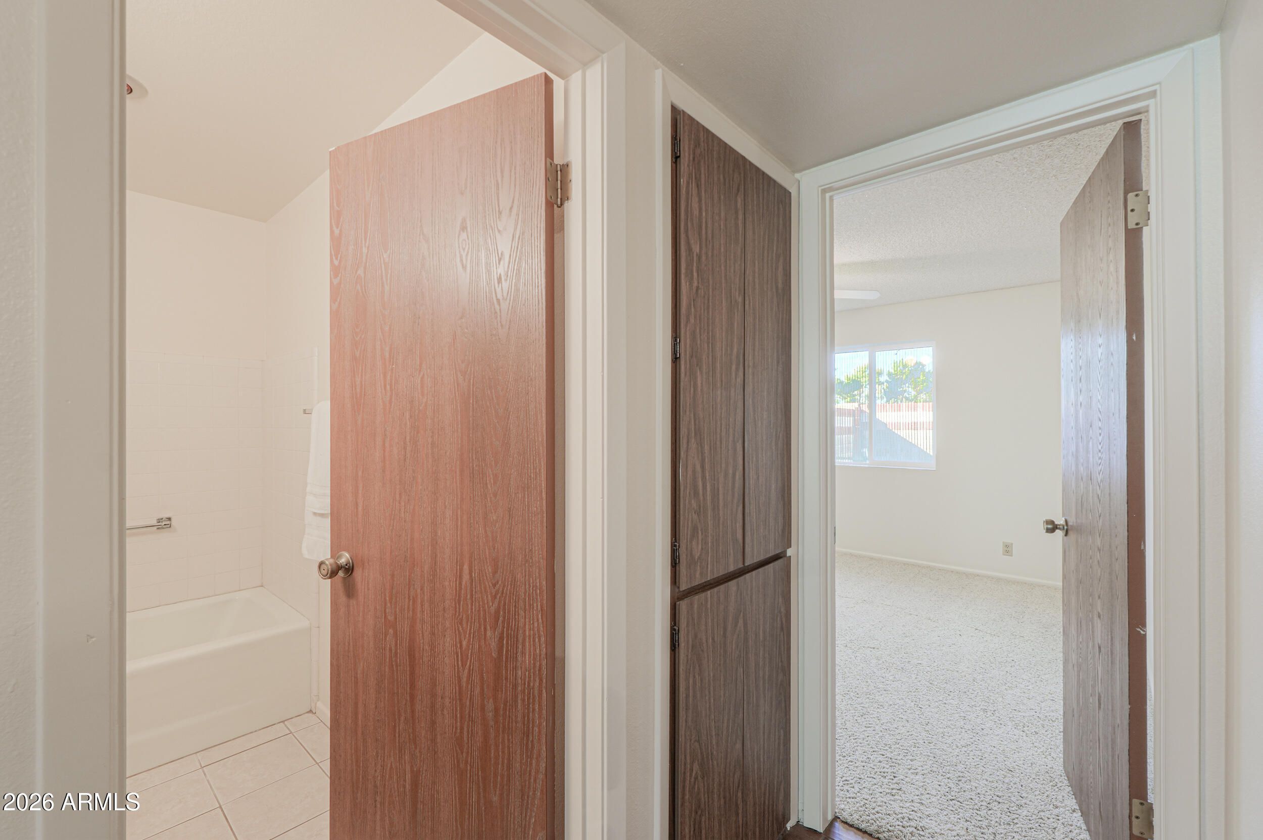 Welcome to this beautiful 2 bedroom, 2.5 bathroom home located in the desirable 55+ community of Sunland Village. Offering 1,620 square feet of comfortable living space. A brand-new roof was completed in 2024, along with exterior repainting, giving the home great curb appeal. Dual pane windows enhance energy efficiency, while the interior was freshly painted for a clean feel. The flooring has been redone with tile throughout the main living areas and plush carpet in both bedrooms. The enclosed Arizona Room includes added AC vents, and was redesigned to create an open, functional extension of the living space. Enjoy everything this home and community has to offer!