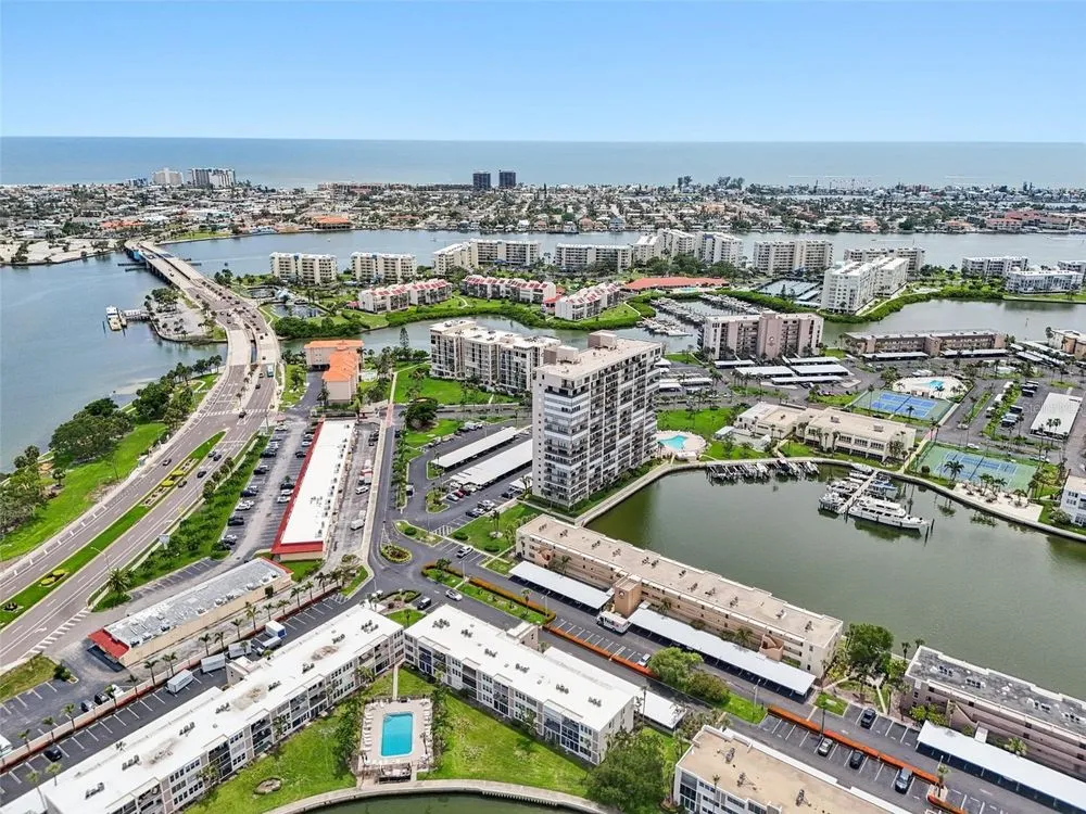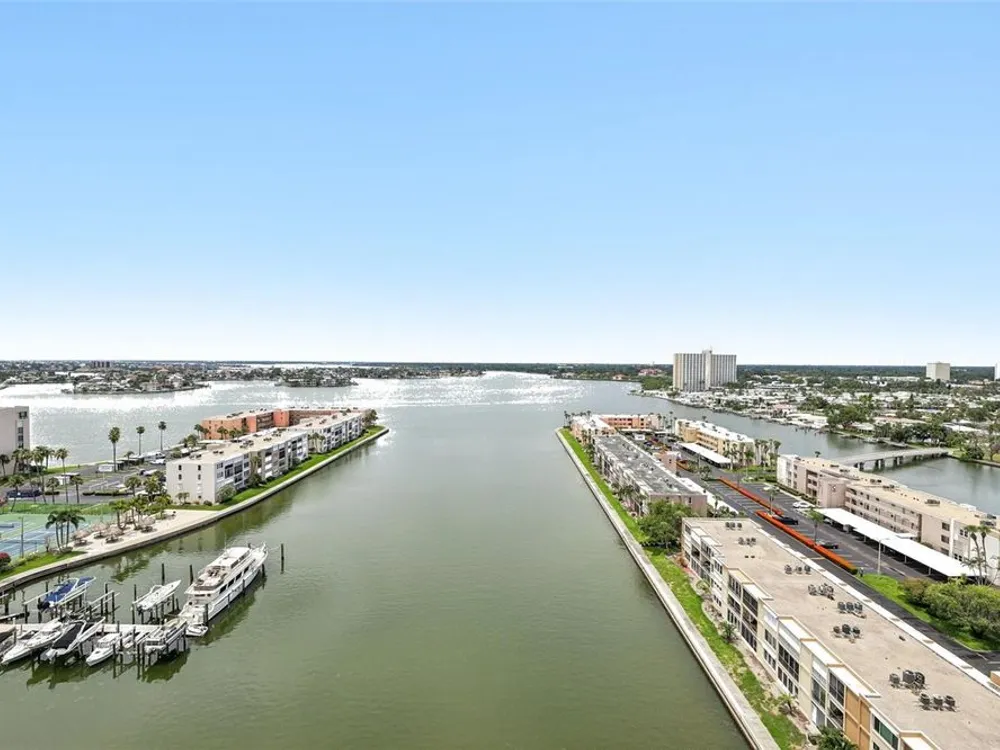 One or more photo(s) has been virtually staged. ***Price Improvement - Motivated Seller*** Live the Waterfront Resort Lifestyle at Bay Island. Welcome to maintenance-free living in the heart of paradise. This sleek and modern 1-bedroom, 1.5-bathroom condo on the 16th floor of the Admiral Building offers breathtaking panoramic views of the marina and Boca Ciega Bay. Enjoy the peace and privacy of sharing an elevator with just two other units in this exclusive 55+ gated community designed for comfort, security, and leisure. Step inside to an open-concept living space with stunning waterfront views and stylish finishes throughout. The kitchen is a chef’s delight, featuring granite countertops, stainless steel appliances, wine fridge, under-cabinet lighting, pot drawers, and a convenient pass-through to the dining area. Diagonal tile flooring adds elegance and ease of maintenance. The spacious primary suite offers direct balcony access, a walk-in closet, linen closet, and a luxurious ensuite bath complete with a separate shower and toilet area. The oversized glass-enclosed shower showcases designer tile in a brick pattern and a built-in niche. A stackable washer/dryer is conveniently tucked into the half-bath closet. Enjoy your morning coffee or evening wine from the private balcony, accessible from both the living room and bedroom, where you can soak in the serene, north-facing views over Boca Ciega Bay. Bay Island is a vibrant, amenity-rich waterfront community offering everything you need for an active and social lifestyle. Amenities include: six heated swimming pools & spas, tennis, pickleball, and shuffleboard courts, state-of-the-art fitness center, clubhouse with ballroom, billiards room, and library, 1.5-mile waterfront walking path & marina, 24-hour gated security & secured lobby with video surveillance, One covered parking space. Located just over a mile to the sandy shores of St. Pete Beach and Treasure Island, and only minutes to Downtown St. Petersburg, Tyrone Mall, and John’s Pass Village, this location combines the best of coastal living and urban convenience. Rapid transit stops just outside the community and both TPA and PIE airports are within 30 minutes. Pet-friendly, with the ability to rent the unit up to 3 times a year (30-day minimum), this condo is perfect as a primary residence, vacation getaway, or investment property. Here, you’re not just buying a home—you’re embracing a lifestyle of ease, elegance, and connection in one of the most desirable communities in St. Petersburg.