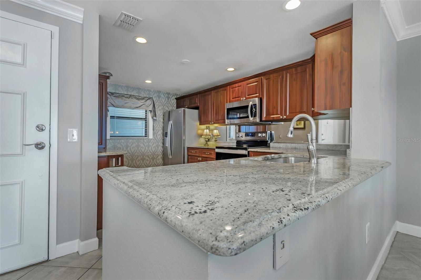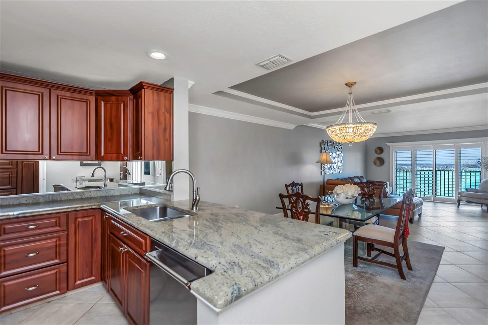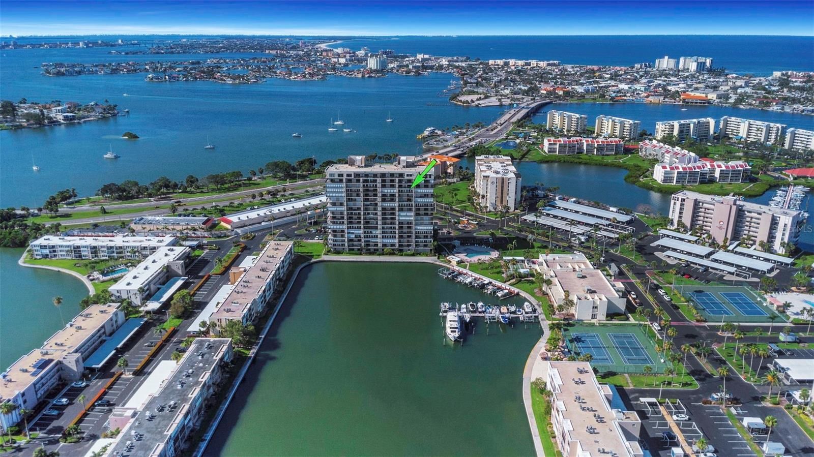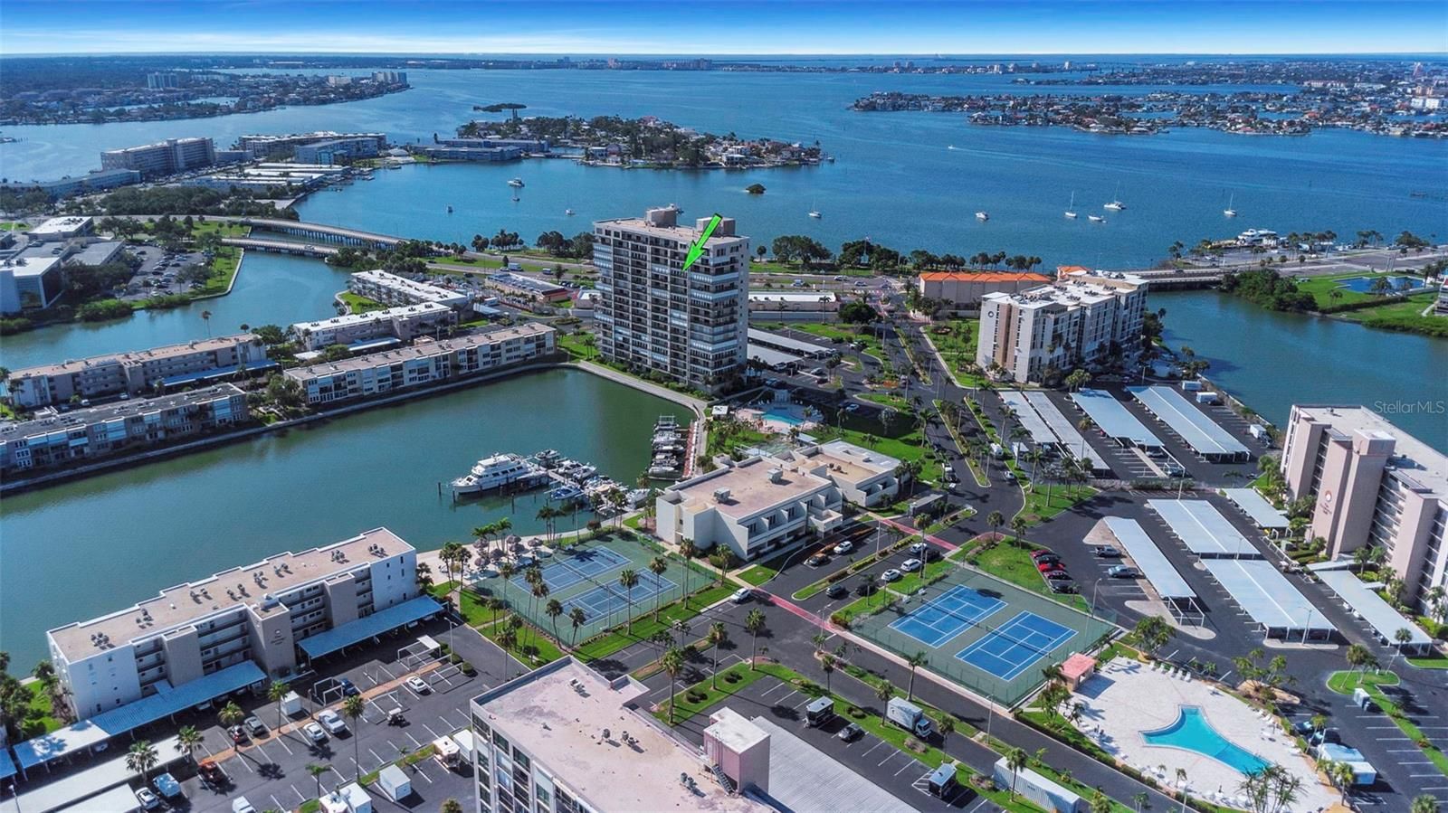 Welcome to your dream retreat in the coveted Admiral Building at Bay Island, a premier 55+ waterfront community offering the ultimate in coastal living. This beautifully updated 1-bedroom, 1.5-bath condo on the 15th floor boasts breathtaking panoramic views of Boca Ciega Bay. Step out onto your spacious private balcony and soak in the peaceful waterfront scenery—the perfect spot to start or end your day. The home is equipped with hurricane doors and shutters, along with a brand-new 2-ton Carrier condenser and matching 2-ton air handler, ensuring year-round peace of mind. The open-concept layout is filled with natural light and modern touches. The kitchen features granite countertops, wood cabinetry, a built-in wine rack, and stainless-steel appliances. Crown molding, elegant baseboards, and thoughtful finishes elevate every space. The oversized primary suite offers plenty of room to relax, complete with a walk-in closet, while the ensuite bath features a sitting vanity and a tiled shower with glass doors. A stackable washer and dryer are conveniently located in the renovated half bath, and there is generous storage throughout the unit. The Admiral Building provides additional conveniences, including storage closets on every level, extra first-floor storage units, a designated parking space, and ample guest parking. Bay Island is a gated community known for resort-style amenities, including six heated pools, two spas, a marina, a fishing dock, a 1.5-mile waterfront walking path, four tennis courts, pickleball, shuffleboard, his-and-hers gyms, and a tiki area with gas grills overlooking the bay. Enjoy the multimillion-dollar clubhouse, complete with a banquet hall, library, table tennis, billiards and card rooms, and a full calendar of social events coordinated by an on-site director. Small pets are welcome, with designated dog-walking areas perfect for sunny strolls. The HOA fee covers 24-hour guard security, cable, internet, water, sewer, and trash. Ideally located just minutes from pristine Gulf beaches, world-class dining, premier shopping, vibrant downtown St. Petersburg, and top-tier healthcare, this community offers both convenience and luxury at every turn. Schedule your private showing today—coastal luxury awaits!