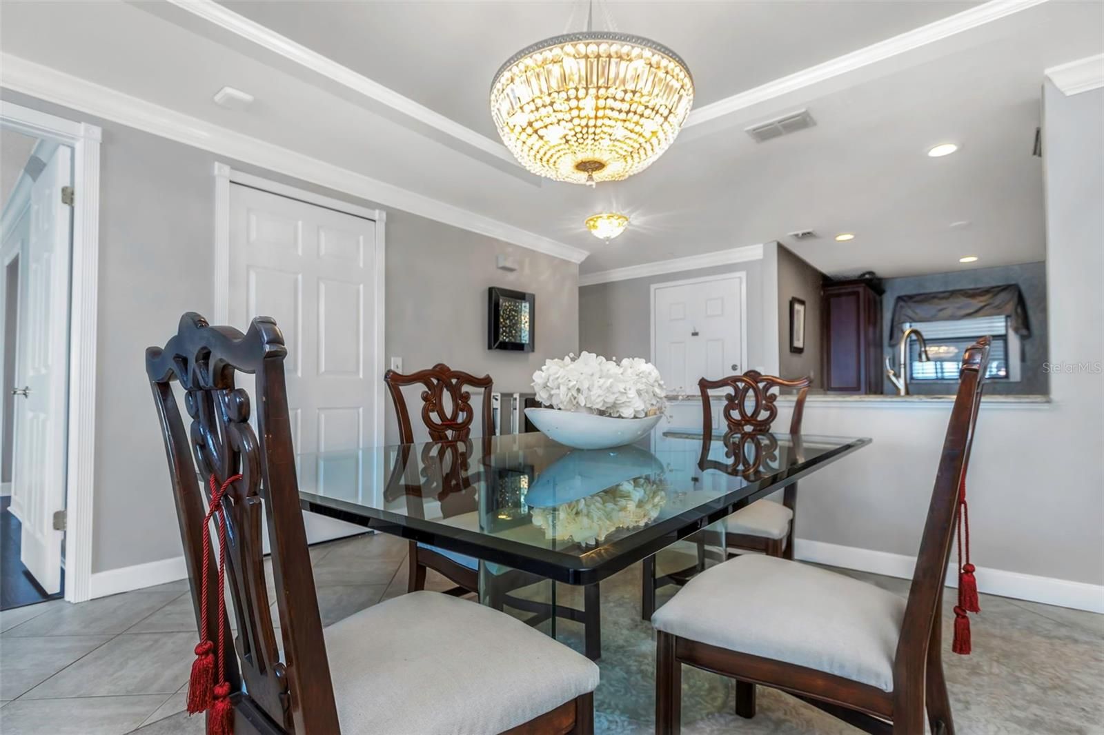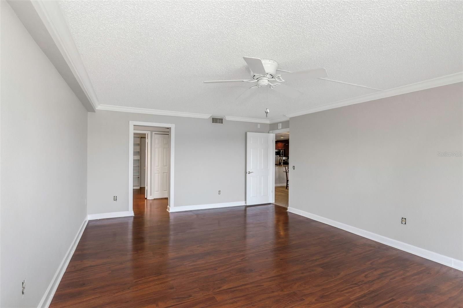 - Ceiling Fan(s), Crown Molding, Living/Dining Room, Open Floorplan, Solid-Wood Cabinets, Stone Counters, Thermostat, Walk-In Closet(s)
