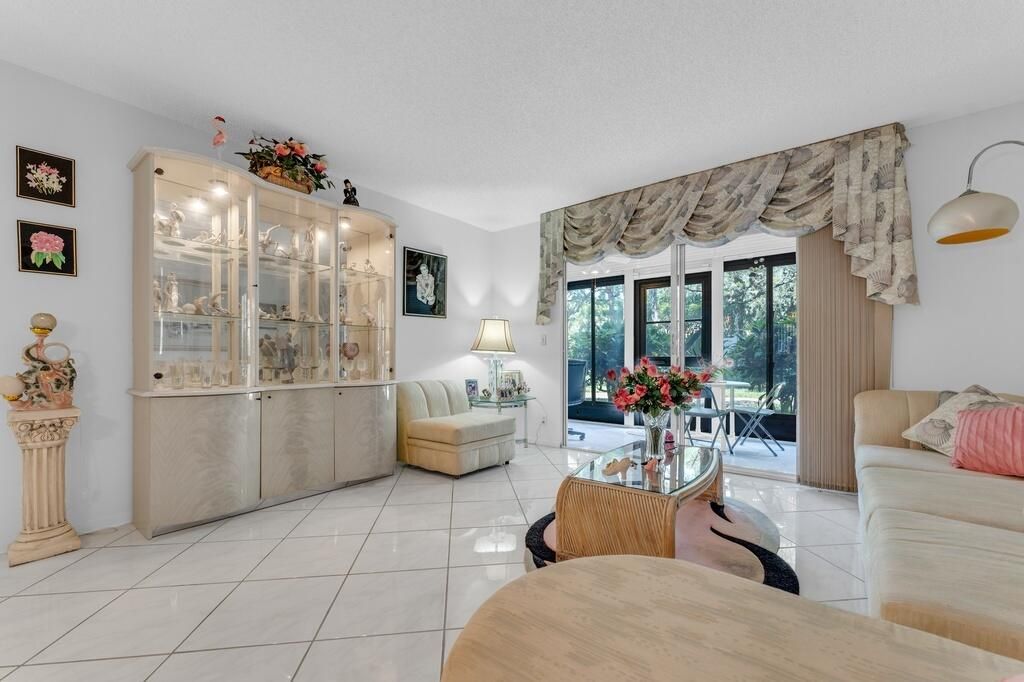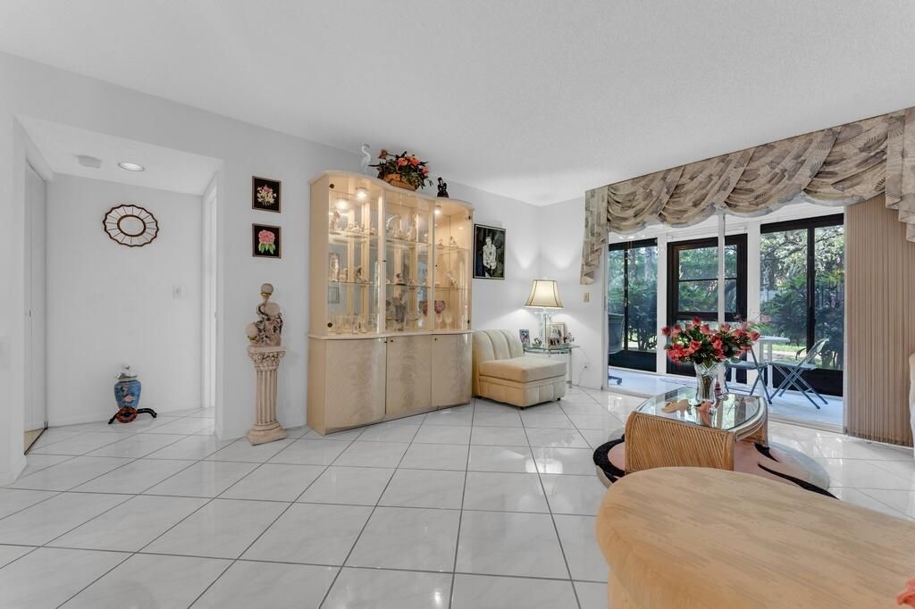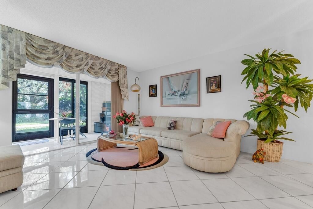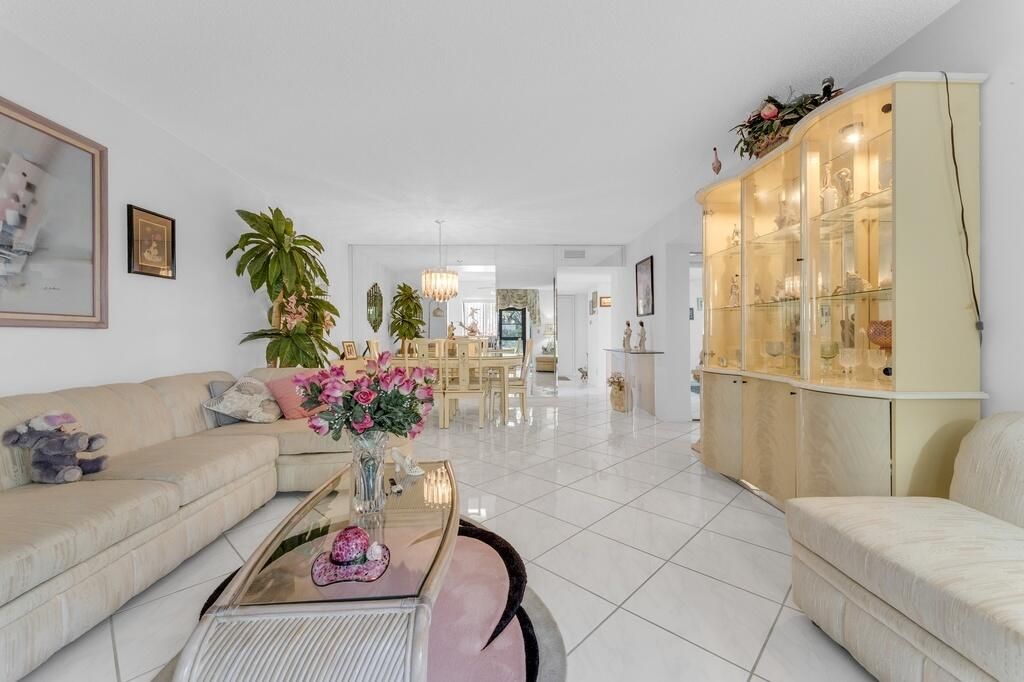 Welcome to this lovely 1st floor corner condo. Beautiful shrubery walking up to the door. Parking right in front of the unit, Enter into this bright, gorgeous condo. Updated kitchen. Diagonal tile flooring throughout. Large living-dining area. Direct access to the long enclosed lanai. Main bedroom has an extra window to bring in more sunlight. Conviently located to the section pool and the clubhouse. Don't miss out on the Magnificent renovated clubhouse and sports facilities. Very active lifestyle!!! 610 seat theater, 350 seat banquet room, 2 card rooms, billiard room, aerobic and weight rooms, indoor pool, 9 pickleball, 4 Har tru tennis courts, 3 paddle tennis courts, and clubs galore.