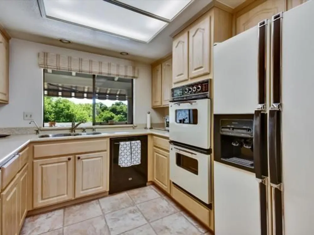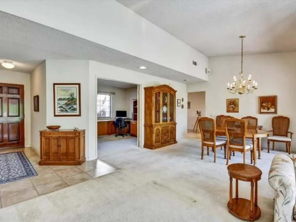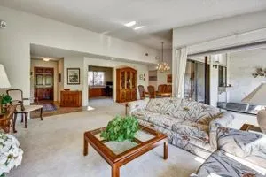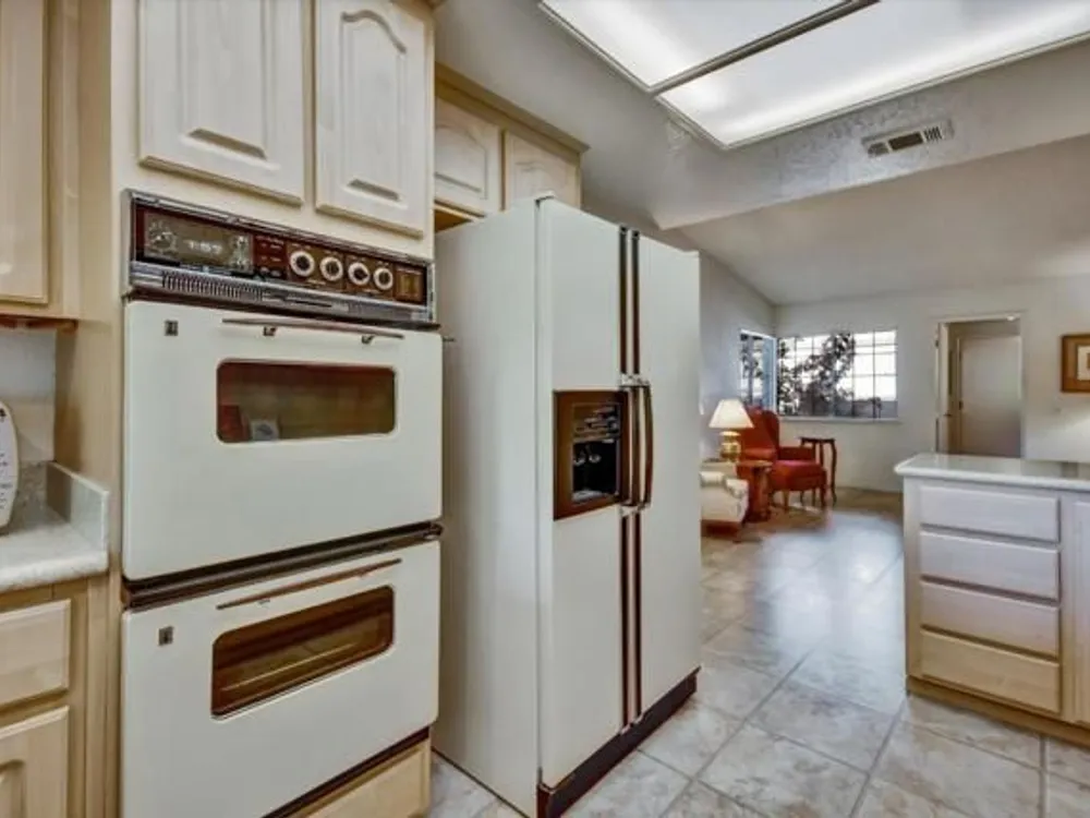 Awesome price! Welcome to your new home in the vibrant Villages Country Club, where you will wake up each day in a beautiful resort atmosphere. The peace and tranquility of this haven of rolling hills and manicured landscape will thrill you every day. Enjoy the active lifestyle of this community with golf, tennis, swimming, equestrian center and much more. Tour the community and this home to examine for yourself the beauty and lifestyle offered at this Country Club. This spacious residence offers 1,781 square feet of comfortable living space with 3 bedrooms or office/den & 2 full bathrooms. The kitchen is a culinary delight, featuring an electric cooktop, double ovens, and a skylight that bathes the area in natural light. The home boasts a variety of amenities, including vaulted ceilings and a cozy fireplace, perfect for creating a warm ambiance. The large deck awaits with lovely garden views. The excellent floorplan and wonderful natural light will entice you. Laundry is conveniently located in the utility room, equipped with both a washer and dryer. For dining, you have options aplenty with a formal dining room and space for dining in the family room for casual meals. The awesome price allows you to personalize it with your new flooring and paint colors. Make this your own!
