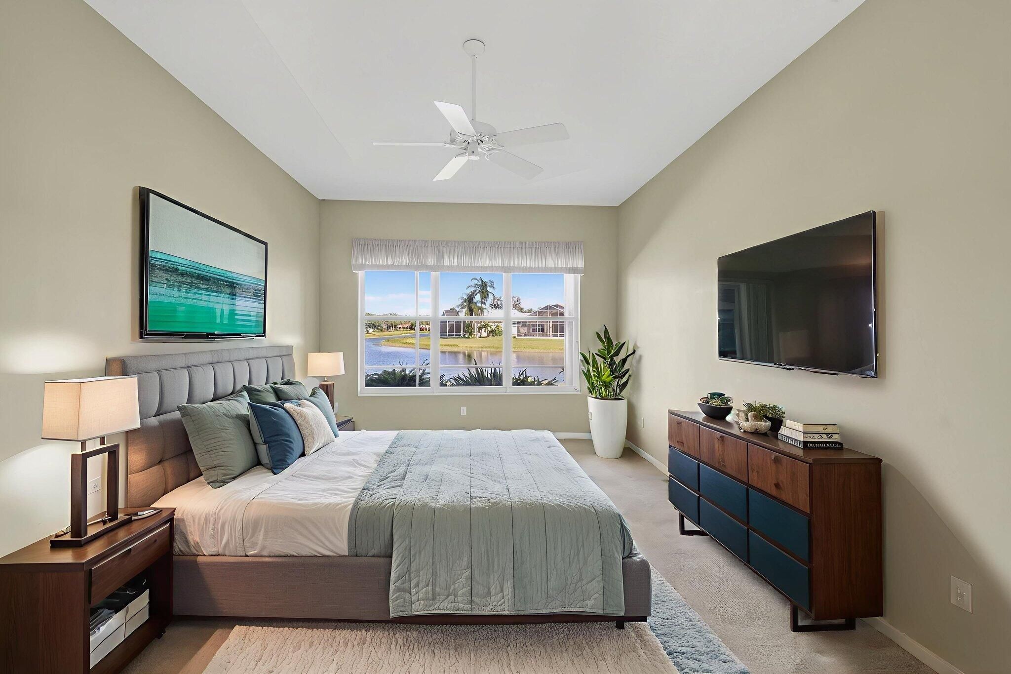 NEW ROOF 2022!! LOVELY MEDITERRANEAN MODEL WITH SPECTACULAR LAKEVIEWS. ENTER THIS LOVELY HOME WITH NEUTRAL TILES IN MAIN LIVING AREAS. NEWER AC IN 2024. ACCORDION SHUTTERS. ENCLOSED COVERED LANAI FACING NORTH FOR ENJOYING THE LAKEVIEWS ANYTIME OF THE DAY!! SPACIOUS PRIMARY BEDROOM OVERLOOKS THE LAKE TOO AND HAS A BEAUTIFUL ENSUITE BATH WITH DOUBLE SINKS AND 2 WALK IN CLOSETS!! SPLIT BEDROOM FLOOR PLAN WITH GUEST BEDROOMS ON THE OTHER SIDE OF THE HOME FOR PRIVACY. LARGE KITCHEN WITH TONS OF CABINET SPACE & AN ISLAND FOR A BREAKFAST BAR & CASUAL DINING NOOK AREA. KITCHEN IS OPEN TO THE FAMILY ROOM ALSO WITH GREAT LAKE VIEWS. THIRD BEDROOM IS USED AS AN OFFICE DEN. COME SEE THE FABULOUS NEWLY RENOVATED CLUBHOUSE . 55+ COMMUNITY. ALL MEASUREMENTS DEEMED ACCURATE AND SHOULD BE VERIFIED.