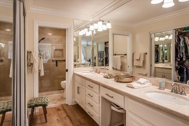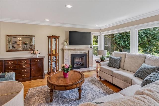Perfection!! End unit in The Villages! Beautifully updated throughout, including new wide-plank flooring, custom electric solar shades, shutters and blinds, recessed lighting, custom paint, elegant crown molding, granite countertops, new appliances, closet organizers, ceiling fans, garage floor and cabinets and electric fireplace. The primary suite boasts a tiled walk-in shower, dual sinks, walk-in closet. Open-concept layout with the kitchen flowing seamlessly into the family room, dual-pane windows and doors flooding the space with natural light. 3rd bedroom opens to living room is great office space. View decks and the gated entry courtyard is perfect for entertaining or simply enjoying the California sunshine. This ground-level condo includes an attached garage and an assigned covered carport for ultimate convenience.The Villages isn't just a place to live, its a lifestyle. Residents access world-class amenities, including golf, tennis, swimming, bocce, a fully equipped gym, hiking trails, on-site restaurants, a post office, and a plethora of group activities and functions. Designed exclusively for the 55+ lifestyle, this serene oasis is nestled in the picturesque foothills of Evergreen Valley, offering a vibrant blend of outdoor activities and a warm, welcoming community.