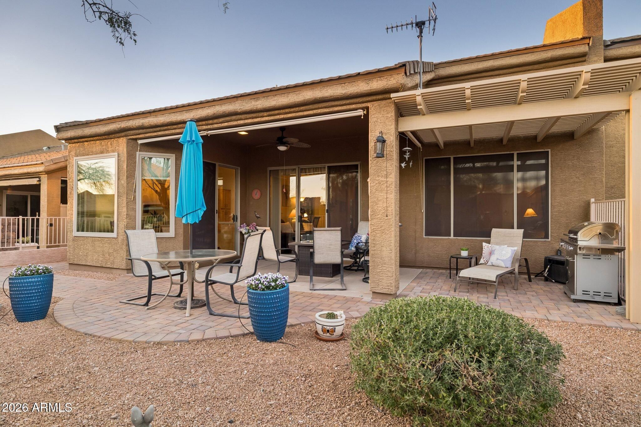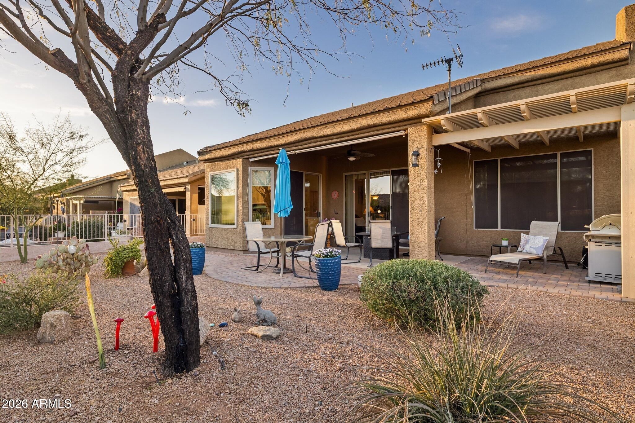 Move-in ready, furnished, and beautifully updated -- this exceptional Arizona retreat is located in the highly sought-after Mountainbrook Village, a premier 55+ active adult community ideal for those seeking low-maintenance living with breathtaking mountain views and unforgettable desert sunsets. And the golf cart is included -- complete with a new battery! Inside, you'll find an updated kitchen featuring quartz countertops, refreshed cabinetry with pull-out shelves, and new appliances. The kitchen flows effortlessly into the breakfast nook and opens to serene views of the natural desert wash, creating a light and inviting everyday living space. For easy conversation and entertaining, the open pass-through from the kitchen to the living area enhances connectivity, while the spacious dining area integrates seamlessly with the main living space. The primary living areas have been upgraded with beautiful luxury vinyl plank flooring, offering both style and durability. Updated tile flooring in the bathrooms and newer carpet in the bedrooms complete the cohesive, refreshed look throughout the home. Step outside to your private outdoor oasis -- perfect for entertaining or relaxing -- featuring extended patio pavers that wrap to the front of the home for easy front and back access. Relax under your newer pergola, providing shade and comfort year-round. The fenced backyard is ideal for pet owners and creates a buffer between the natural wash and your private retreat. This inviting setting is perfect for enjoying Arizona evenings in every season. The spacious primary suite offers a peaceful retreat with an en-suite bath showcasing a fully renovated walk-in shower and a generous walk-in closet. A second bedroom and bath provide flexibility for guests, a home office, or hobby space. Additional upgrades include a newer roof; new Andersen Windows and American Vision Windows; a newer water heater, circulation pump, and water softener. Exterior painting is planned for May 2026, adding even more value and peace of mind. Even better, this home is offered furnished with tasteful, quality furniture-- so you can move right in and immediately begin enjoying the Arizona lifestyle. A home warranty through Choice Home Warranty is in place through February 2028 for added confidence. All that's left to do is unpack and experience everything Mountainbrook Village has to offer.