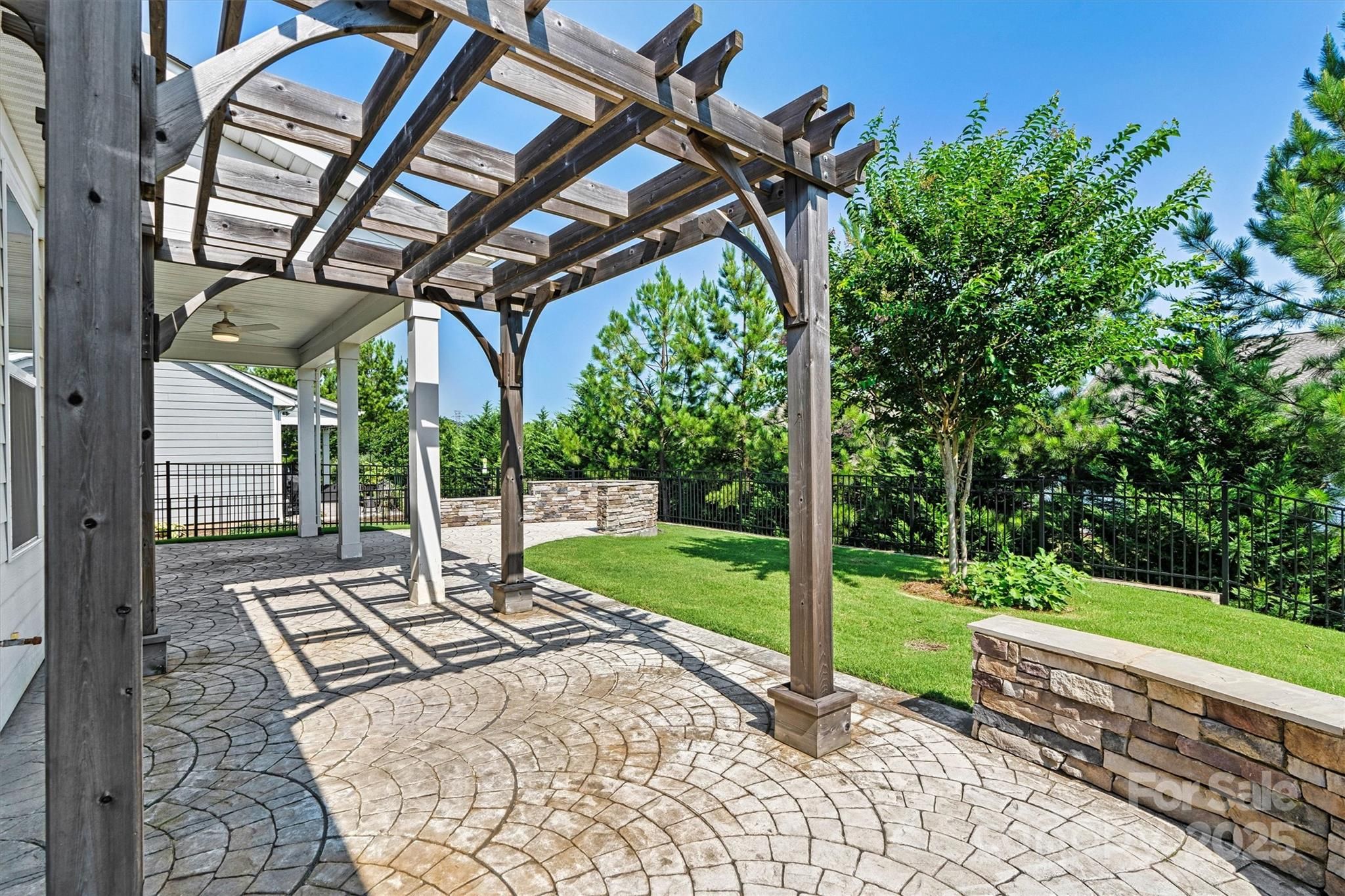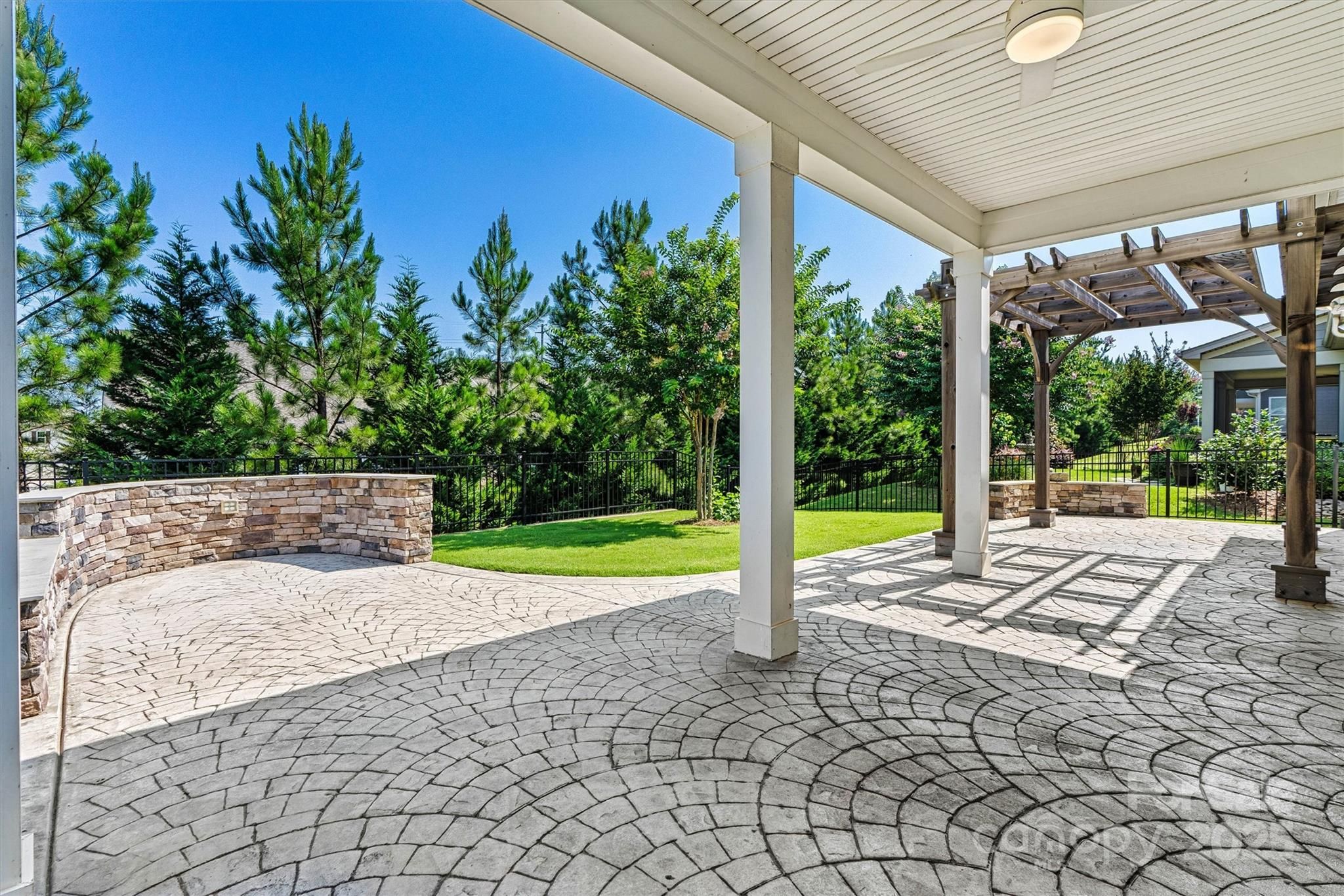 Discover effortless living in this 3-bed, 2-bath Cypress RANCH in Cresswind Charlotte’s vibrant 55+ community. Spanning nearly 2,000 sq ft, this home has a chef’s kitchen with white cabinetry, granite counters, gas cooktop, instant hot water dispenser, and full SS appliance package that conveys. The extended living area centers around a striking floor-to-ceiling electric FP with mounted TV. Retreat to the spacious Primary Suite featuring dual closets w/ custom shelving, spa-like bath with double vanities, tiled walk-in shower, and heated bidet for added luxury. Enjoy the convenience of a whole house water filter system. Step outside to a covered rear porch with fan, custom pergola, stamped concrete patio, & gas stub for grilling or firepit enjoyment. The oversized garage with epoxy flooring and extra lighting is perfect for a workshop or hobby space. Set on a quiet, private cul-de-sac, this beautifully maintained home offers comfort, style, and charm in a thriving, welcoming community!
