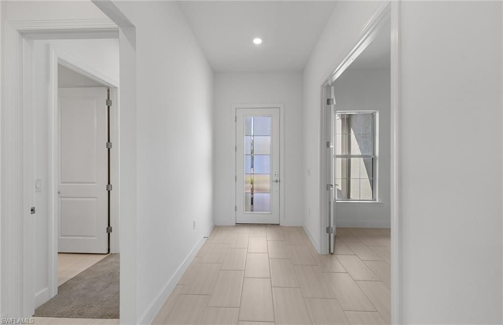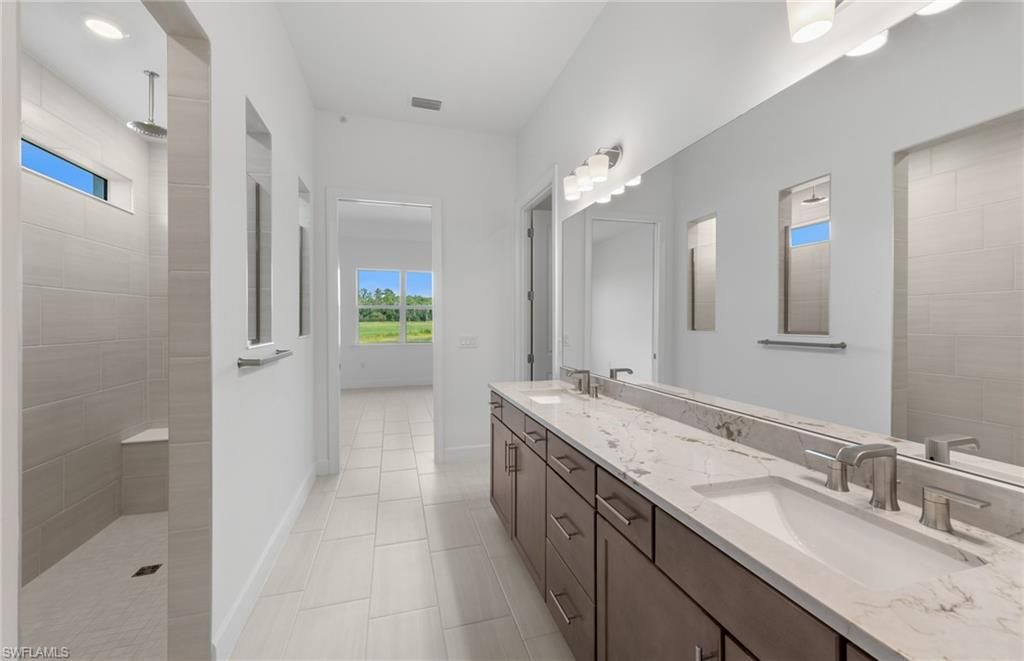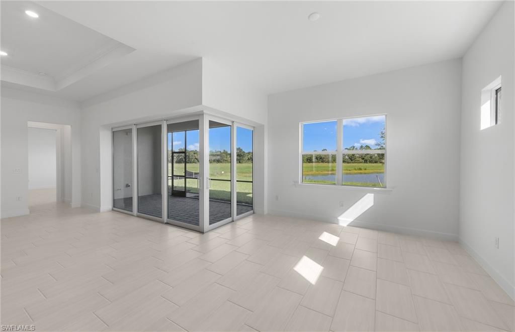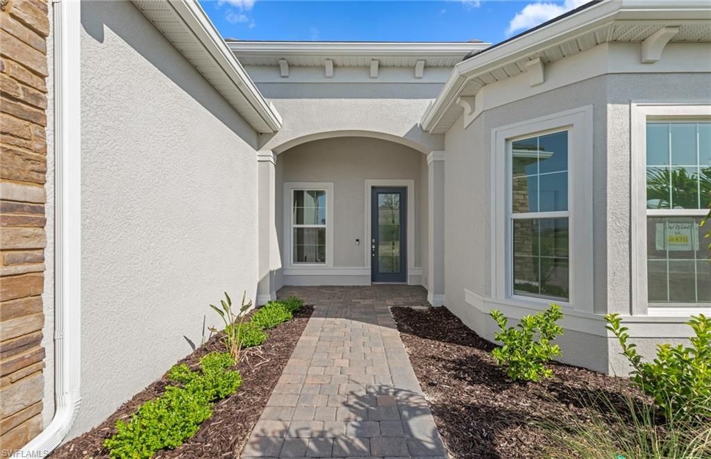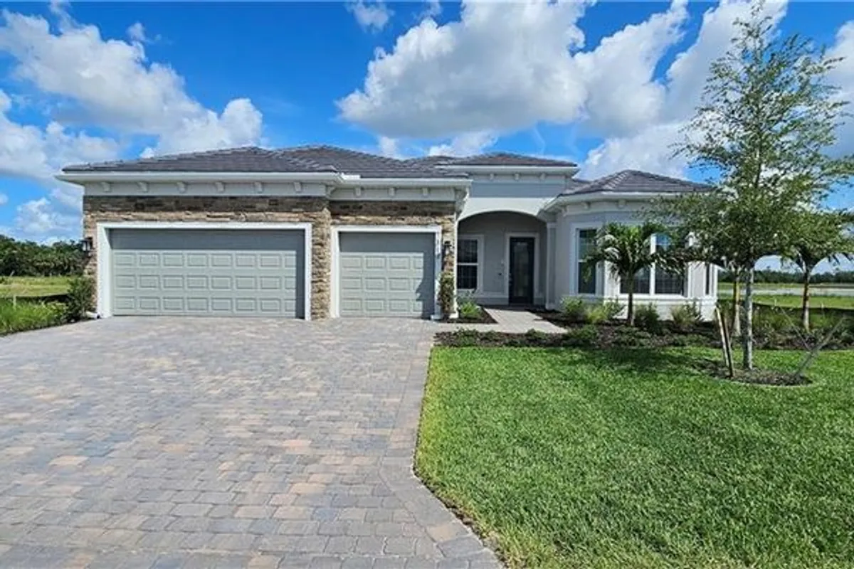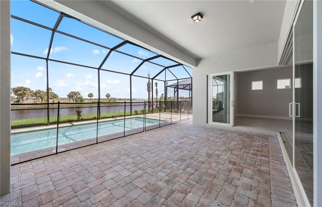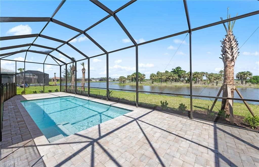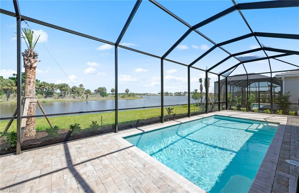 Move to Del Webb Oak Creek! Brand new Stellar home with POOL INCLUDED! Features include 3 bedrooms, 3 baths, Den, and 2 car garage + golf cart garage. Stainless steel built-in appliances, 42" white wood cabinets except for the kitchen island is burlap color cabinets, custom backsplash, and quartz countertops throughout. Impact glass! Owner's bath upgraded with enlarged walk-in shower, upgraded walk-in shower at secondary bath, and third bath with tub/shower combo. Tray ceiling at gathering room. 4' garage extension & epoxy finish flooring, Tile flooring throughout except for carpet in the secondary bedroom, Enjoy indoor-outdoor living with the zero-corner sliding glass door to the screened-in covered lanai with pool & water view. This Stellar home is complete and the screened-in pool is underway! Oak Creek is Del Webb’s newest 55+ community, situated in North Fort Myers. Homeowners will benefit from it being a natural gas, gated community with vacation-inspired amenities such as a resort style pools and spa, clubs and activities, a restaurant and covered Tiki, and a fulltime lifestyle director. Just beyond the gates homeowners can find shopping and dining, explore Fort Myers River District, relax on the Gulf Coast beaches, and experience new recreational activities while still being only minutes from everyday conveniences. Pickleball, Bocce ball, amenity center, and the resort style pool are now open! The Oak House grill & bar will be opening soon.