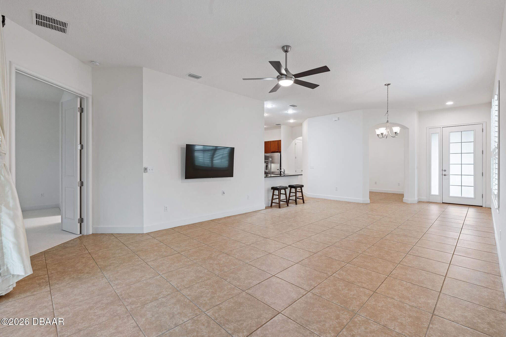 Experience low-maintenance luxury living in this beautifully maintained 2-bedroom + flex room, 2-bath townhome located in the prestigious, gated community of Plantation Bay in Ormond Beach Built in 2017, this 1,510 sq ft single-story residence offers an open and efficient floor plan designed for today's lifestyle. The spacious great room seamlessly connects the living and dining areas, creating an inviting space for both everyday living and entertaining. The well-appointed kitchen features granite countertops, 42'' solid wood cabinetry, stainless steel appliances, a walk-in pantry, and breakfast bar, making it both stylish and functional. The primary suite serves as a private retreat with dual custom closets and an en-suite bath complete with double vanities, a large walk-in shower, and additional storage. A versatile den/office/flex room offers the perfect space for working from home, hobbies, or guest overflow. Step outside to your screen-enclosed covered patio and enjoy tranquil water and fountain views, providing the perfect backdrop for relaxing Florida evenings. Additional highlights include: 2-car attached garage Ceramic tile in main living areas New interior paint (2023) Plantation shutters and upgraded window treatments End-unit privacy with abundant natural light Residents enjoy a maintenance-free lifestyle, with HOA services covering lawn care, exterior maintenance, pest control, and more--freeing up time to enjoy everything the community has to offer. Buyers of this property will enjoy a substantial discount on the club initiation fees, when they join within 30 days of closing!
