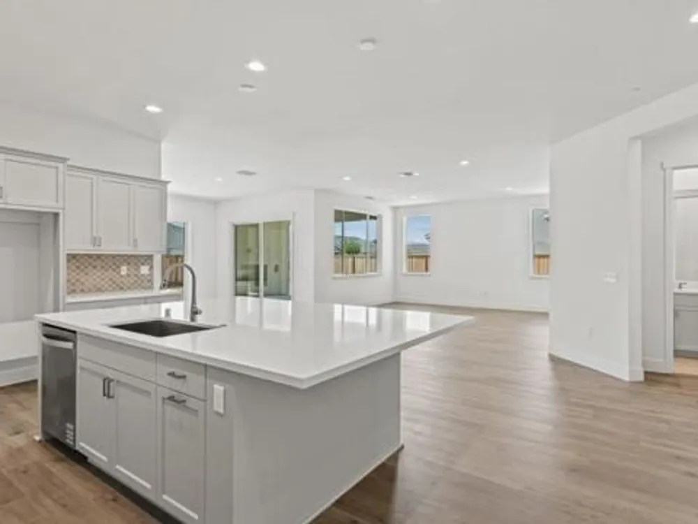 Welcome home to The Collective—where active living meets the spirit of community. The Collective is a vibrant, active adult community for those aged 55+, offering modern, low-maintenance living with ample opportunities to stay connected and engaged. This unique community features single-story homes in three neighborhoods: Dawn, Vida, and Origin, each designed to suit diverse lifestyles. Designer options completed with Shaker Gray cabinets and Satin Nickel hardware pulls, Upgraded Quartz Kitchen counter tops with a full backsplash. Laminate, tile and carpet flooring. Large Den. 3-Car Garage (Side-by-Side). Gas Fireplace at California Room. All our collections have ready to move in homes with Designer Options Selections, you must see!