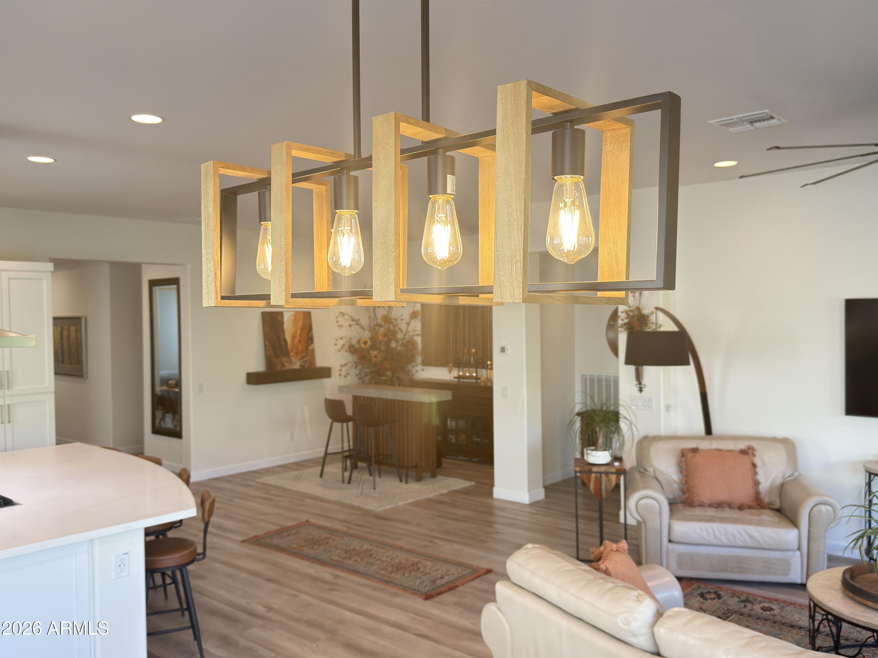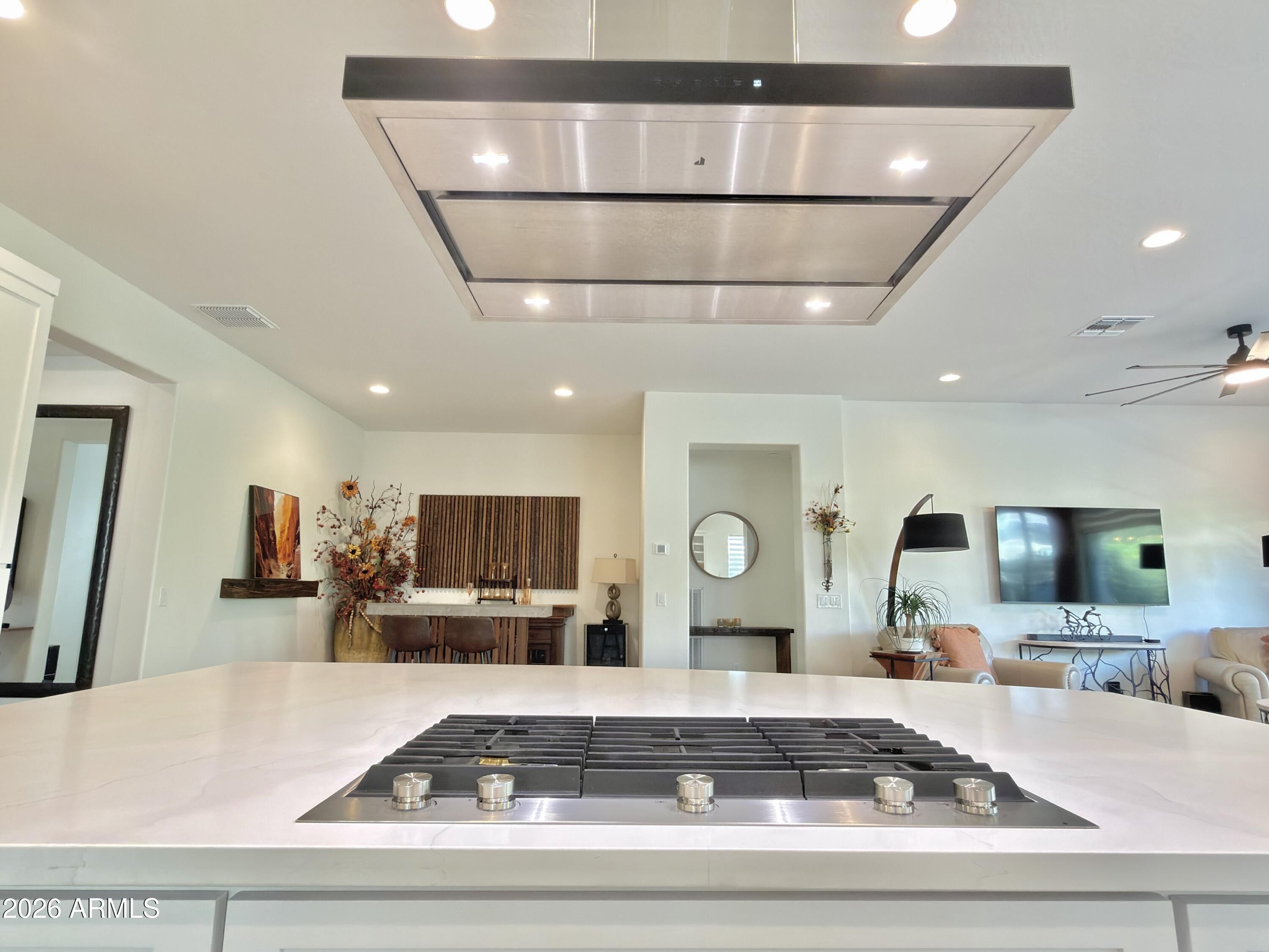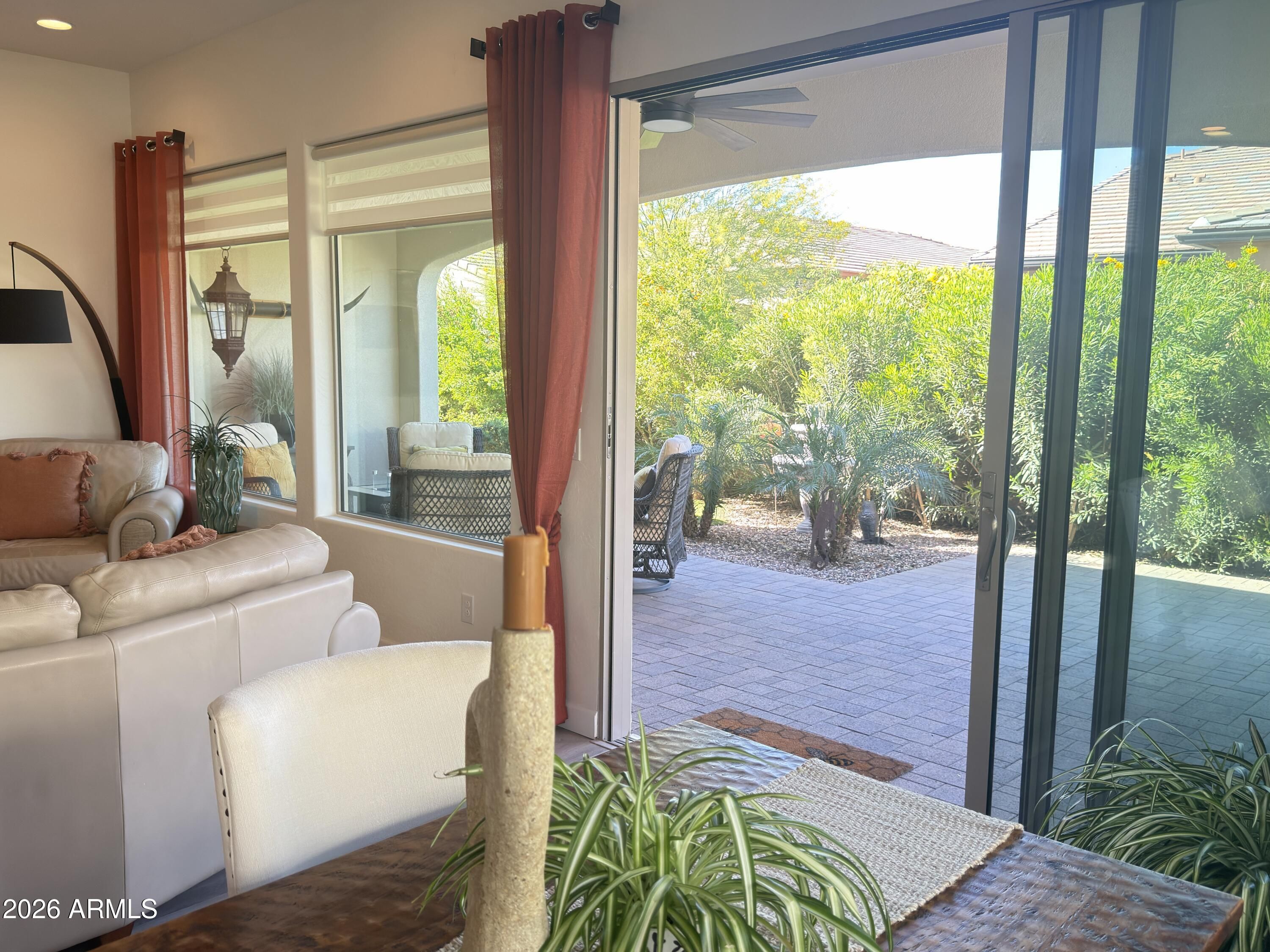 Professional Photos Pending. Welcome to Encanterra Golf & Country Club where serene golf course and lake views guide you to this like-new, move-in ready, 2023 built, THREE CAR GARAGE, open-concept Chroma floor plan (2BD, 2BA + Den/Office). Showcasing desirable light & bright finishes, this perfectly located residence features upgrades throughout with a lush green backyard. Gourmet kitchen has JennAir appliances, built-In refrigerator, gas cooktop, quartz counters, & designer backsplash. Luxury plank flooring flows seamlessly throughout. Through a 3-section sliding door of glass, step outside to your meticulously designed natural backyard getaway. The primary suite is spacious, featuring an oversized walk-in closet, dual sinks, shower with tile to the ceiling. Continued... The split floor plan includes an open den and a large guest bedroom, upgraded hall bath, entertaining flex area. Additional highlights include upgraded window treatments, decorator lighting, a water softener and reverse osmosis system. This home is perfectly located within the community just steps from the Algarve Clubhouse where you can enjoy swimming, dining, live music, dancing, the list is endless. The community is well-known for the award-winning, private Tom Lehman designed Golf Course. It has every amenity imaginable: pickleball, tennis, bocce, state of the art health & fitness center, Alvea Spa, just to name a few. The list of community activities is never-ending: concerts, classes, social clubs, car shows, events and much more. Eateries include: La Palma (the signature restaurant, in a beautiful atmosphere with panoramic views), Bodega Wine and Café (for small plates and wine tasting), and the Solaz and Algarve pool Grills. There are four pools to enjoy. The Solaz pool sits adjacent to the golf course with stunning views. The Algarve, the adult-only pool, is perfect for a little added relaxation. Join the Fun and the Good Life at Encanterra!