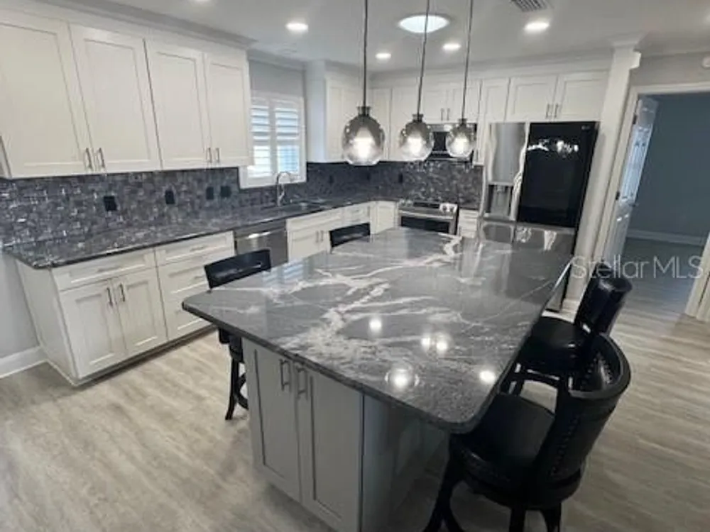 BACK ON MARKET AT NO FAULT OF SELLERS!! This charming CBS home is the perfect place to call home. Not only is there NO BOND but the location is unbeatable. Located within a few minutes of both Spanish Springs & Sumter Landings squares. This home is fully updated with renovation in 2019/2020. The kitchen is a dream come true. It was redesigned with new high-end stain-less steel appliances, custom cabinets and massive granite island. It creates an open concept to the living and dining rooms ideal for hosting gatherings. Nothing was spared from the 5-inch baseboard to the knockdown finished ceiling and crown molding throughout. Yes, even the closets. The home has Luxury Vinyl flooring throughout. The primary and guest bedrooms give generous space to allow for king beds and provide you with walk in closets with custom built closet systems that match the laundry room and hallway linen closet (2019). Each bathroom has beautiful free-standing vanities with marble tops and frameless shower glass enclosures. The windows were updated with Plantation shutters in (2022) The windowsills throughout the house are granite which matches the kitchen granite. This home also features a solar tube in the kitchen and when that’s not bright enough the lighting was updated with beautiful can less LED fixtures. Additional updates include a new garage door motor 2021, the brand-new hard landscaping in 2024. The whole exterior was freshly painted, all walkways and garage were refinished with a new floor coating and a new water heater 6/25. Roof is 2015 and AC 2011. Move into a home where you don’t have to update anything. All info deemed accurate but should be verified by buyer and buyers agent.
