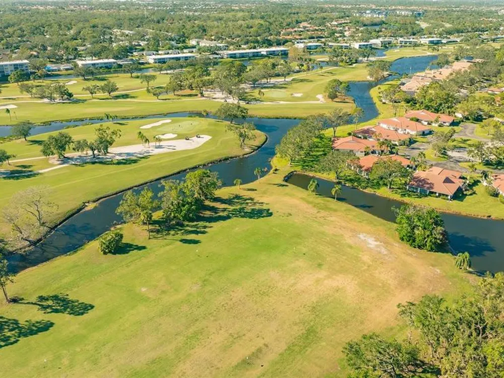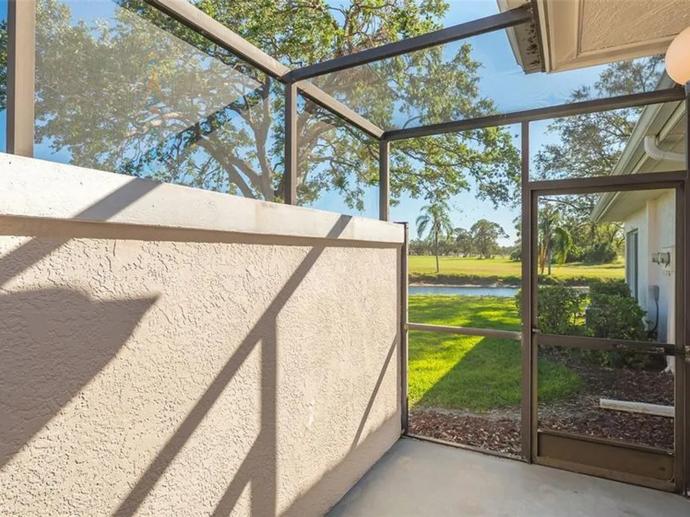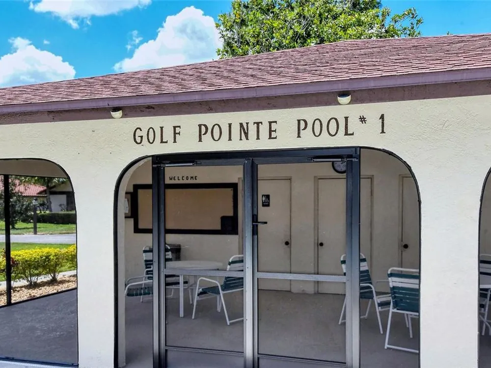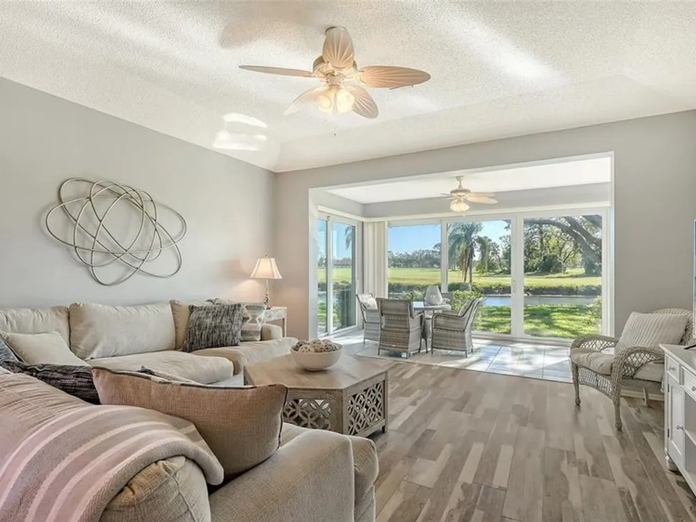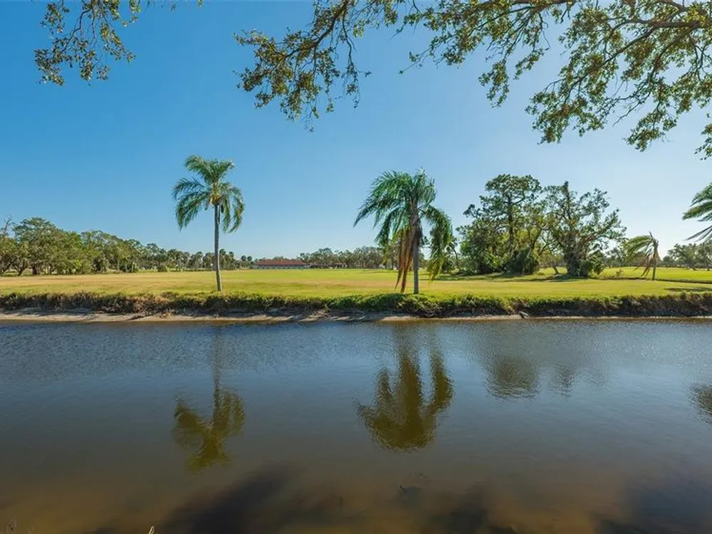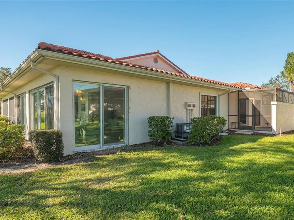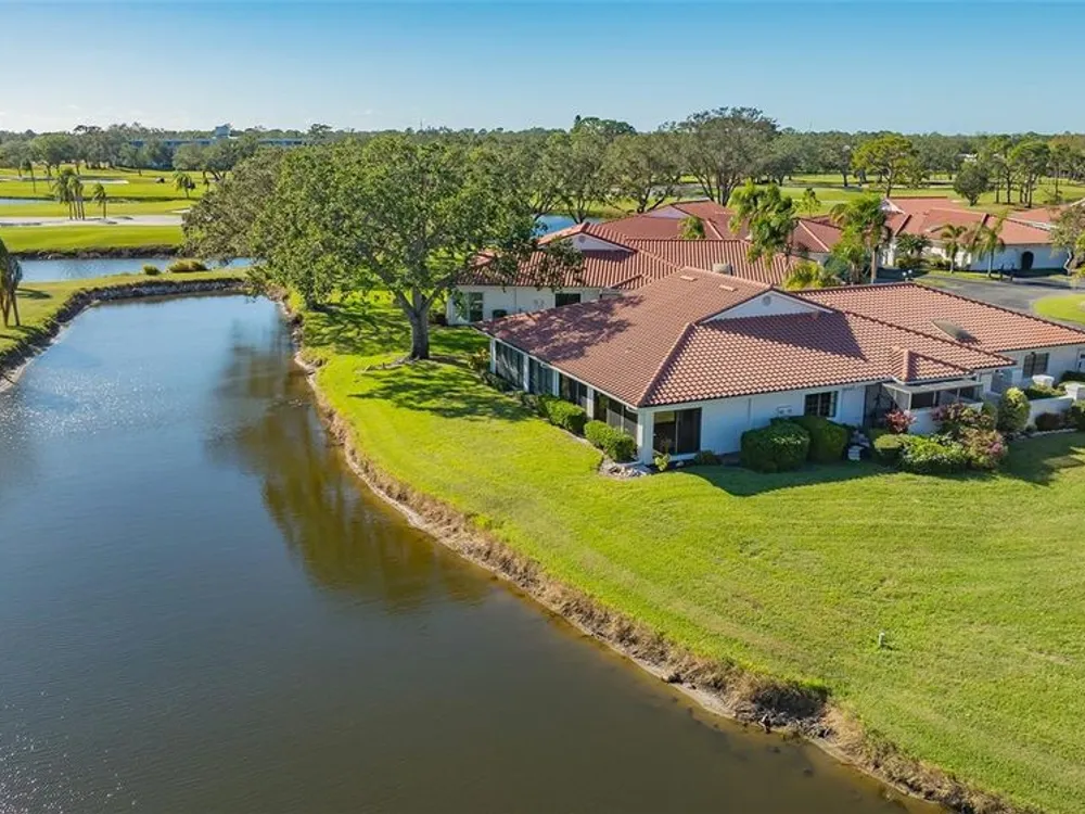 Highly sought-after Golf Pointe Circle Villa in the Palm Aire Country Club. This 3 Bedroom and 2 Bath Villa is being Sold Turnkey Furnished, minus some items (see inventory sheets). Beachy Coastal Decor gives you the feeling of living on the Beach, but even better, you're right on the Palm Aire Golf Course. With over 1,800 sq ft of living space this split floor plan has a Living Room/Dining Room combination, great for entertaining or just a comfortable and enjoyable relaxed environment. Or you might be spending all your time in the air-conditioned Florida Room, where Hurricane Impact Resistant Sliding Glass Doors were added earlier this year giving you sweeping landscapes of the club's practice range, golf course and water views. Starting with your first cup of coffee in the morning to your last evening cocktail enjoying the stunning sunsets. Kitchen has a nice eat-in area with sliding glass doors out to your private screened -in porch, perfect for your BBQ grilling. Primary Bedroom has sliding glass doors out to the Florida Room. The Primary Bath has a large walk-in closet with 2 entrances. Dual sinks, garden tub and separate shower stall. Second and Third Bedrooms are located towards the front of the home and share the second Bathroom, which is next to the closet laundry. All three Bedrooms have newer carpeting. The 2-car garage has plenty of room for your car and your golf cart with storage above if needed. Golf Pointe Community has a clubhouse and 2 heated pools for your enjoyment. Palm Aire Country Club has 2 Championship Golf Courses, Clubhouse, Fitness Center, Olympic Sized Heated Swimming Pool,12 Tennis and 8 Pickleball Courts. Golf, Sport and Fitness and Social/Dining memberships are offered but membership is not mandatory. Convenient location close to the UTC Mall, Benderson Rowing Venue, Sarasota Airport and the local beaches.