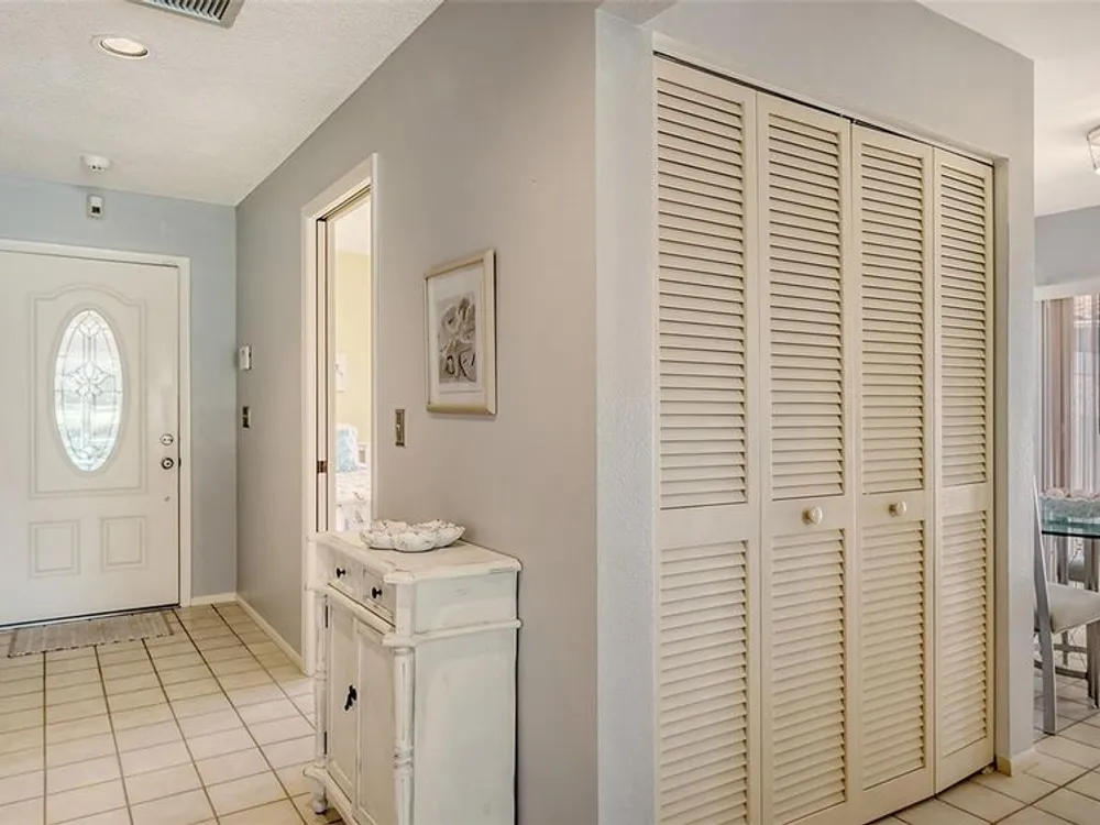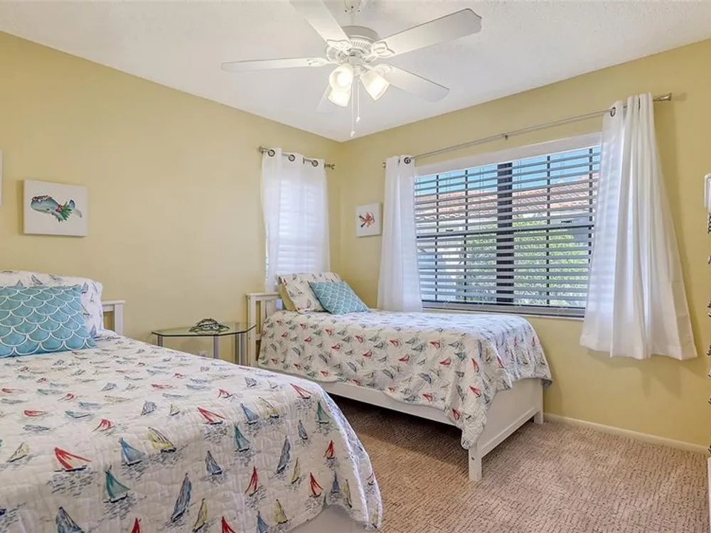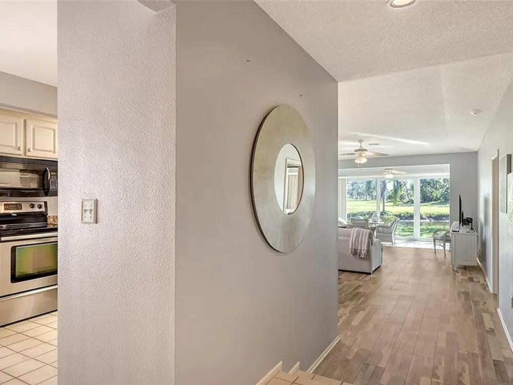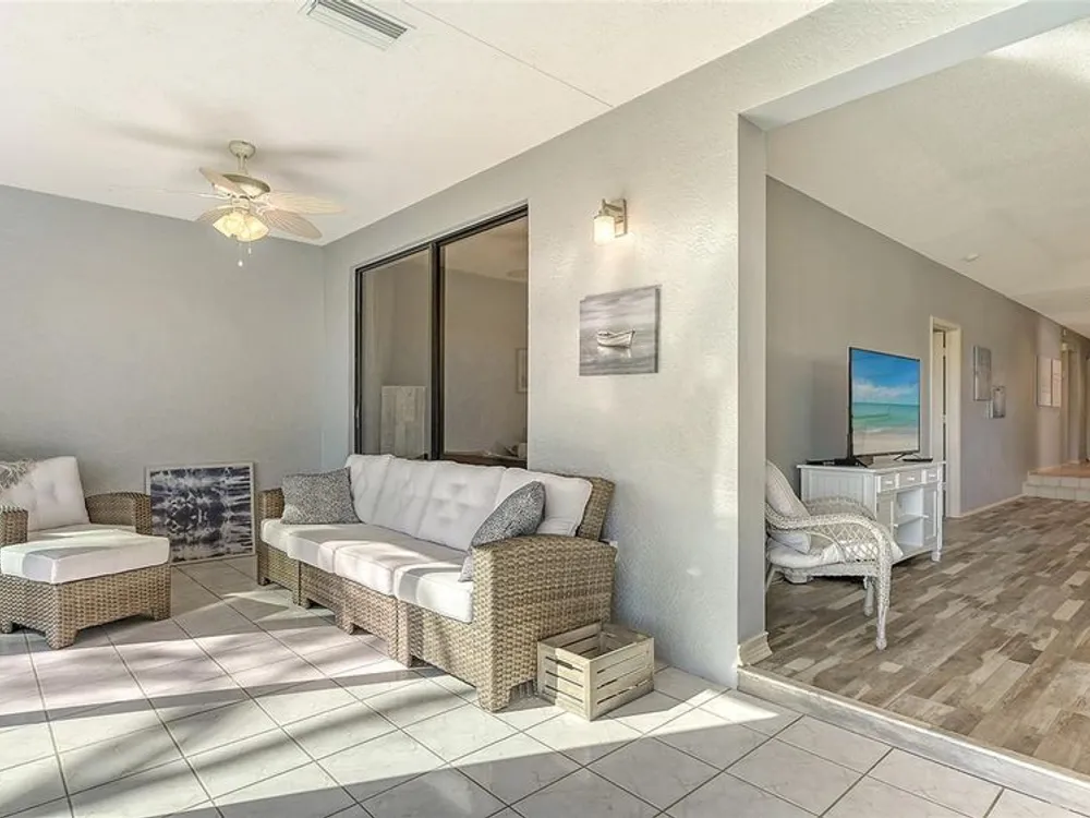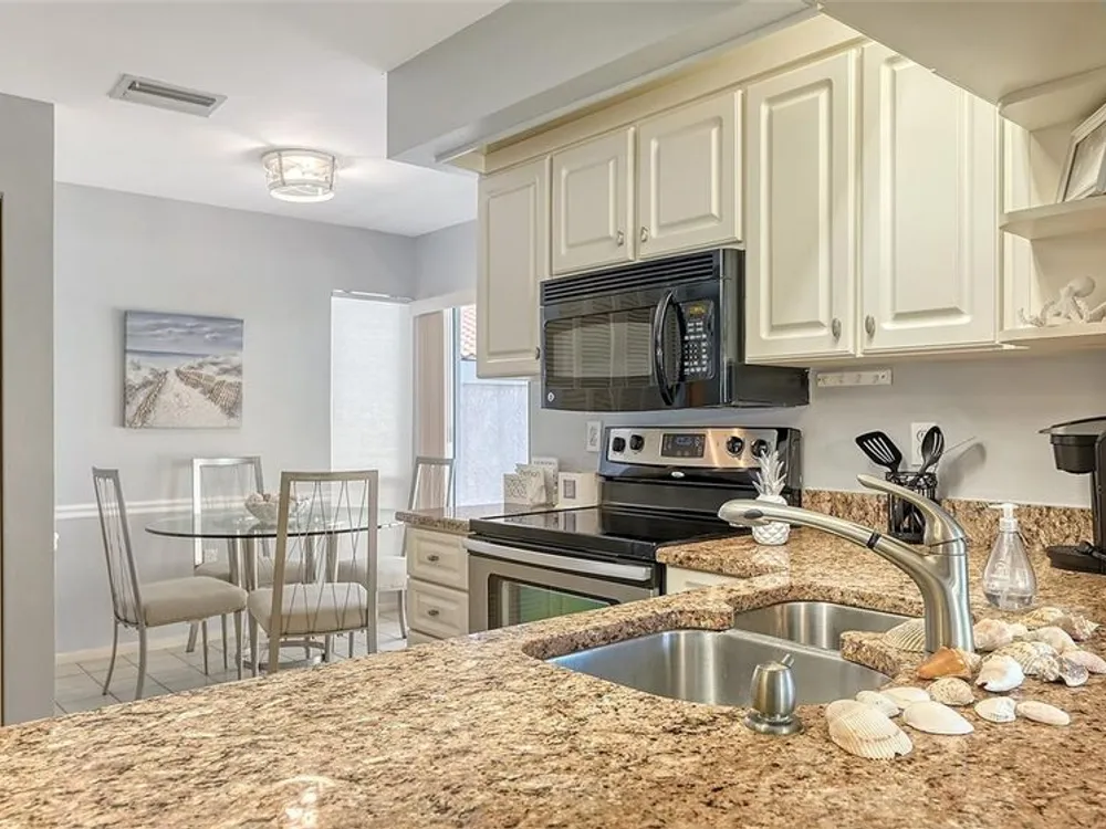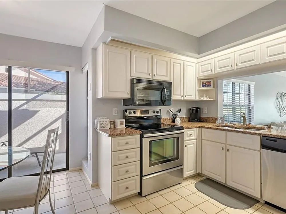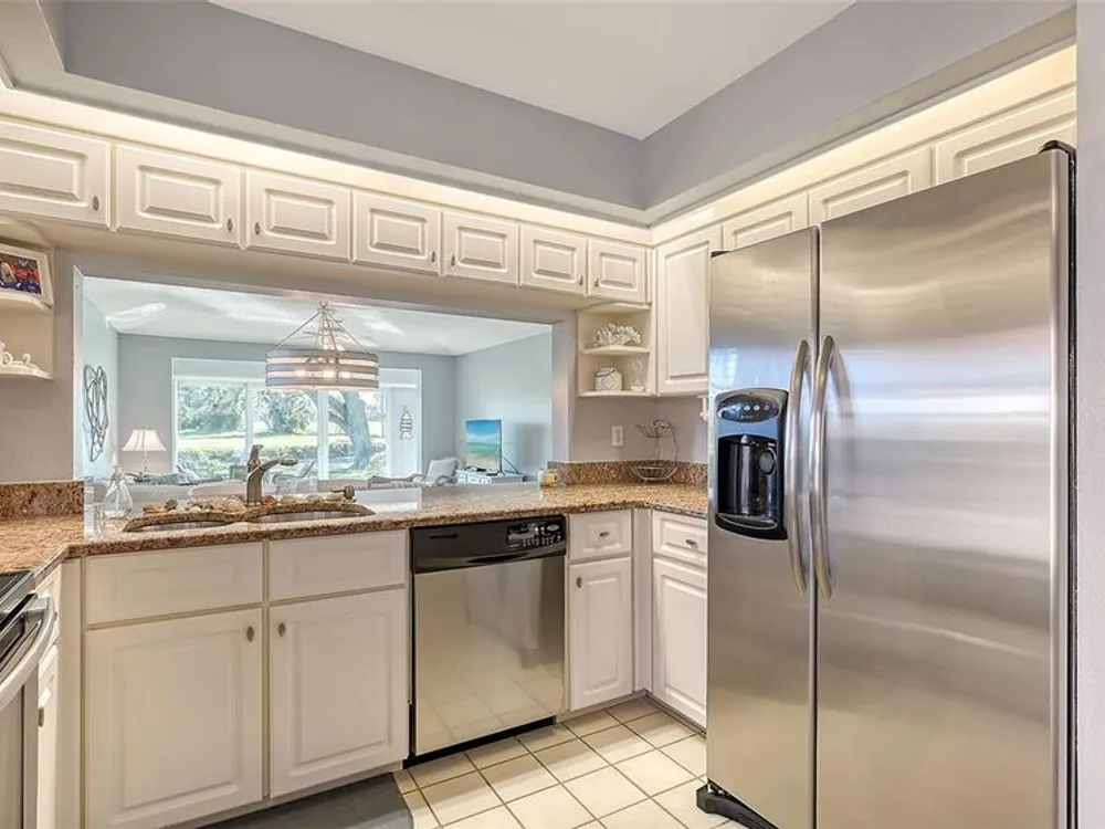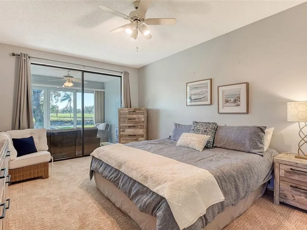 Highly sought-after Golf Pointe Circle Villa in the Palm Aire Country Club. This 3 Bedroom and 2 Bath Villa is being Sold Turnkey Furnished, minus some items (see inventory sheets). Beachy Coastal Decor gives you the feeling of living on the Beach, but even better, you're right on the Palm Aire Golf Course. With over 1,800 sq ft of living space this split floor plan has a Living Room/Dining Room combination, great for entertaining or just a comfortable and enjoyable relaxed environment. Or you might be spending all your time in the air-conditioned Florida Room, where Hurricane Impact Resistant Sliding Glass Doors were added earlier this year giving you sweeping landscapes of the club's practice range, golf course and water views. Starting with your first cup of coffee in the morning to your last evening cocktail enjoying the stunning sunsets. Kitchen has a nice eat-in area with sliding glass doors out to your private screened -in porch, perfect for your BBQ grilling. Primary Bedroom has sliding glass doors out to the Florida Room. The Primary Bath has a large walk-in closet with 2 entrances. Dual sinks, garden tub and separate shower stall. Second and Third Bedrooms are located towards the front of the home and share the second Bathroom, which is next to the closet laundry. All three Bedrooms have newer carpeting. The 2-car garage has plenty of room for your car and your golf cart with storage above if needed. Golf Pointe Community has a clubhouse and 2 heated pools for your enjoyment. Palm Aire Country Club has 2 Championship Golf Courses, Clubhouse, Fitness Center, Olympic Sized Heated Swimming Pool,12 Tennis and 8 Pickleball Courts. Golf, Sport and Fitness and Social/Dining memberships are offered but membership is not mandatory. Convenient location close to the UTC Mall, Benderson Rowing Venue, Sarasota Airport and the local beaches.