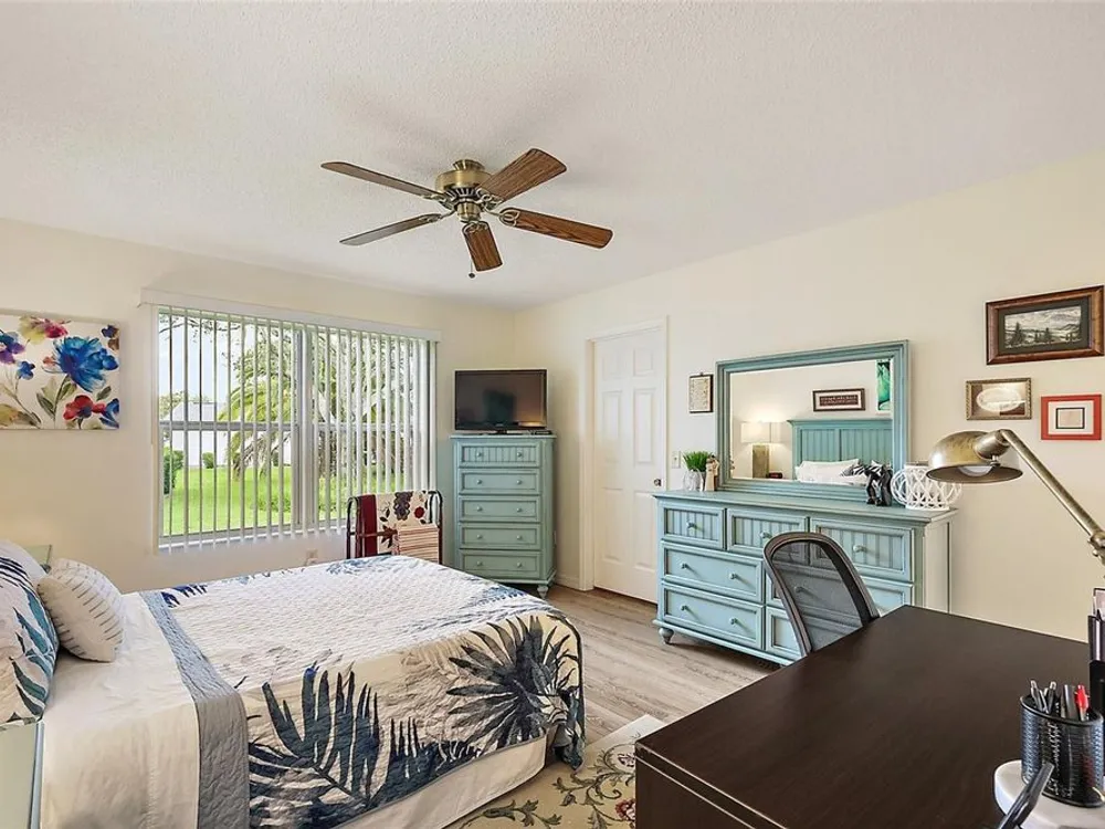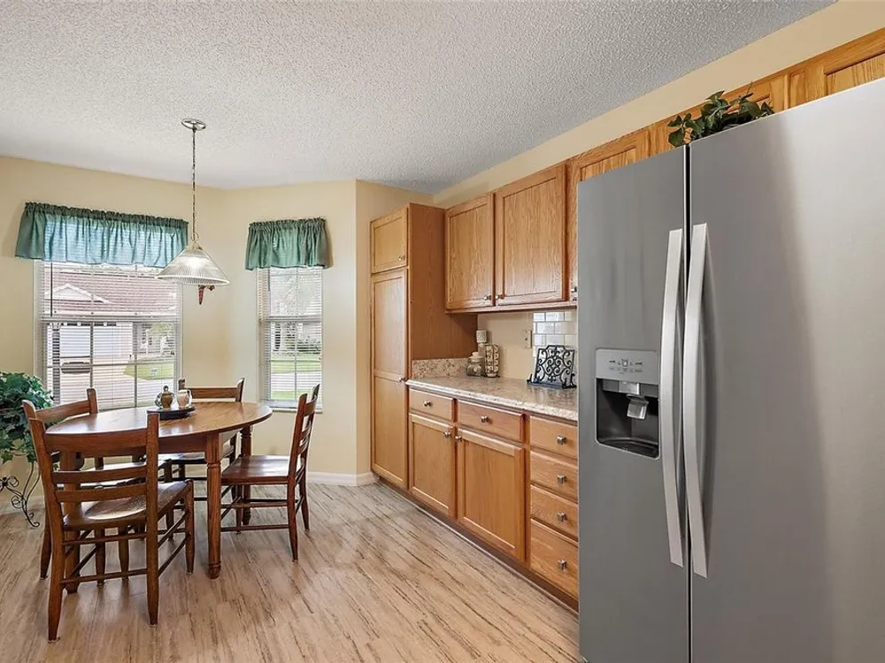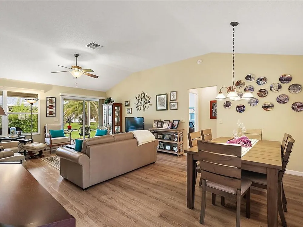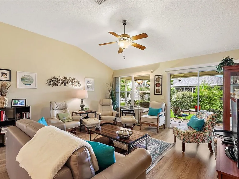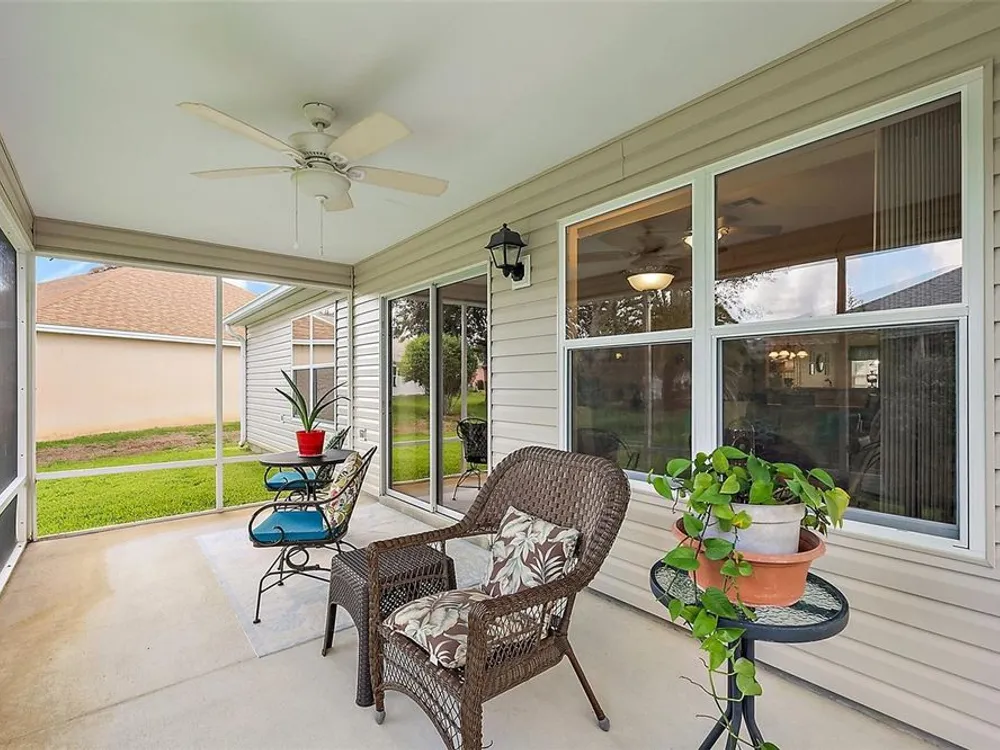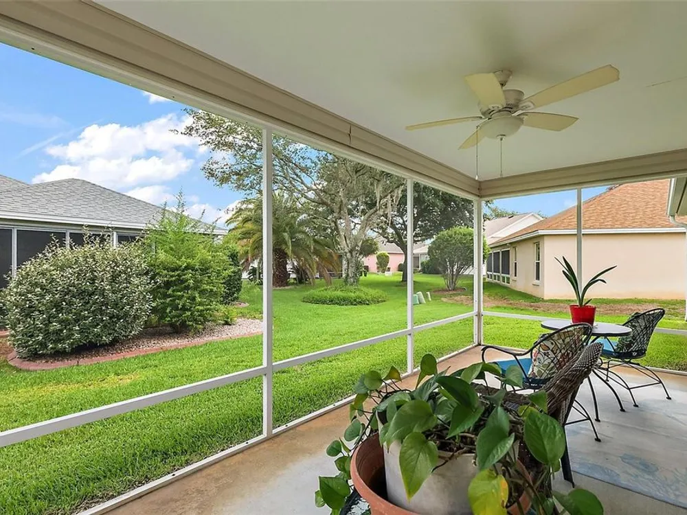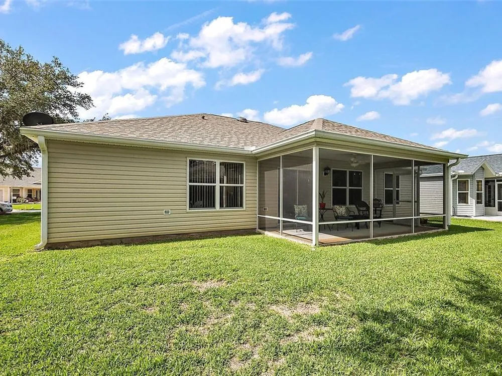 NO BOND and MOVE-IN-READY!! This custom-built 3 Bed, 2 Bath Willow (Wisteria/Sedona III) Designer Model Home is nestled in the Village of Chatham. With plenty of curb appeal and charm, this home offers a split/open floor plan with over 1,490 sq ft of climate-controlled living space and a beautiful welcoming paver driveway/walkway. Updates include a 2024 ROOF, 2024 WATER HEATER and 2016/2017 HVAC, 2025 NEW IRRIGATION VALVES and 2025 NEW QUANTUM FIBER OPTIC NETWORK installed.The kitchen boasts ample room for storage, solid oak cabinetry (all with pull-out sliders), 2022 appliances, an open pass-thru into the dining room, subway tile backsplash and a cozy eat-in nook with a front half-bay window. There is NO CARPET in this home as all FLOORING REPLACED in 2019 to LUXURY VINYL / TILE. The spacious Master bedroom includes a ceiling fan, a generous CUSTOM U-SHAPED WALK-IN CLOSET, and an ensuite bathroom with integrated sink countertops, a double vanity, a step-in shower with glass doors, and a linen closet. The Laundry room is located right off the Master Bath and includes its own laundry tub, a 2021 WASHER and DRYER and is also accessible from the garage. On the guest side, two spacious bedrooms embrace the ample natural lighting, closets and ceiling fans, complemented by a hall linen closet and a guest bath with toilet, vanity, and a tub/shower. From the open living area, you can step outside into the private, EAST-facing screened-enclosed lanai with a beautiful park-like view of the neighboring landscaping. The 2-car garage includes custom storage cabinets, a separate door to access the Laundry room and additional storage above in the attic. This home is perfectly positioned south of the new First Responder’s Recreation Center (with its large resort pool, pickleball, huge game room, basketball, soccer, lawn bowling, sand volleyball, and the challenging eighteen hole putting course) and just west of the Nancy Lopez Legacy Country Club (with fine dining, a pro-shop, driving range, training facility and the 27- hole golf course and the Legacy Pool Bar and Grill). This ideal location is less than a minute golf cart ride to Chatham Recreation Center, and a short distance from Publix, many restaurants in the Mulberry Plaza, several Recreation Centers/pools, many executive golf courses, the Savannah Center, Spanish Springs Town Square and several healthcare facilities including The Villages/UF Health and the VA Clinic. The Big Box Stores like Walmart, Lowes, and BJ’s are also located just a few miles away. Notes: Some of the Furniture is Negotiable and the A/C unit is large enough to accommodate heating/cooling the lanai (should the new owner wish to fully enclose it) adding to the overall square footage/living space of the home.
