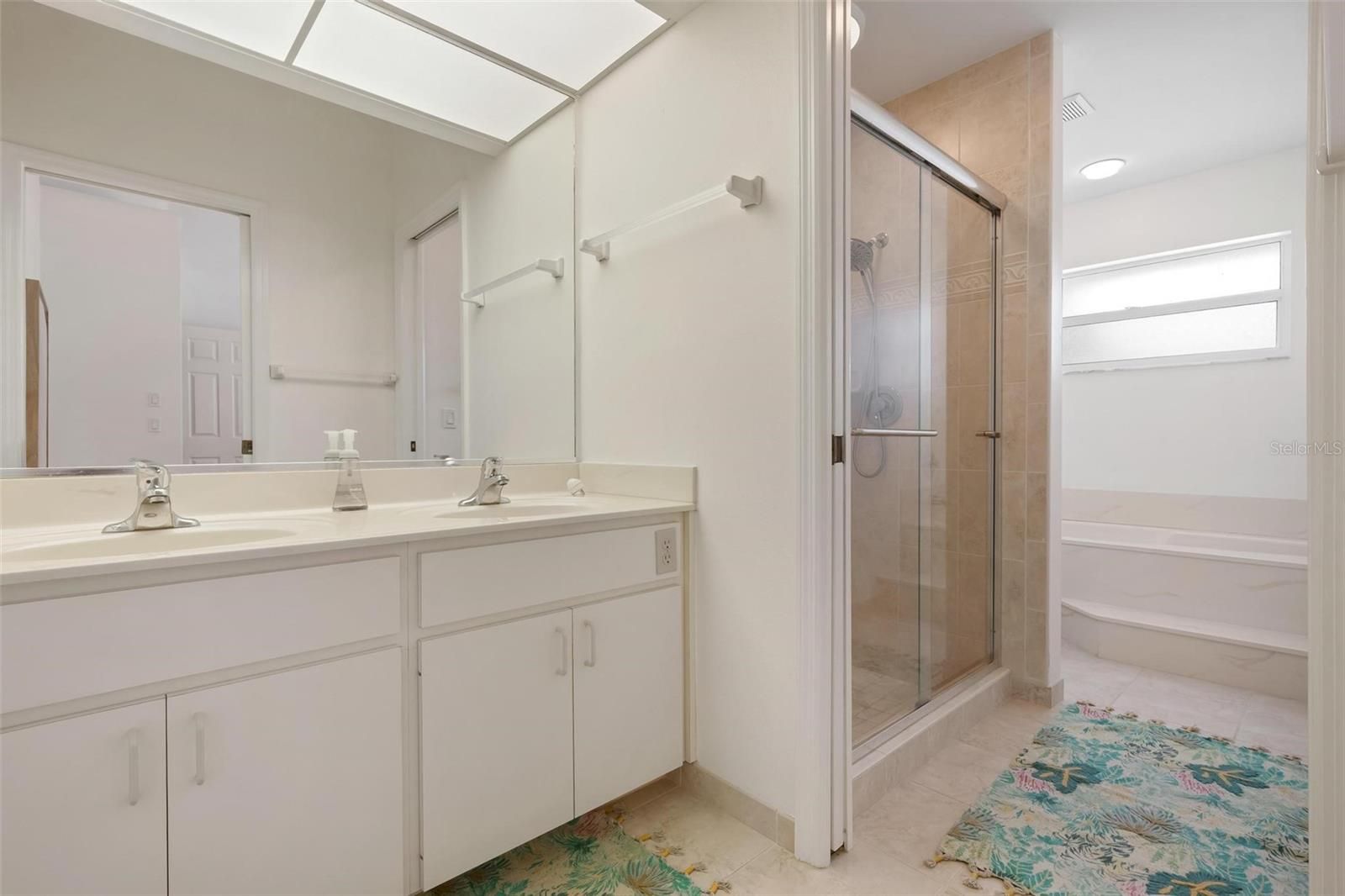 This meticulous, move-in ready freestanding two-bedroom, two-bath villa offers refined living in a maintained setting. The home features elegant laminate wood flooring throughout. The kitchen has bright white cabinetry and closet with full washer and dryer, new water heater. The enclosed rear lanai has air conditioning and tiled floor, creating a seamless indoor-outdoor retreat ideal for year-round enjoyment. A private side patio with pavers overlooks a lush, landscaped garden, providing a tranquil space for morning coffee. The residence is complemented by a spacious two-car garage with built-in shelving and a utility tub, combining convenience with thoughtful functionality. Located on a cul-de-sac street, this exclusive community boasts its own private clubhouse and resort-style pool, enhancing the luxury lifestyle. This home is in the Plantation Golf and Country Club. Memberships are available but not required.