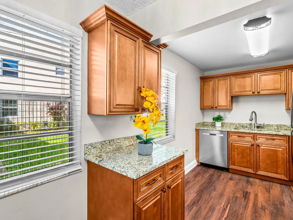 Bright & Spacious 2 Bd/ 2 Bath Upgraded 1st Floor Move-in Ready Condo, Located Right Across Street From The Clubhouse! Beautiful Maple Kitchen cabinets w/Granite Counters & New stainless steel appliances & add'l Servers cabinet! Brand New Crystal Chandeliers in Dining & Living Rms; New Ceiling Fan/lights in both Bedrooms, Both Bathrooms are Upgraded, Wood Laminate Flooring; Covered patio w/Your Private Washer & Dryer & front garden views! Parking spot #44 right in front of home. Enjoy KINGS POINT 3 Multi-Million dollar Clubhouses, 8 POOLS including 3 Indoor Pools, PICKELBALL, Tennis, Cafes, Golf Courses, Theater, Cards, & So Many Clubs! Close to Restaurants, Shopping, Places of Worship, Beaches, Airports & Courtesy Buses too! AC 2020, Private W&D