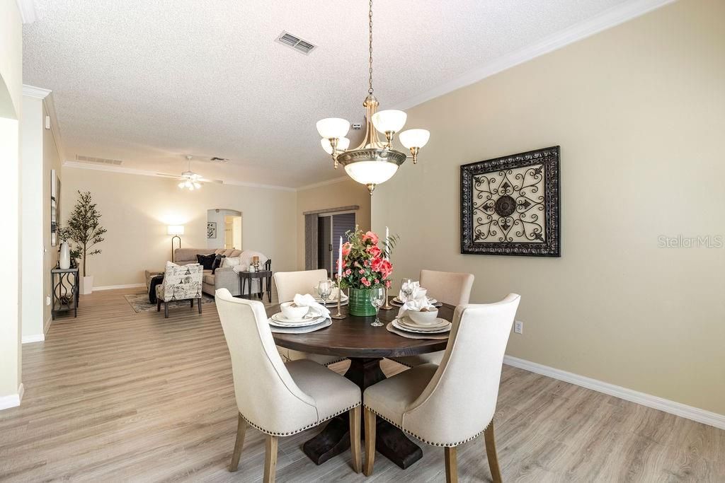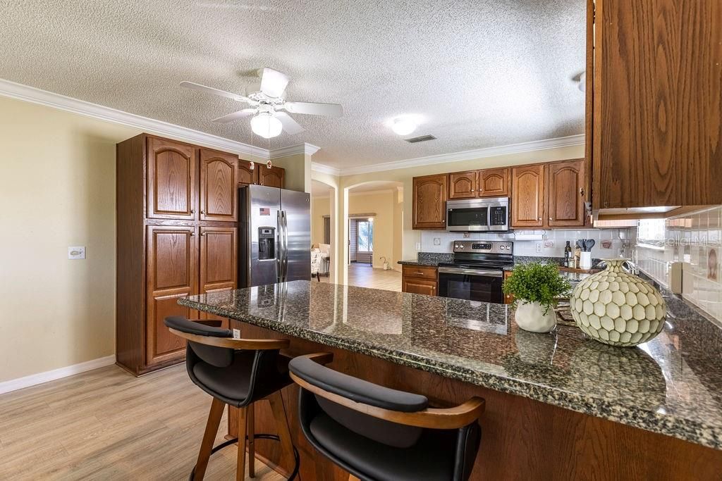 NO BOND! BACK ON THE MARKET & BETTER THAN EVER FOR SOME LUCKY BUYER! After a short break, this property returns and is ready to impress. Welcome Home to this beautifully maintained 3-bedroom, 2-bath Vera Cruz Designer Home, offering comfort, style, and an unbeatable location in the heart of The Villages®. From the moment you arrive, the painted driveway, expanded entryway, and charming curb appeal set the tone for what’s inside. Step through the front door and into a light-filled open floor plan highlighted by new luxury vinyl plank flooring, upgraded lighting, and modern ceiling fans that bring a fresh, updated feel throughout the home. The spacious kitchen is designed with the home chef in mind—featuring generous counter space, plenty of cabinetry, and a sunny breakfast nook perfect for morning coffee or casual meals. The adjacent living and dining areas provide an inviting space for both relaxing and entertaining. The primary suite offers a private retreat with dual walk-in closets and an en-suite bath featuring double sinks, an oversized vanity, a step-in shower, and a linen closet. Guests will enjoy their own separate wing, complete with two comfortable bedrooms and an updated guest bath with a tiled step-in shower. Enjoy the best of Florida living in the enclosed lanai, enhanced with large sliding windows—ideal for an office, craft space, or cozy TV room. Step outside to the back patio for fresh air and outdoor enjoyment. This home has been lovingly cared for with thoughtful updates including luxury vinyl plank flooring in 2020, a new hot water heater in 2019, a roof replacement in 2024, soffit and fascia replacement in 2024, and HVAC service completed in October 2025. Centrally located just minutes from Spanish Springs Town Square and Lake Sumter Landing Market Square, you’ll have easy access to nightly entertainment, shopping, dining, and recreation—plus championship and executive golf courses are right nearby. This exceptional home is move-in ready, with NO BOND and all the right updates already done. Don’t miss your opportunity to start living the lifestyle you’ve been dreaming of in The Villages!