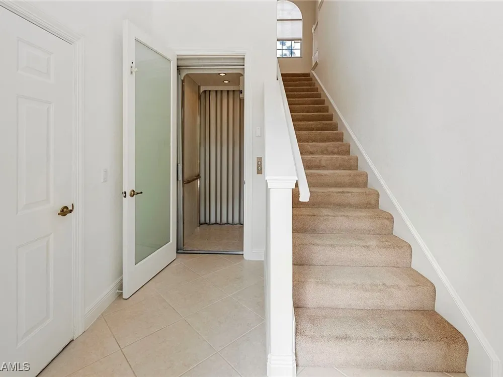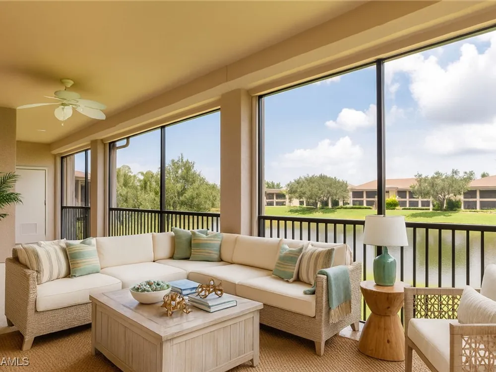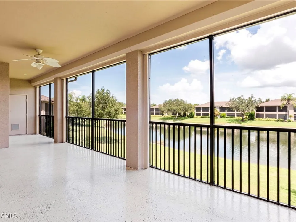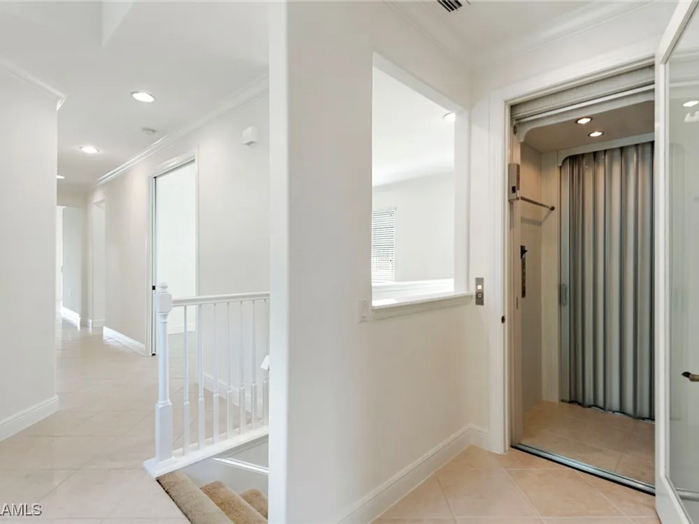 Step into this light and bright second-floor residence in Regency Reserve and you'll immediately feel at home. This spacious floor plan features an oversized two-car garage for all your storage or workshop needs, private elevator, and three en-suite bedrooms plus a versatile den or game room. Recent updates include fresh interior paint, new Frigidaire stainless steel kitchen appliances, new garage epoxy floor, and recently serviced systems, including the elevator and HVAC. The expansive 40-by-10-foot screened lanai, complete with electric hurricane shutters and extra storage, offers sweeping lake and fountain views for year-round enjoyment. Regency Reserve at the Vineyards is well-maintained with freshly painted exteriors, durable metal roofs (installed in 2021), hurricane-ready construction, and strong financial health with no special assessments. Residents enjoy a secure, professionally managed community with a private clubhouse, fitness center, and resort-style tropical pool and spa framed by a rock waterfall. As part of the larger Vineyards community, residents have the option to join the award-winning Vineyards Country Club. The club features 36 holes of championship golf, tennis, pickleball, bocce, and a newly renovated 70,000-square-foot clubhouse with a coastal-contemporary design. Dining ranges from casual poolside to elegant patio experiences, while the state-of-the-art health and wellness center offers fitness, spa, sauna, and physical therapy services. Recognized as one of America's healthiest private clubs, the Vineyards supports a balanced and active lifestyle. Ideally located, Regency Reserve is just minutes from Physician's Regional Medical Center, Interstate 75, Publix, fine dining, upscale retail, world-class shopping, and Naples' pristine beaches. This is where comfort, community, and convenience come together.