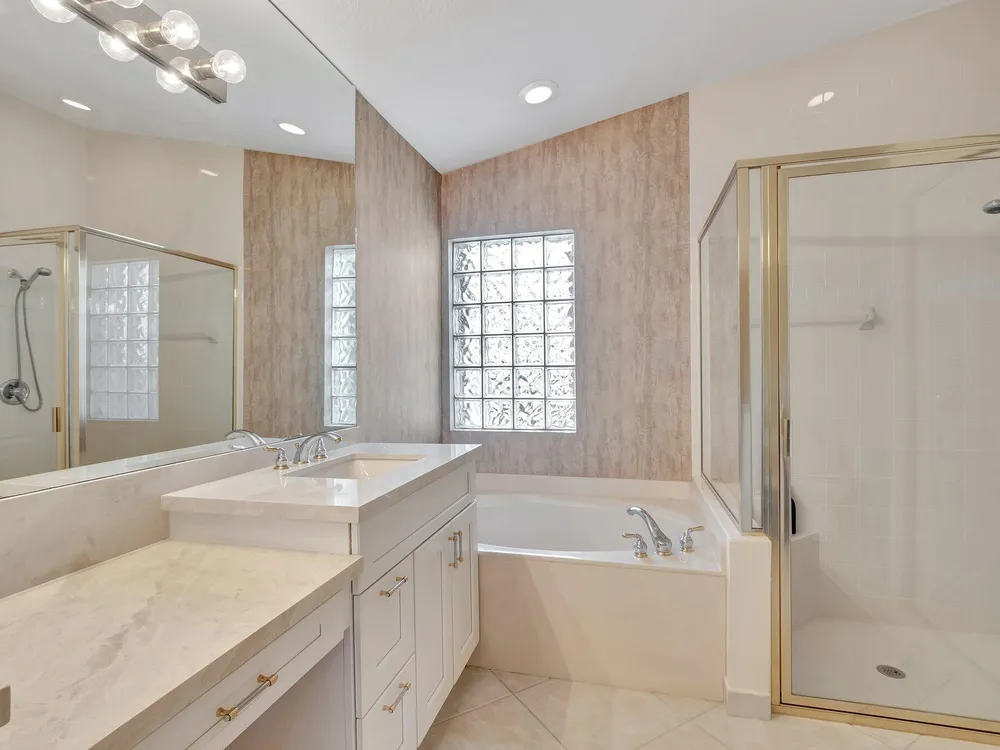 - Cathedral Ceiling(s), Entry Level Living Area, Entrance Foyer, Pantry, Garden Tub/Roman Tub, Split Bedrooms, Walk-In Closet(s), Family Room, Living/Dining Room, Eat-in Kitchen, Primary Downstairs, Separate Shower, Bathtub, Storm Shutters