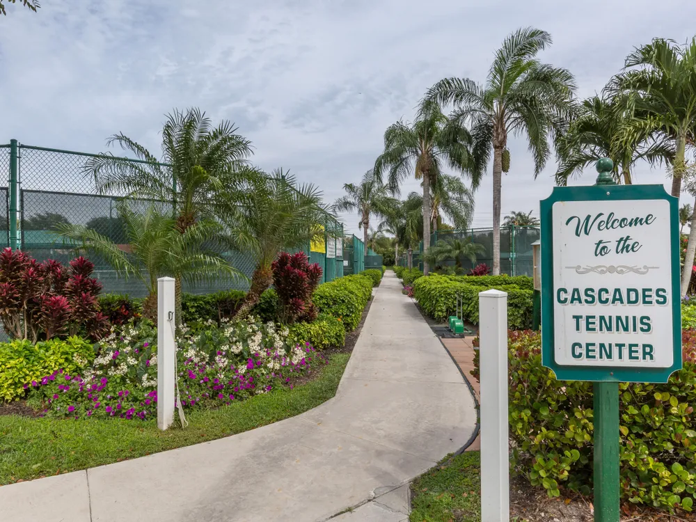 BRAND NEW AC INSTALLED SEPTEMBER 2025 This is a 2 bedroom PLUS Family Room home in The Cascades that has a beautiful water and park view. Back of house faces northeast so you can enjoy the view all day. This floor plan has an open family room instead of a 3rd bedroom, you can be make it into a bedroom.---This home boasts a redone kitchen, new cabinets, granite countertop, new hardware, new sink, and new stainless steel Kitchen Aide appliances. The second bathroom was redone with new tile in shower, frameless glass shower door, new vanity, countertop, sink, mirror, light fixture, and hardware.---Primary bedroom has a large walk-in closet and a bathroom where the vanity has been replaced, giving you lots of storage space. New countertop and hardware as well.
